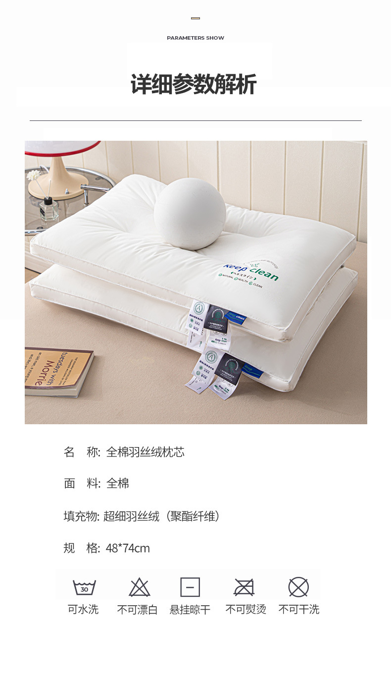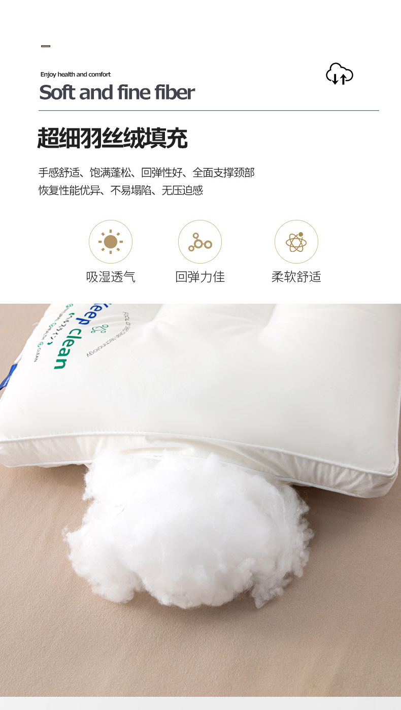 새로운 클래스 면화 깃털 실크면 베개 베개 목 보호는 수면 가정 학생 기숙사 호텔 특별 도매