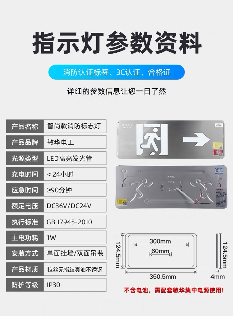 민화 집중 제어 브러시드 스테인리스 패널 지시등 지능형 대피 지시등 화재 비상 표지판
