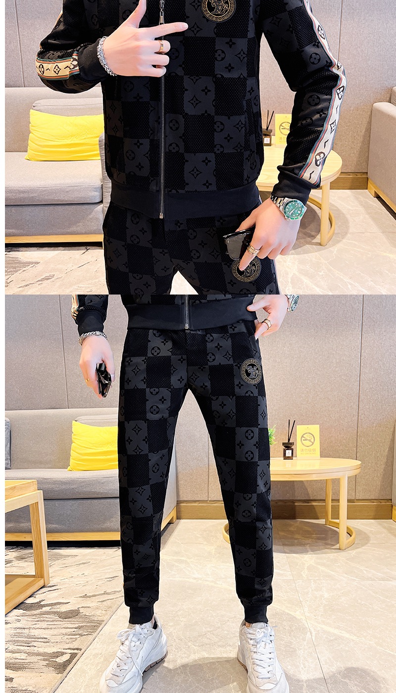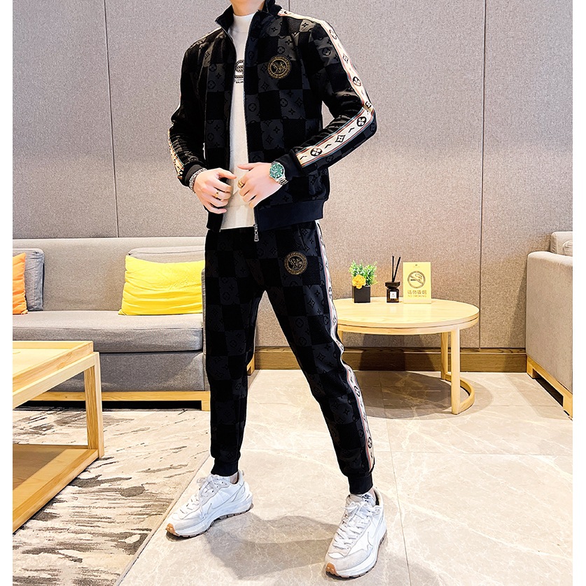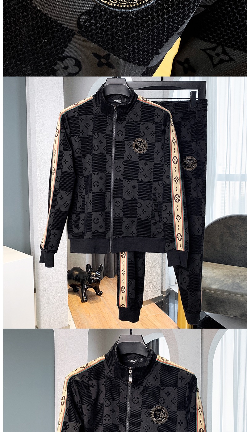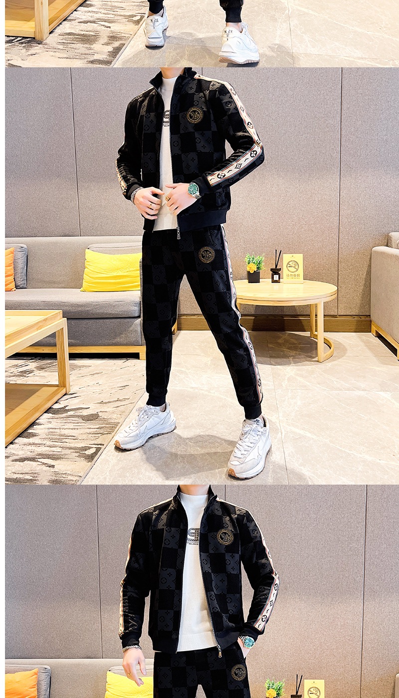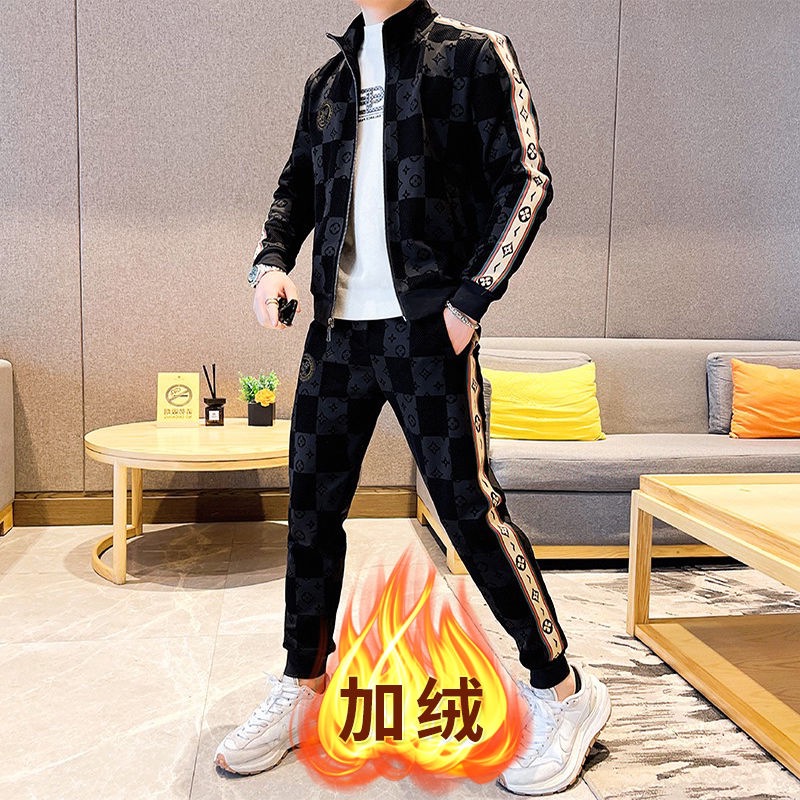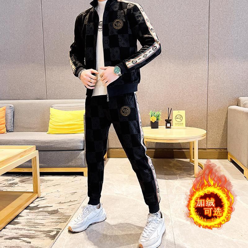 유럽 역 가을과 겨울 새로운 스포츠 레저 남성 자수 패션 트렌드 플러스 벨벳 코트 따뜻한 세트스토어 가기