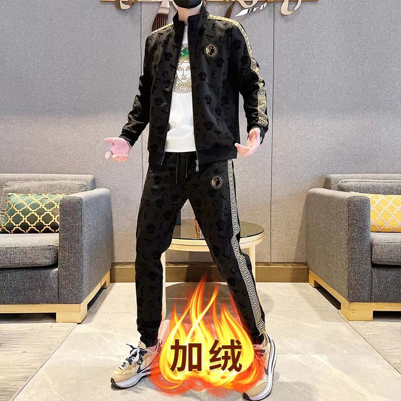 유럽 역 가을과 겨울 새로운 스포츠 레저 남성 자수 패션 트렌드 플러스 벨벳 코트 따뜻한 세트