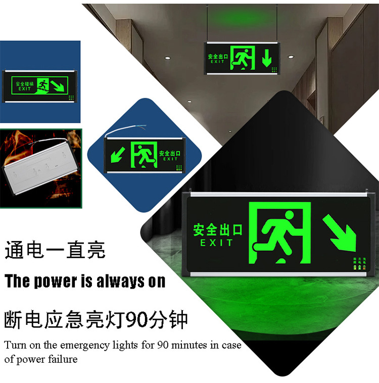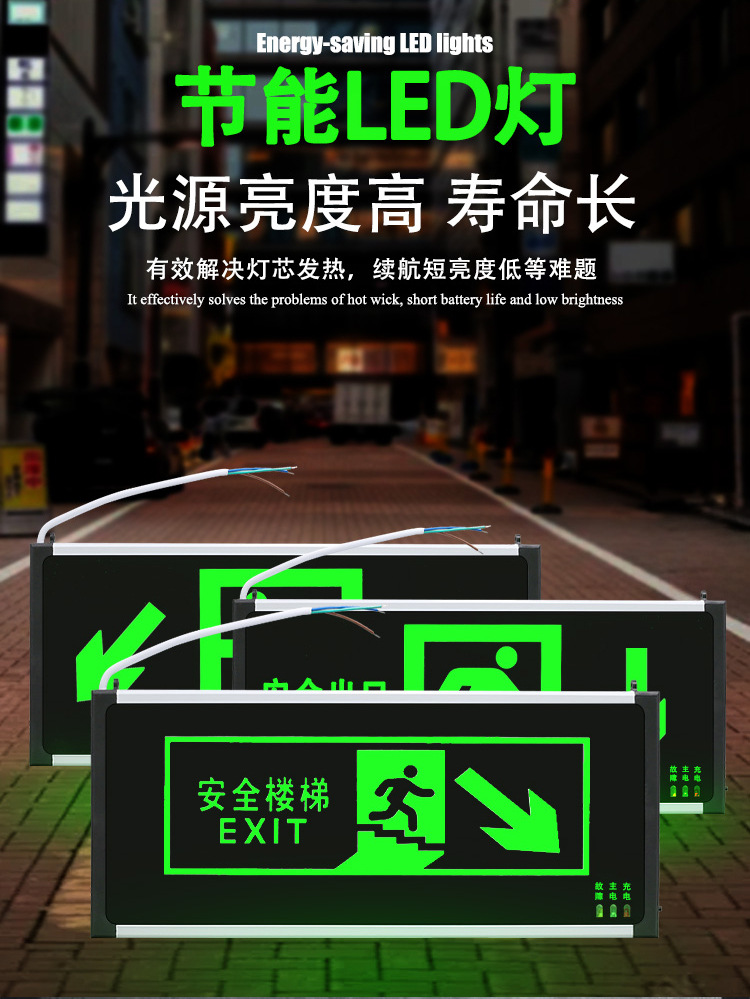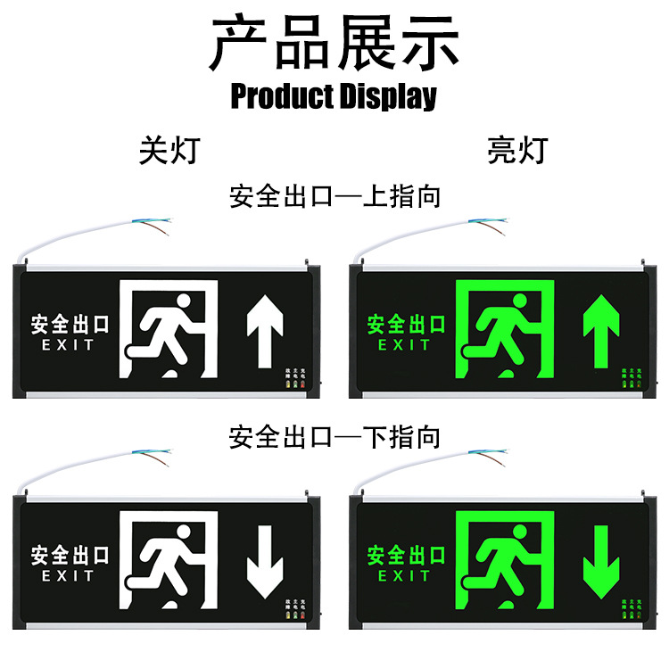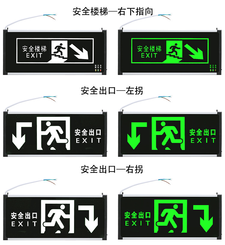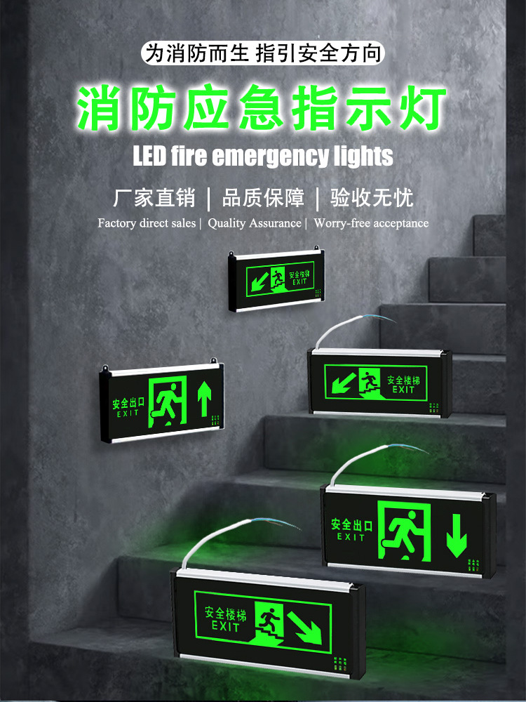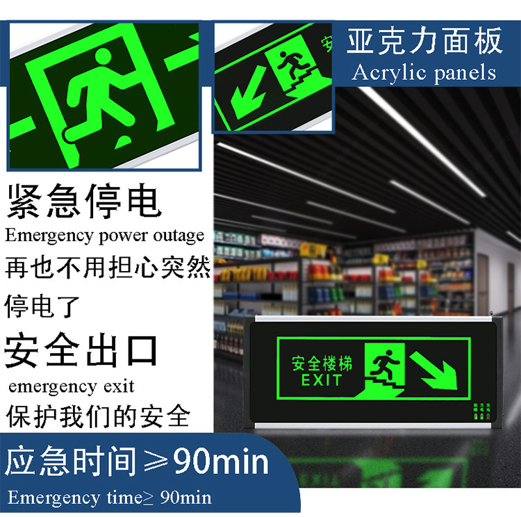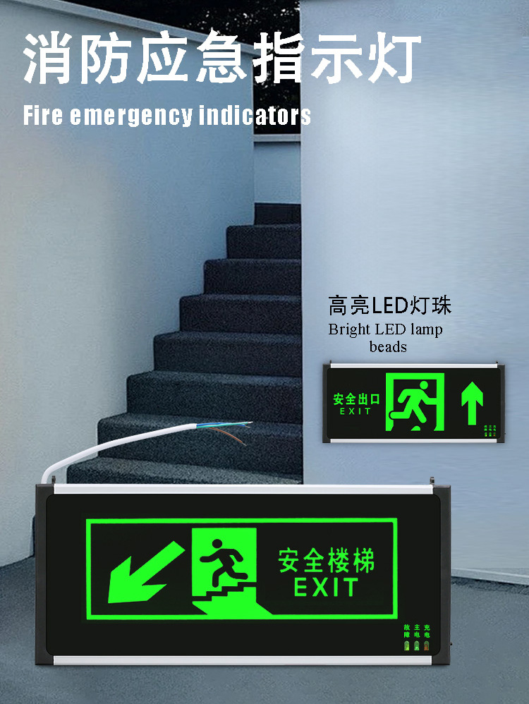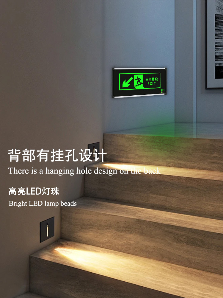 새로운 국가 표준 안전 출구 표시등 위아래 계단 채널 표지판 조명 대피 표시등 화재 비상 조명