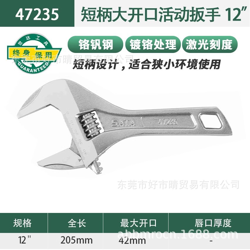 Shida 조정 가능한 렌치 산업 등급 짧은 손잡이 이동식 렌치 도구 12 인치 조절 욕실 렌치스토어 가기