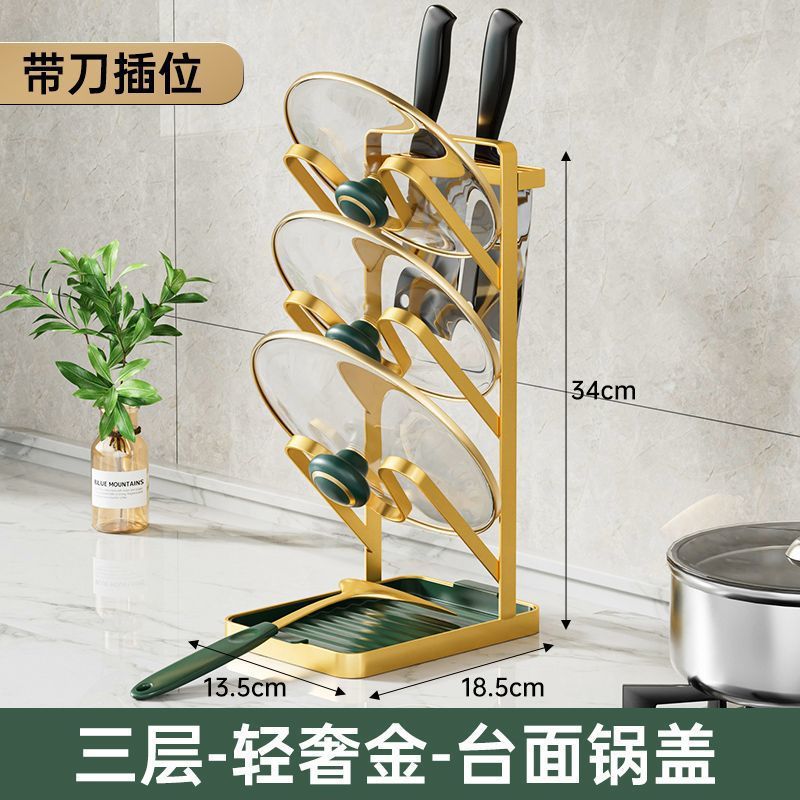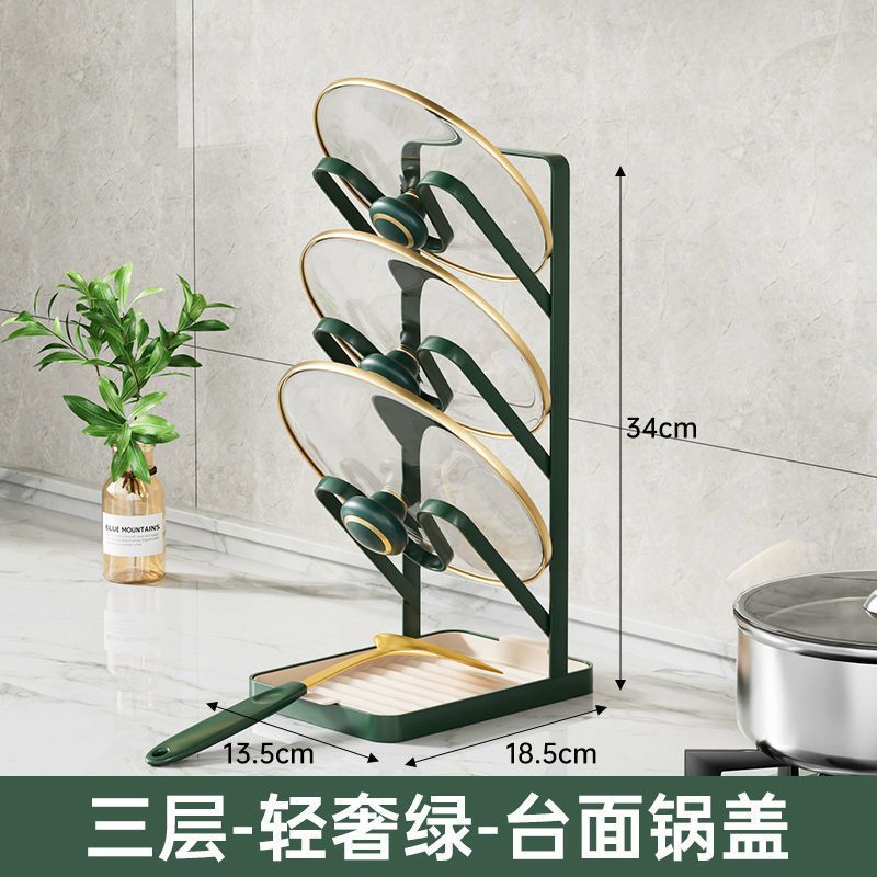 두꺼운 냄비 뚜껑 랙 배수구 저장 랙이있는 다층 냄비 뚜껑 보관 랙 냄비 삽 젓가락 및 숟가락을위한 펀치 매달린 도마 없음