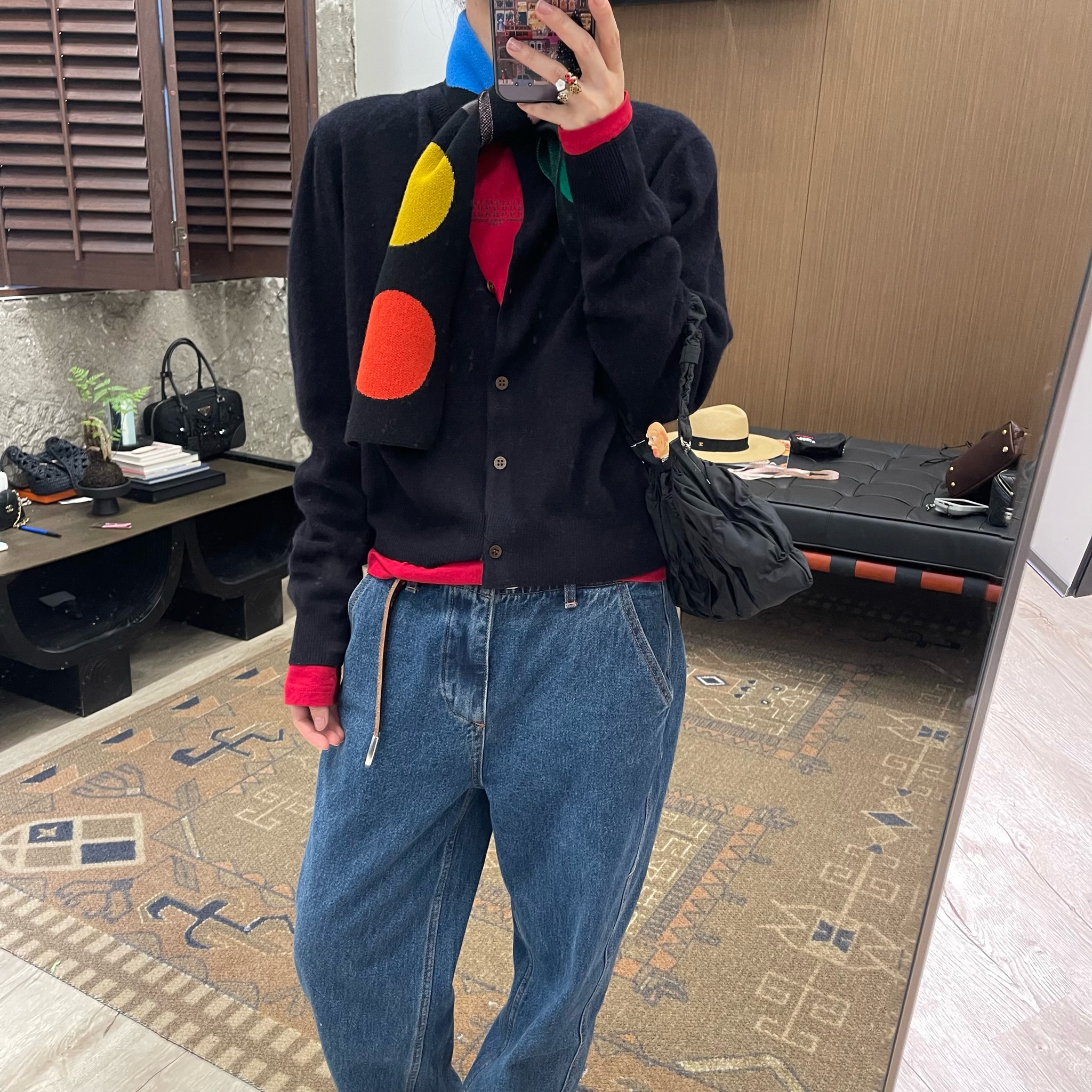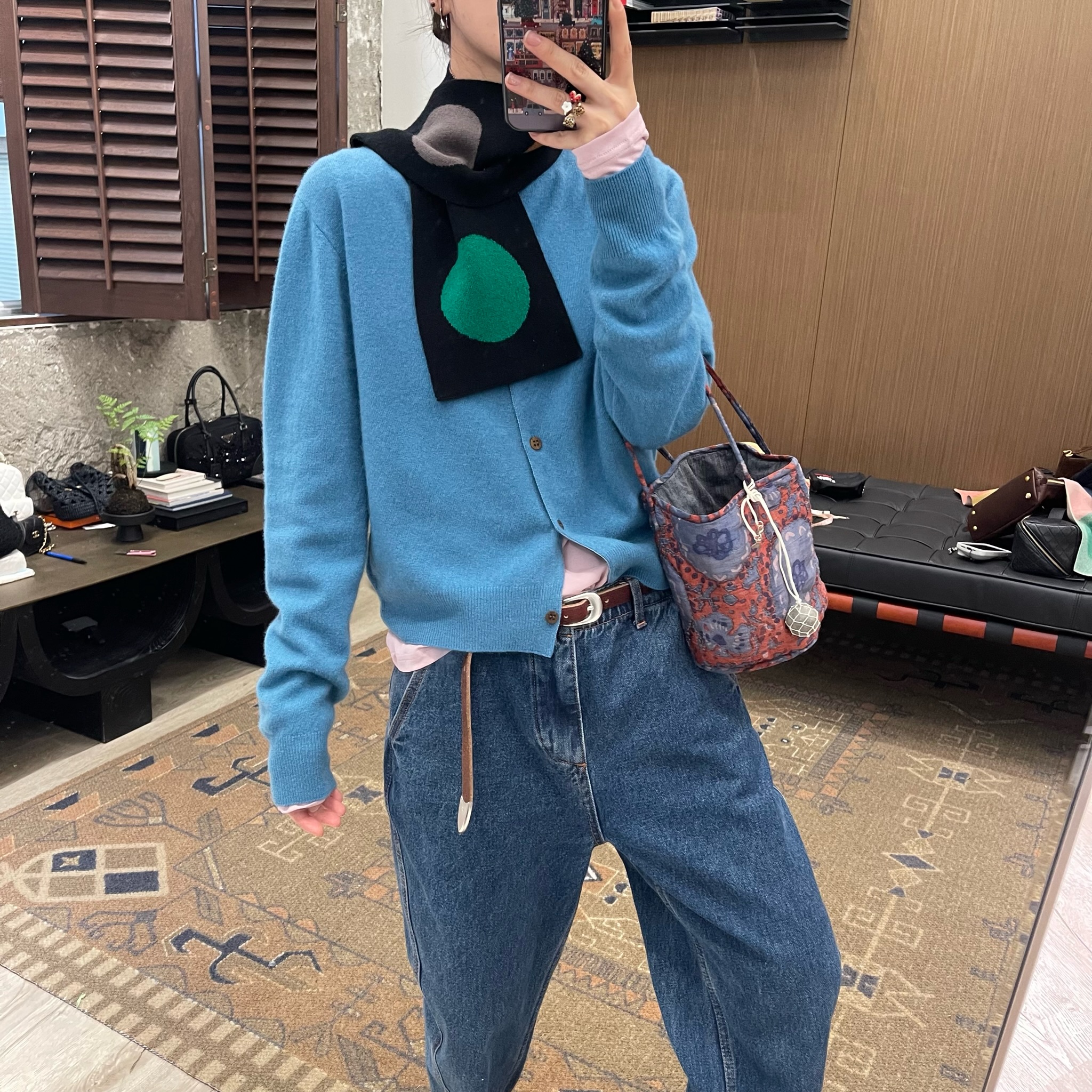 [준준] 컬러웨이브 도트 양모 스카프 여성 비준준 가을 조커 외국식 나이 줄이기 목도리 스카프