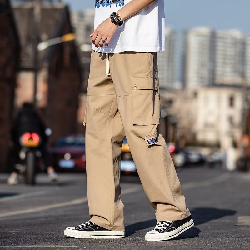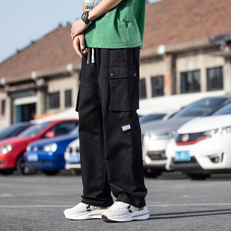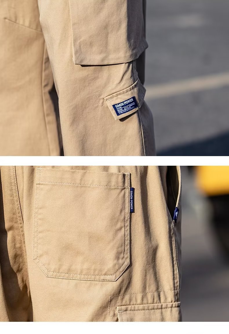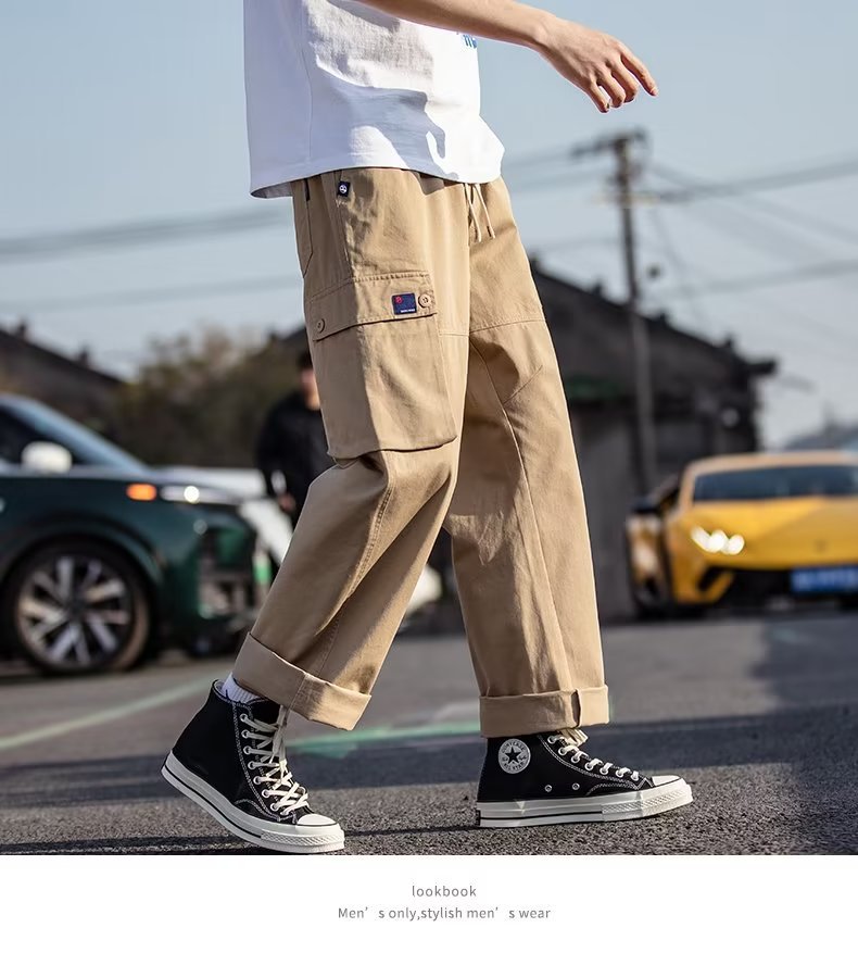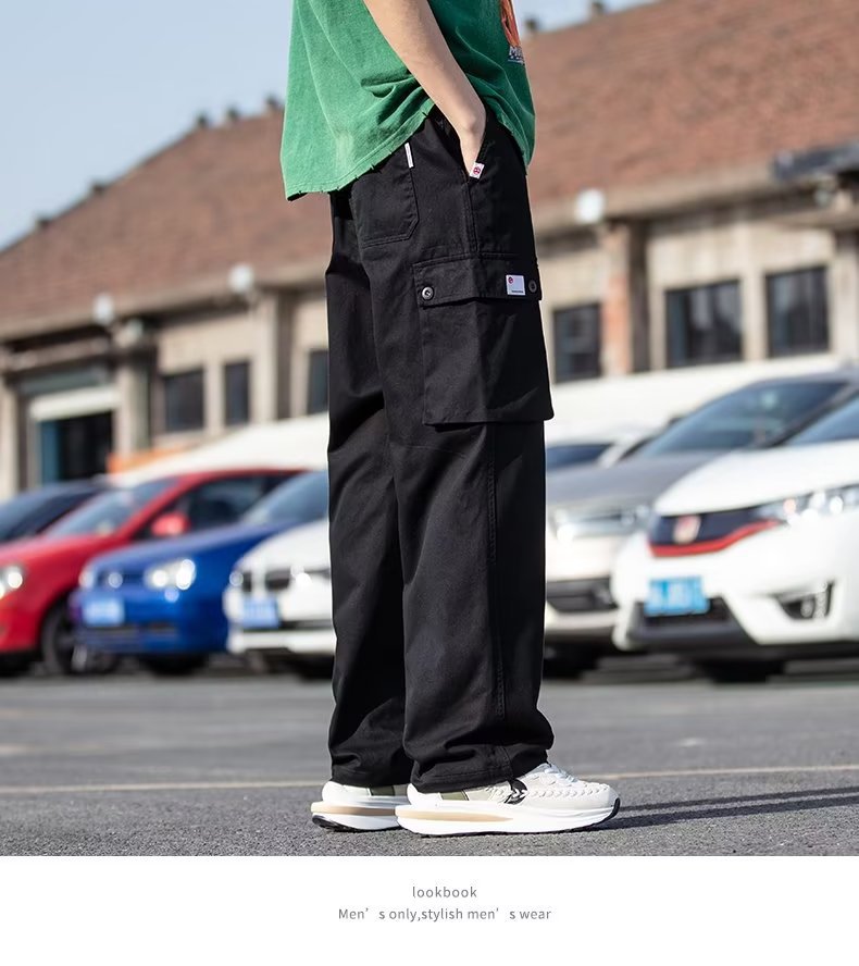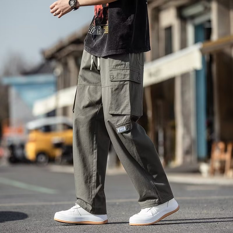 국경을 넘는 일본 카키 남성용 멀티 포켓 기능성 캐주얼 바지 남성용 바지 스트레이트 레그 루즈 와이드 레그 팬츠