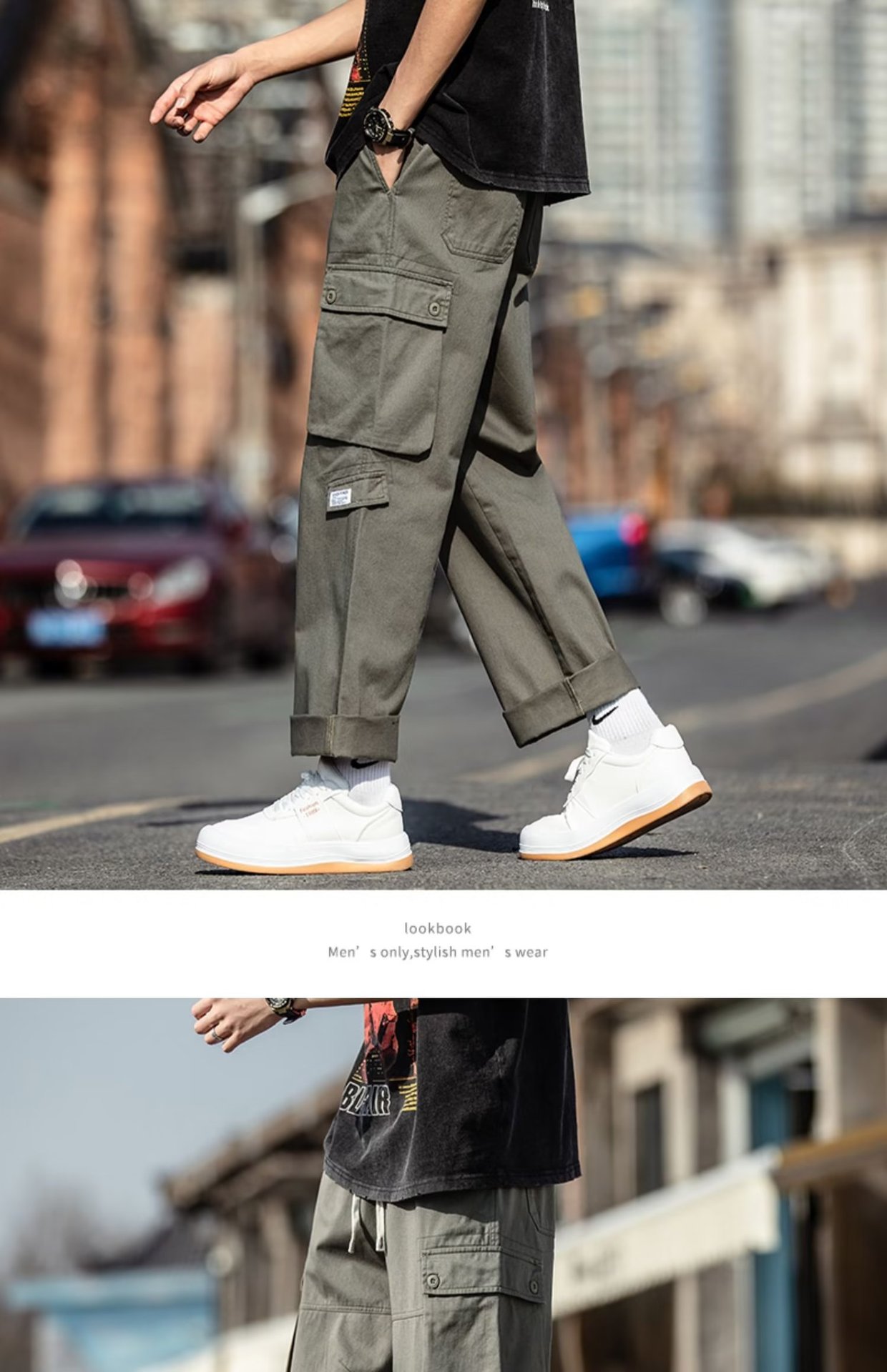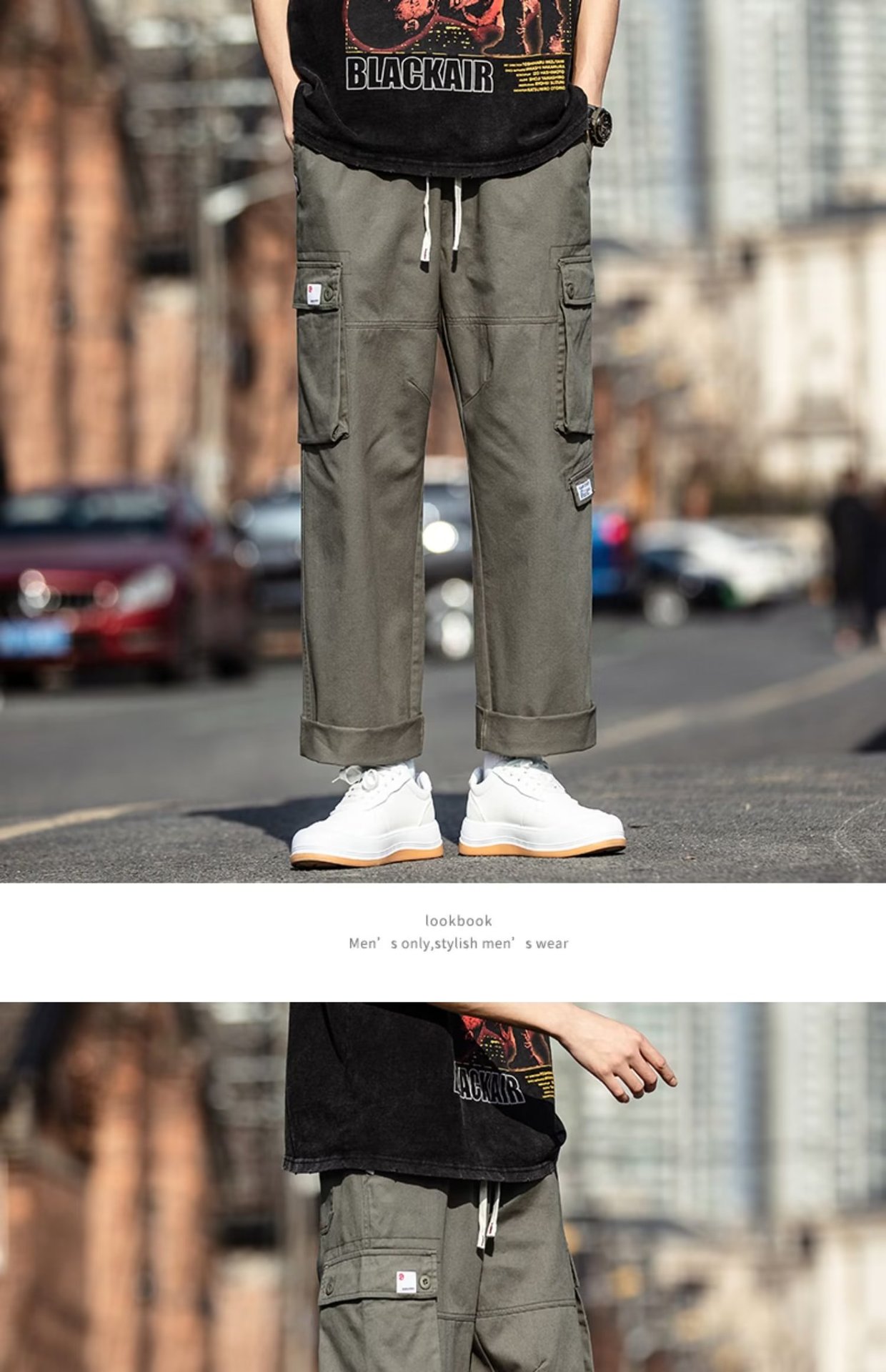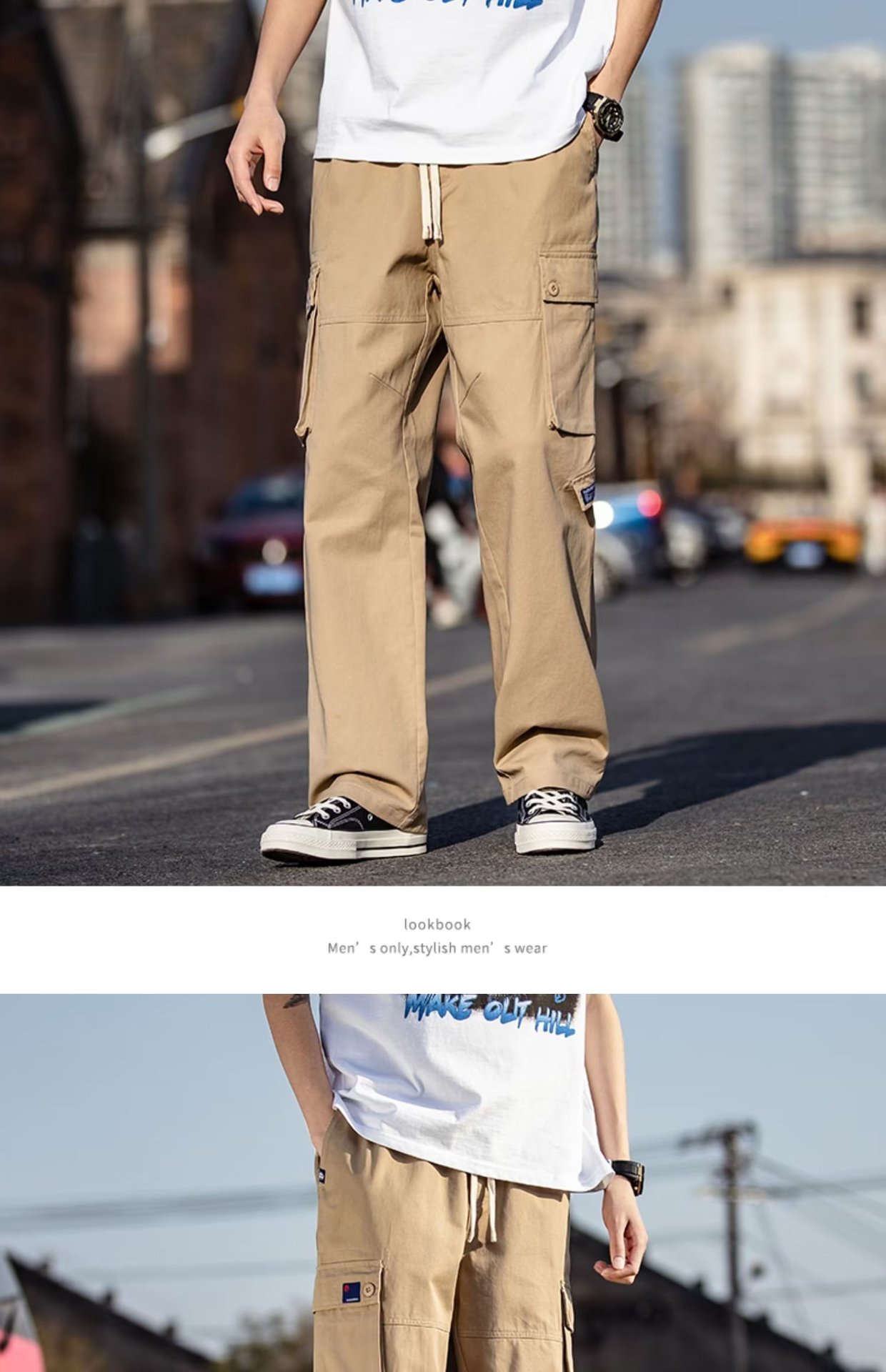 국경을 넘는 일본 카키 남성용 멀티 포켓 기능성 캐주얼 바지 남성용 바지 스트레이트 레그 루즈 와이드 레그 팬츠스토어 가기