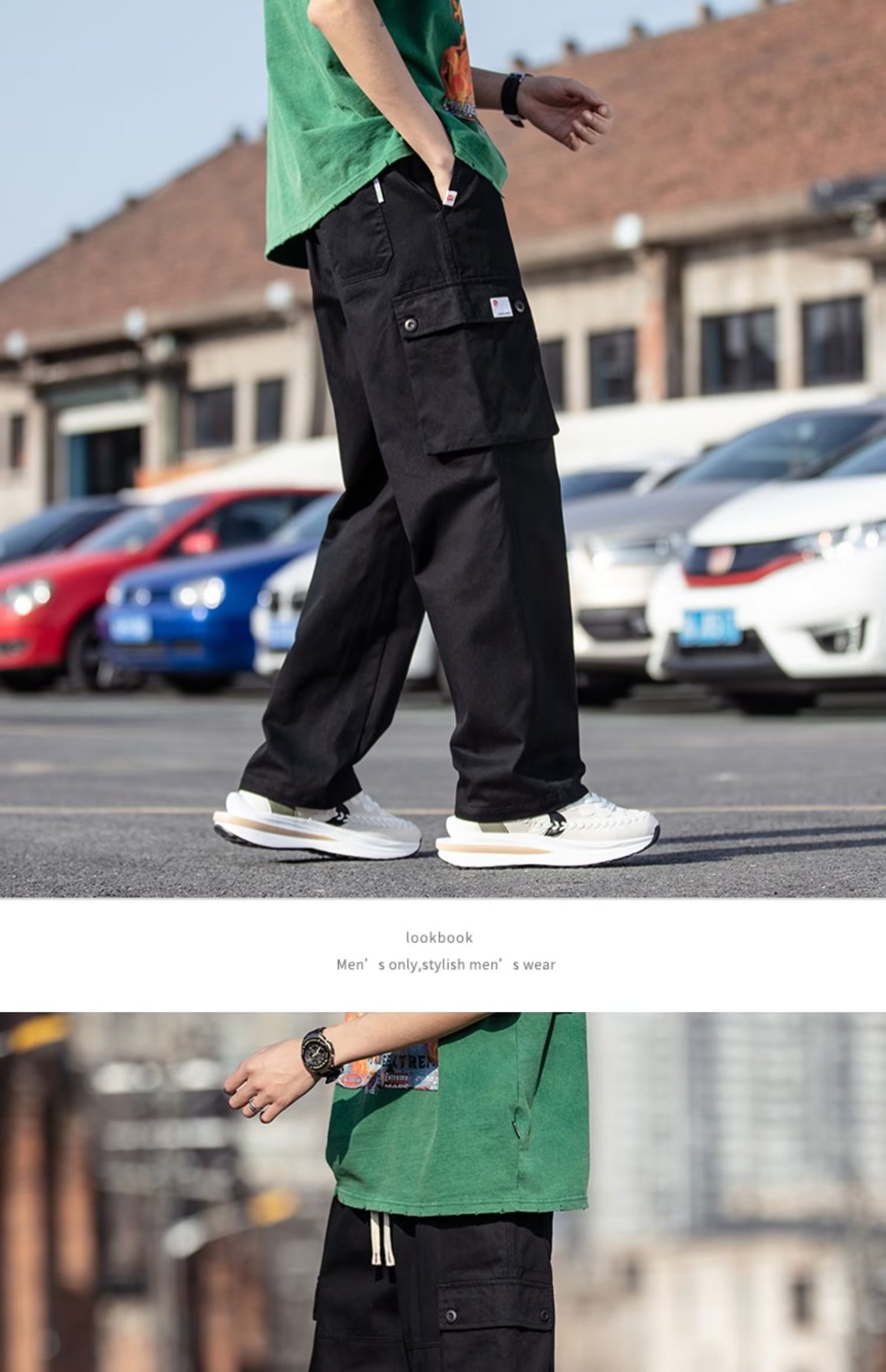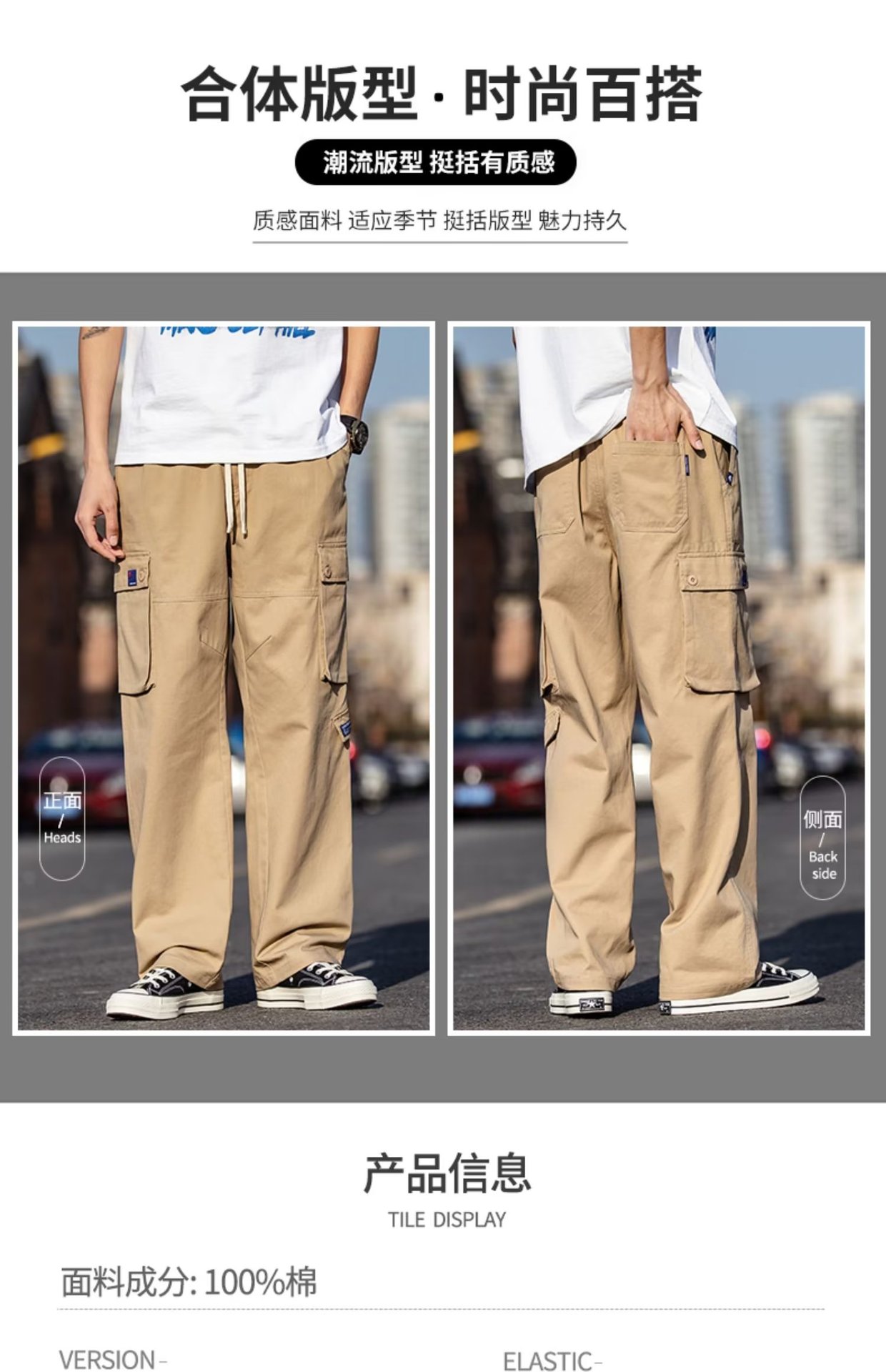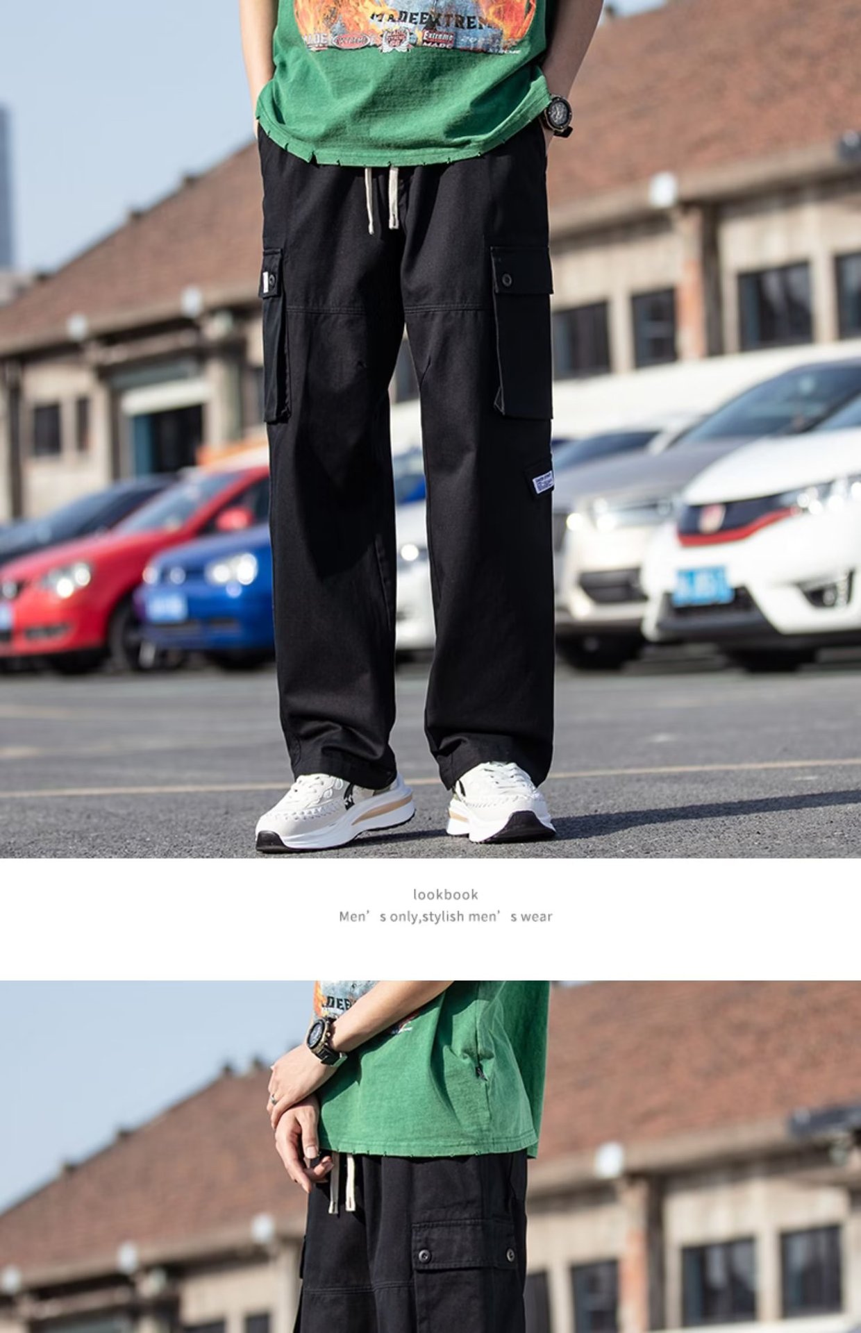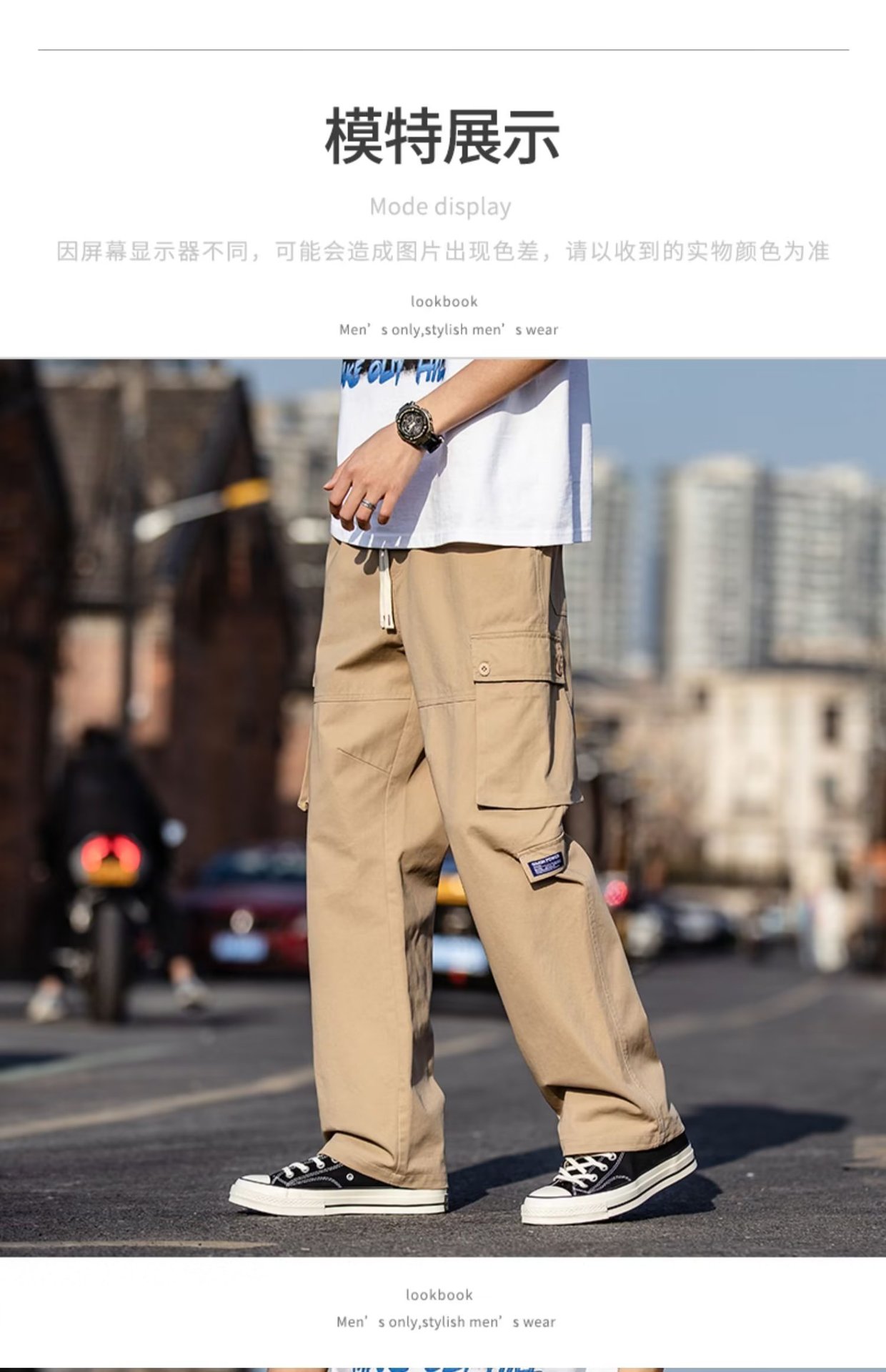 국경을 넘는 일본 카키 남성용 멀티 포켓 기능성 캐주얼 바지 남성용 바지 스트레이트 레그 루즈 와이드 레그 팬츠스토어 가기