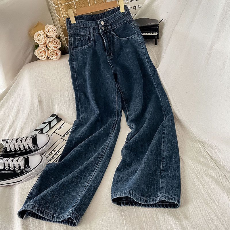 봄 한국식 Ins Retro 느슨한 와이드 레그 청바지 여학생 높은 허리 슬리밍 스트레이트 롱 자오 저우스토어 가기