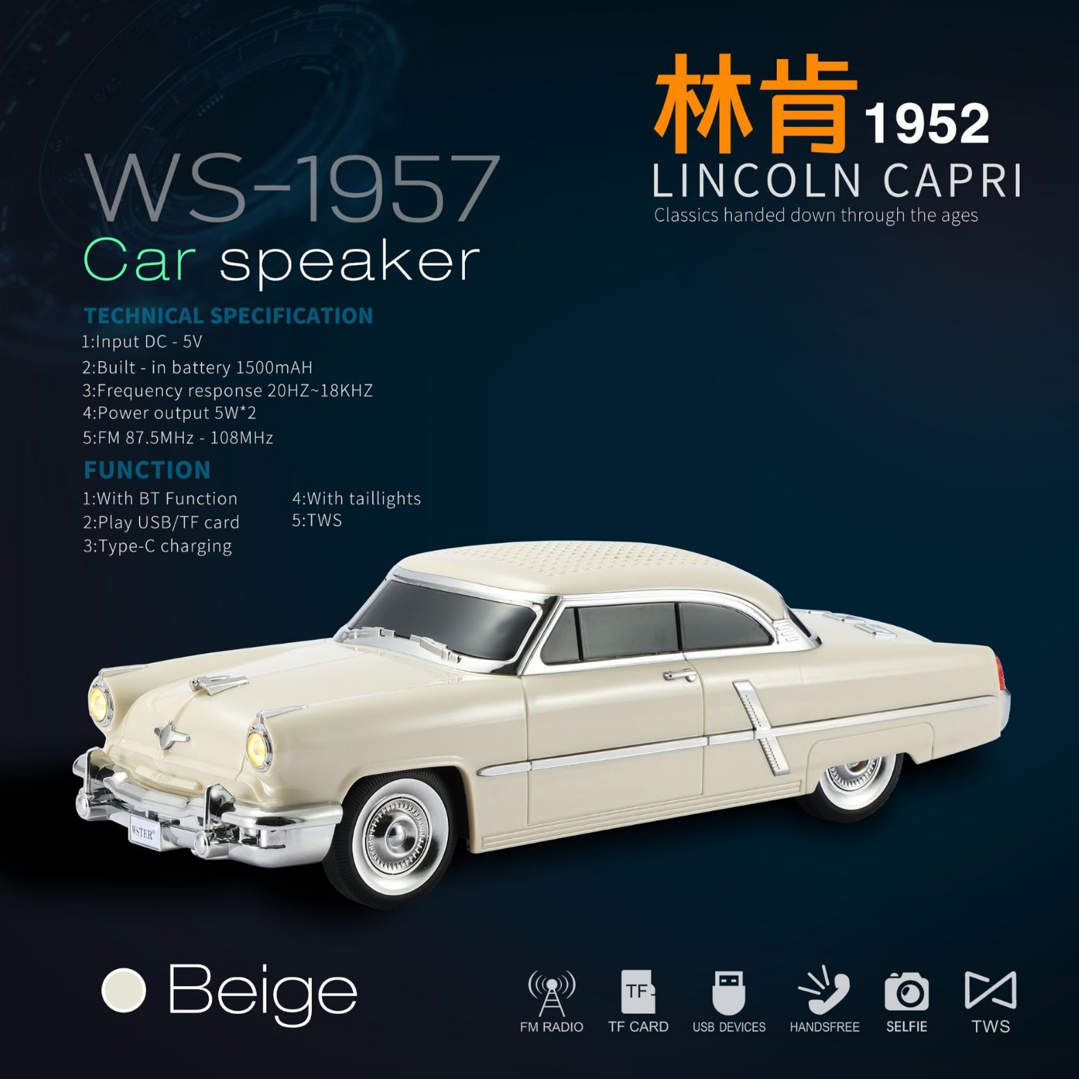 새로운 WS-1957 링컨 자동차 블루투스 스피커 데스크탑 장식품 선물 시뮬레이션 자동차 모델 데스크톱 오디오