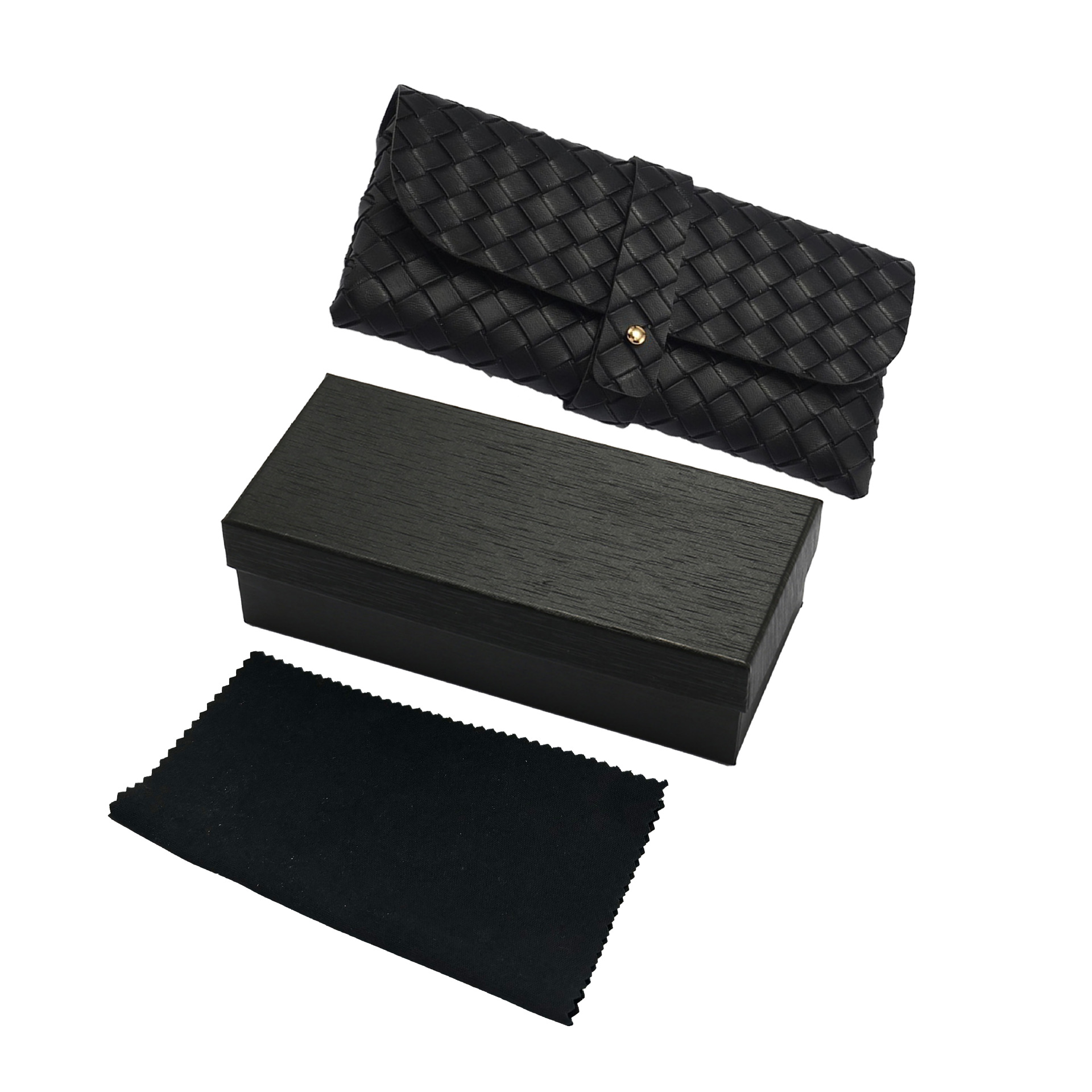 • JH012 블랙 브레이드 가죽 케이스 + 블랙 안경 닦이