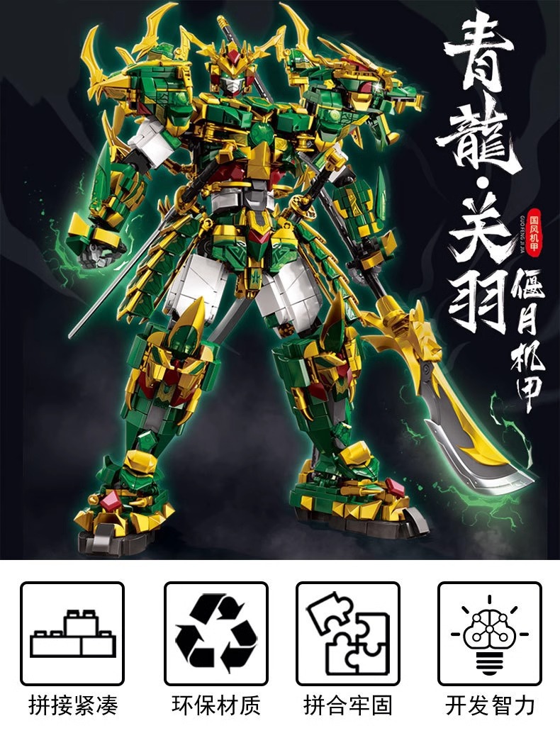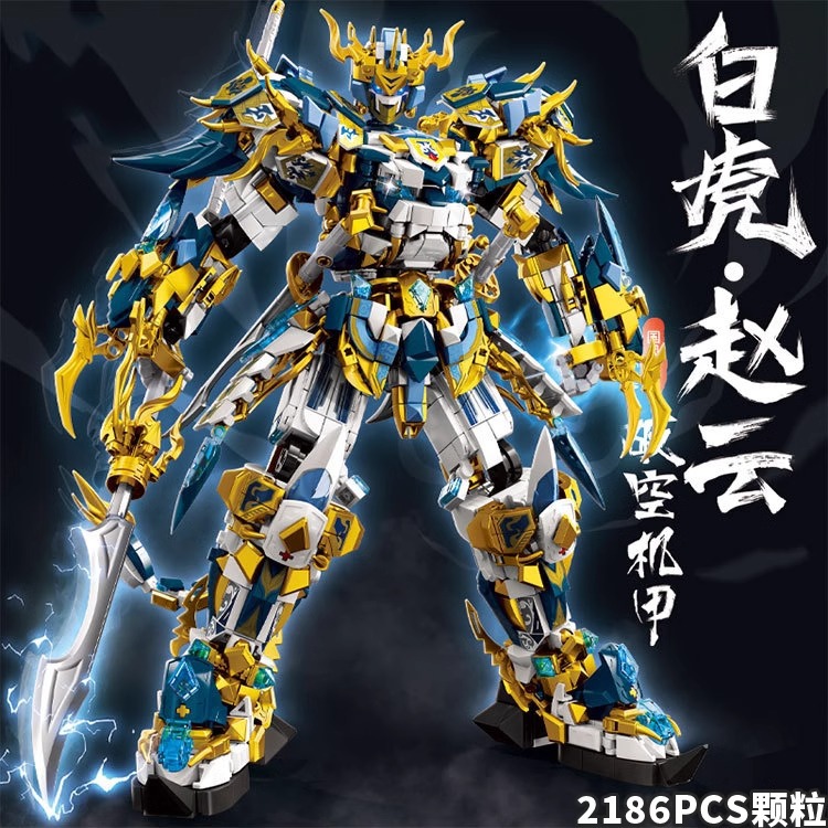 Zhao Yun Guan Yu 삼국지 중국 건물 블록 소년 조립 유행 메카 대형 모델 로봇 선물 생일 장난감스토어 가기