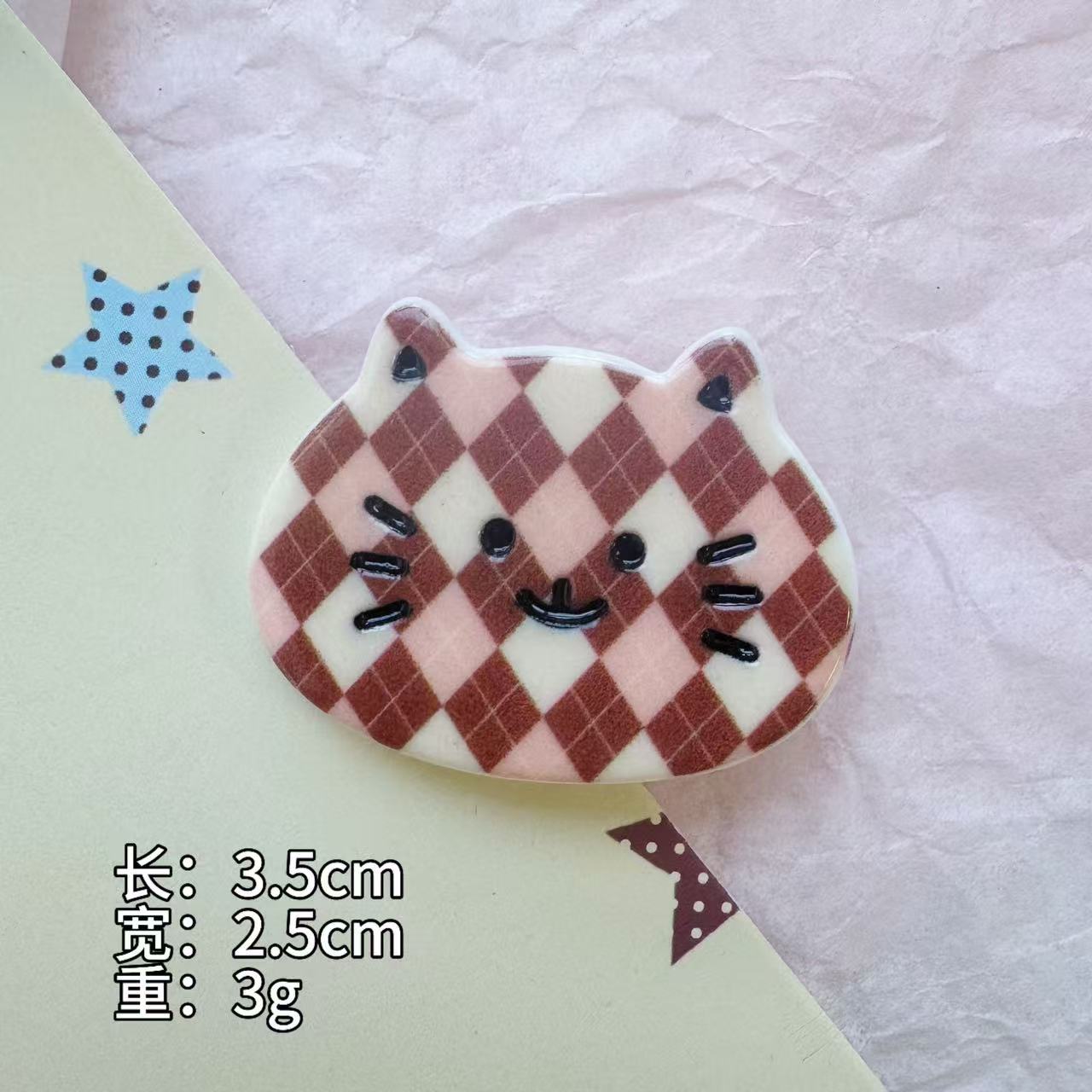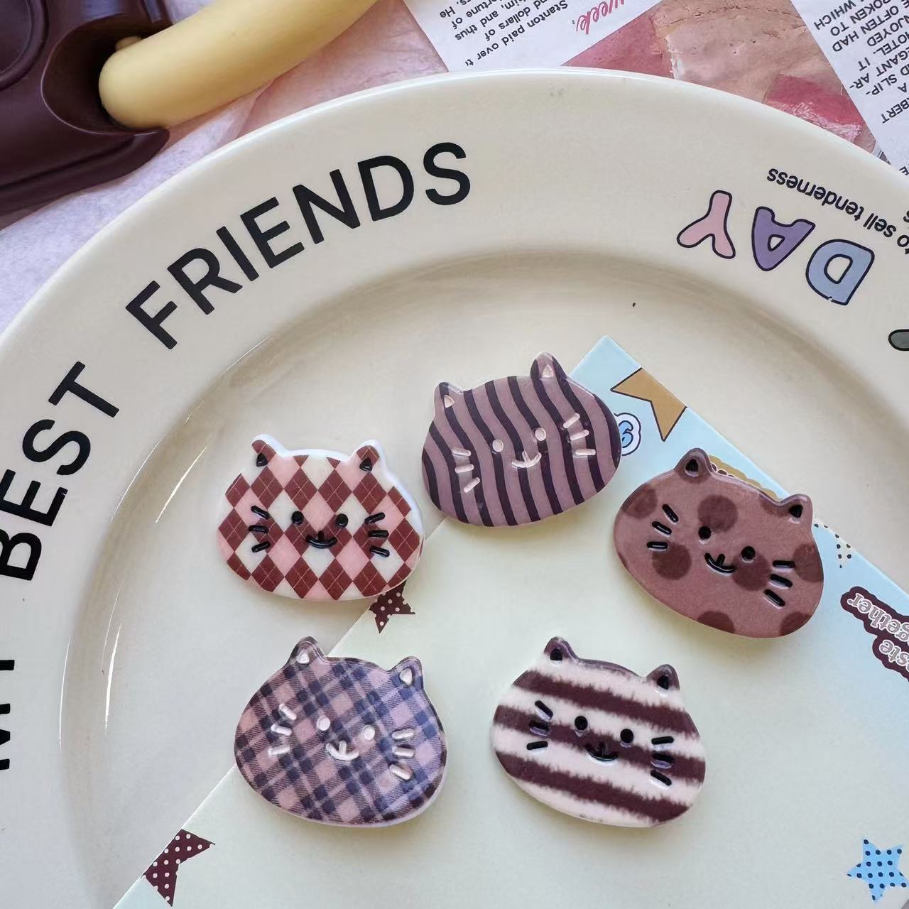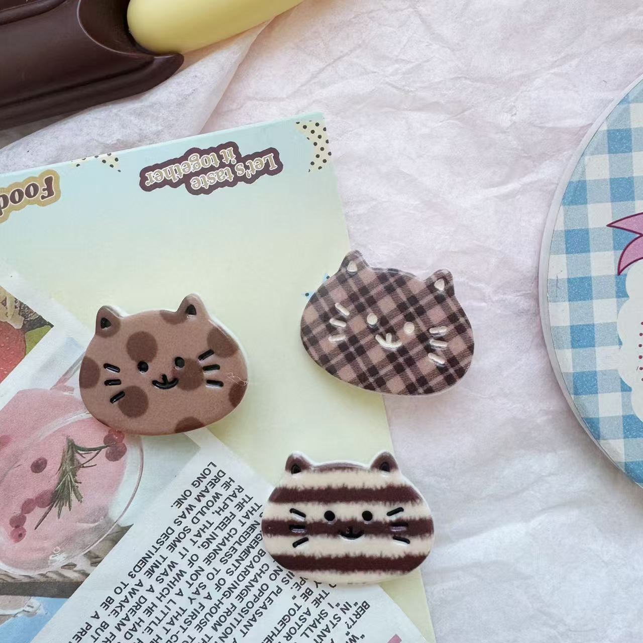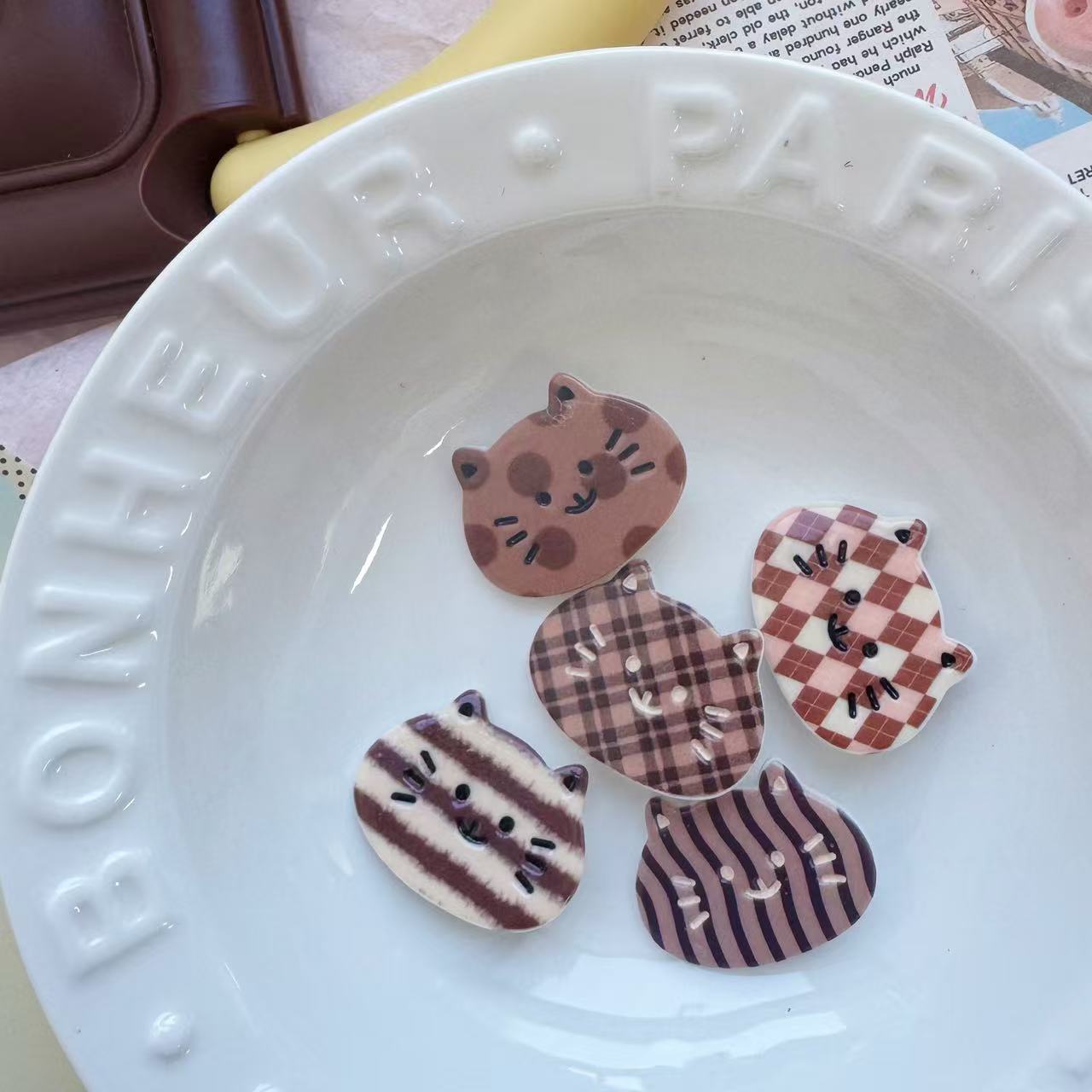 가을과 겨울 다크 브라운 라인 격자 무늬 고양이 헤어핀 레트로 달콤한 소녀 하트 뱅 만화 귀여운 헤어핀 헤어 액세서리