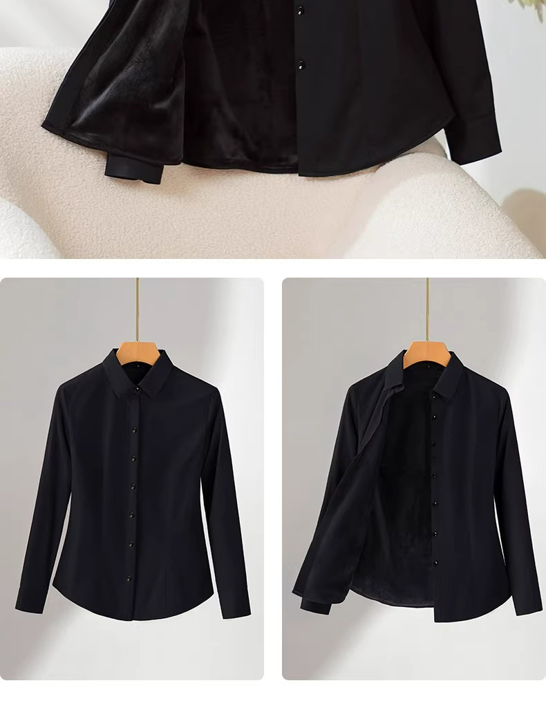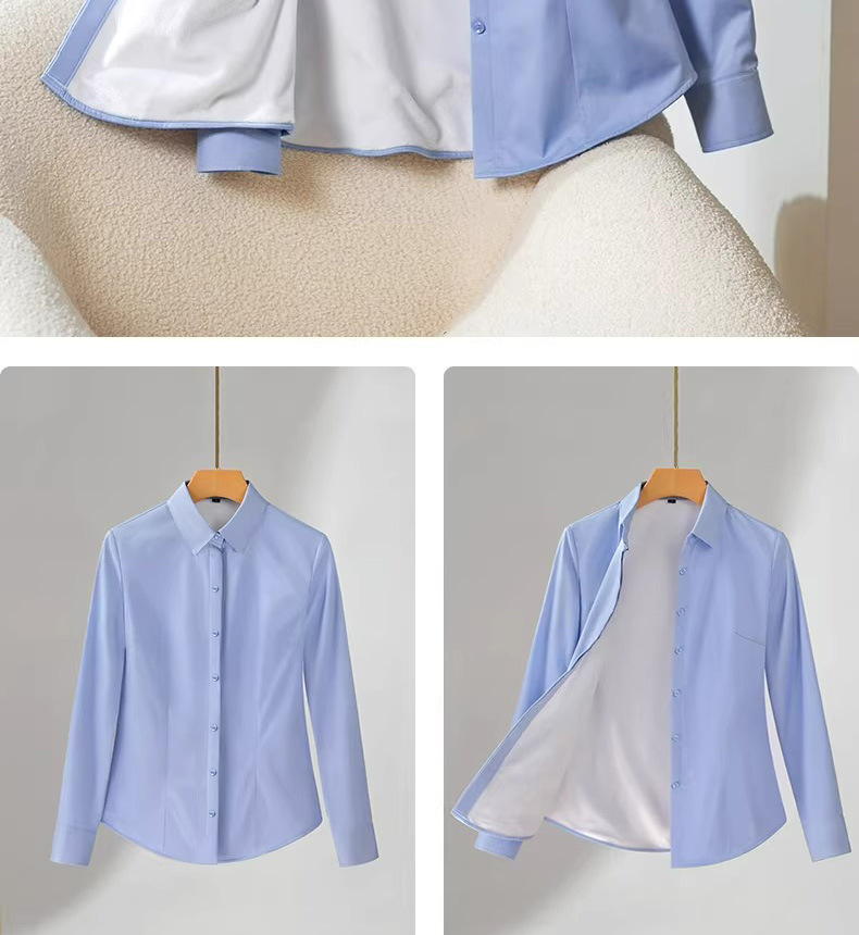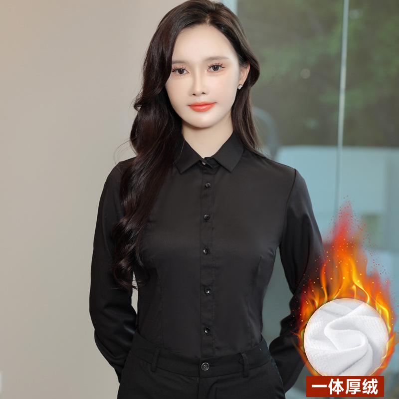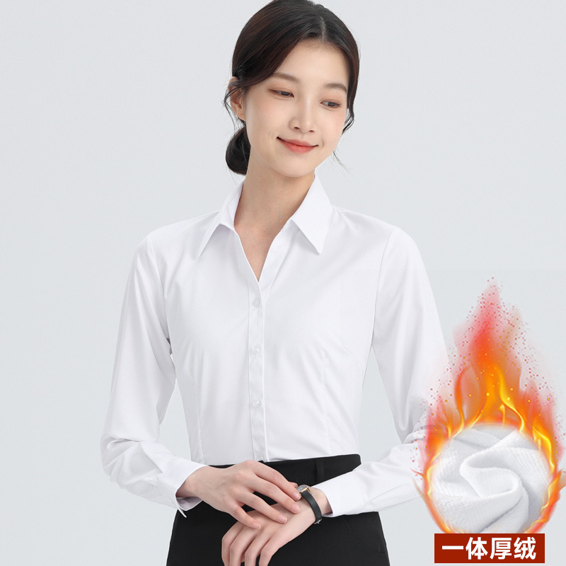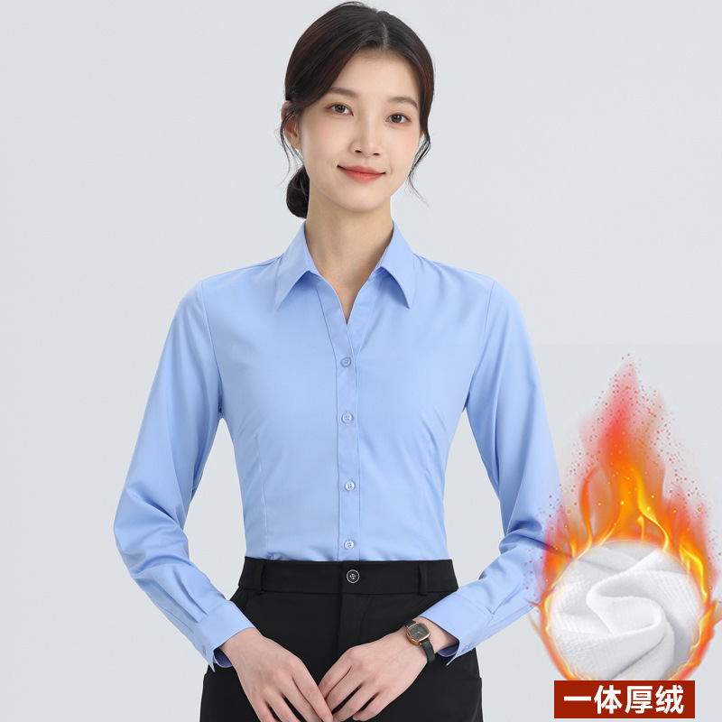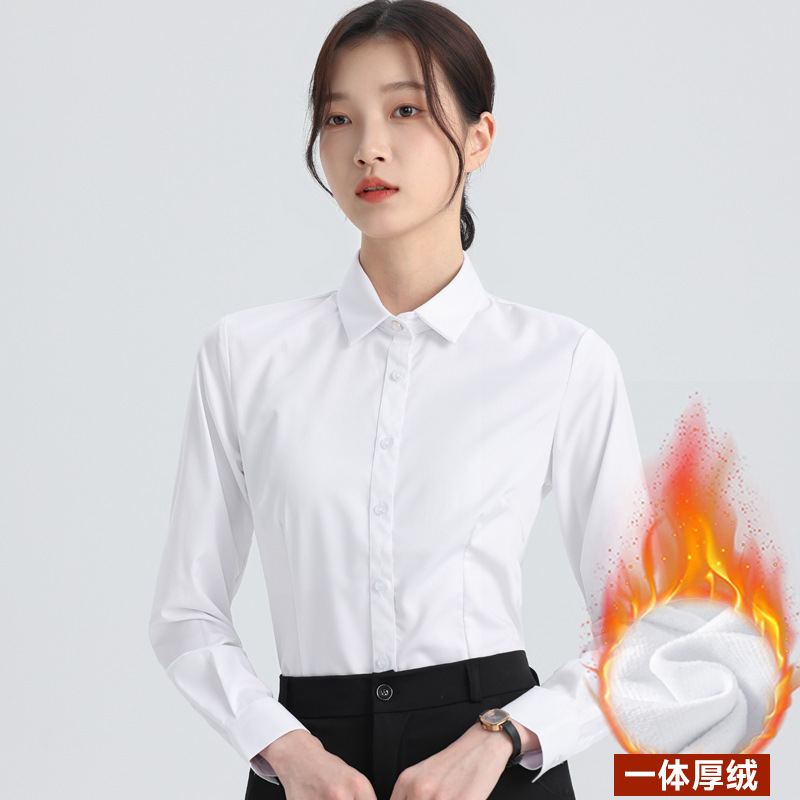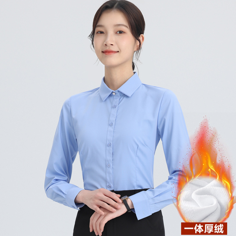 기모 셔츠 여성용 긴팔 비즈니스 전문 원피스 주름 방지 작업 착용 따뜻한 두꺼운 셔츠 새 슬리밍 작업복스토어 가기