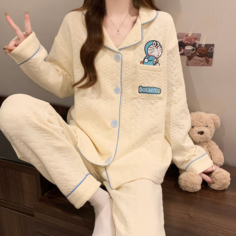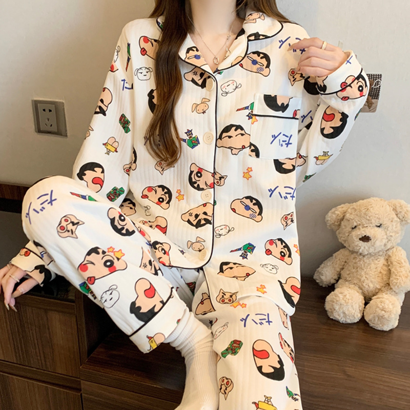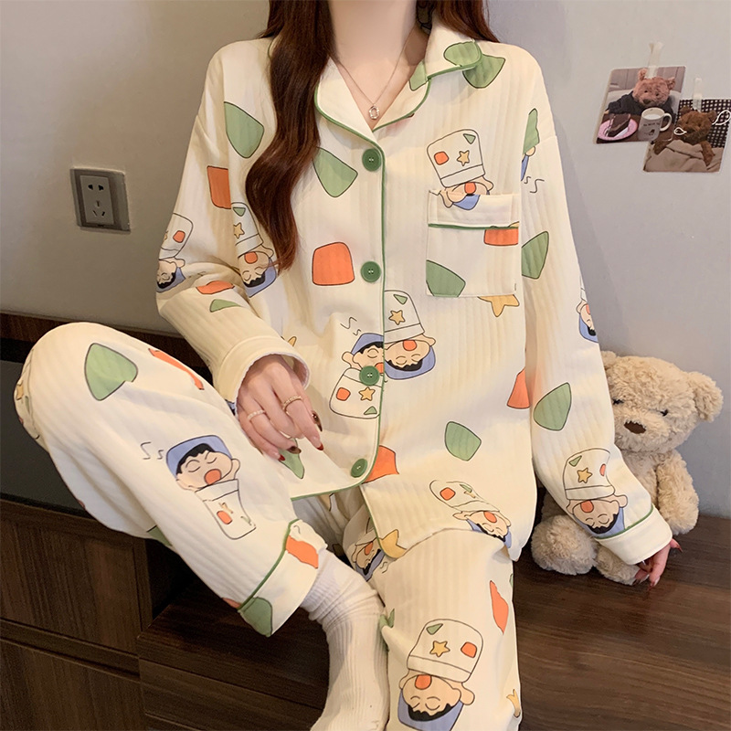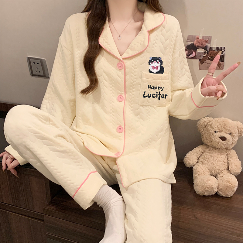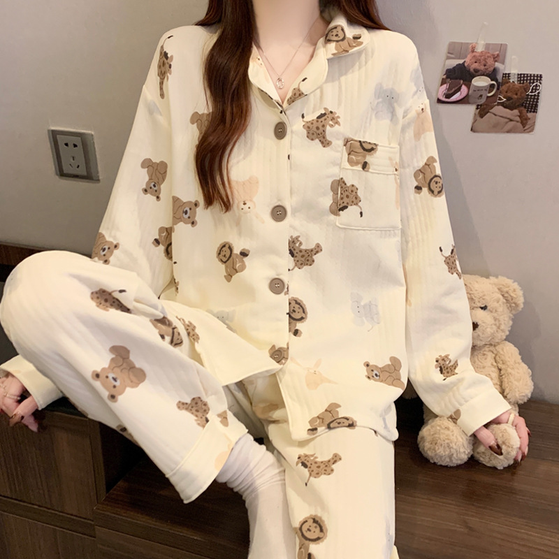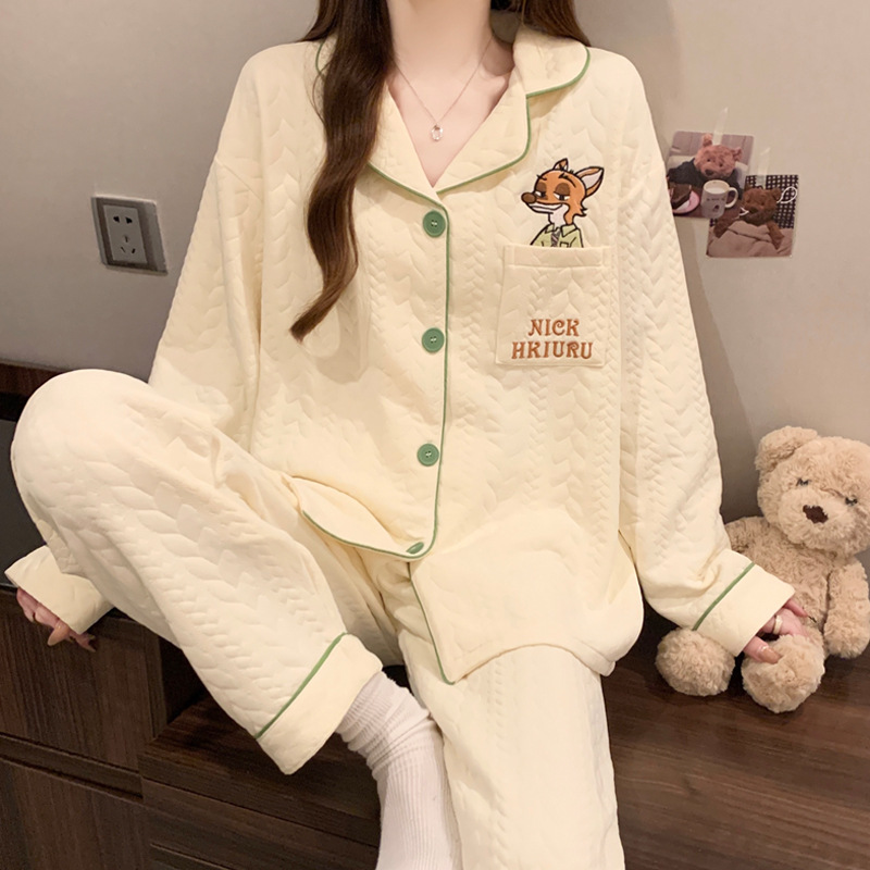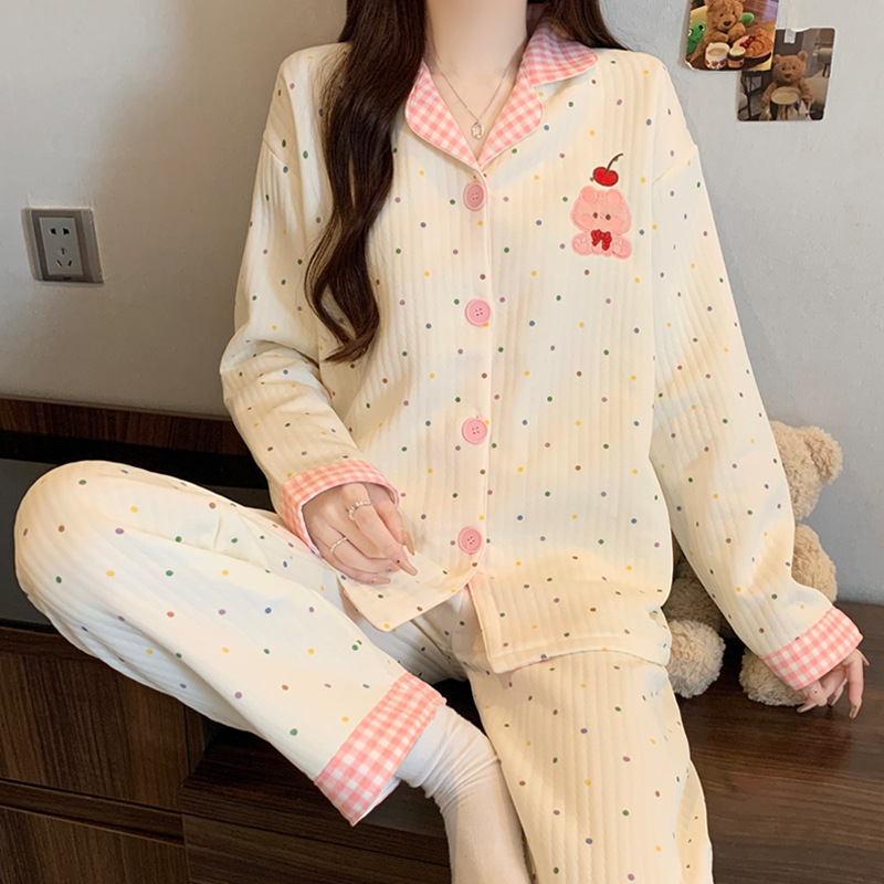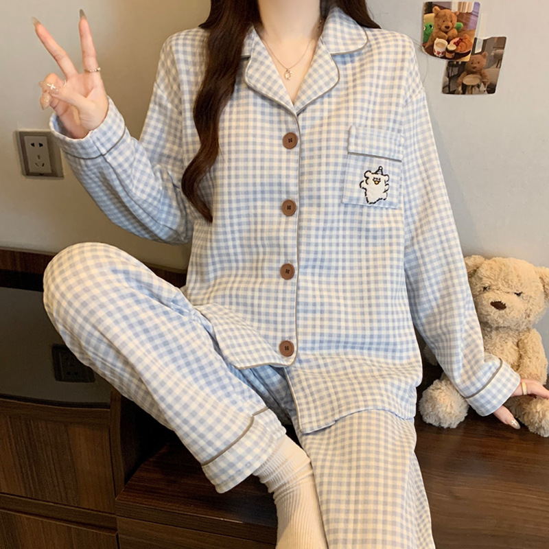 닥스훈트 잠옷 가을 겨울 여성용 따뜻하고 달콤한 체크무늬 에어 코튼 캐주얼 인기 만화 홈웨어 세트 도매스토어 가기
