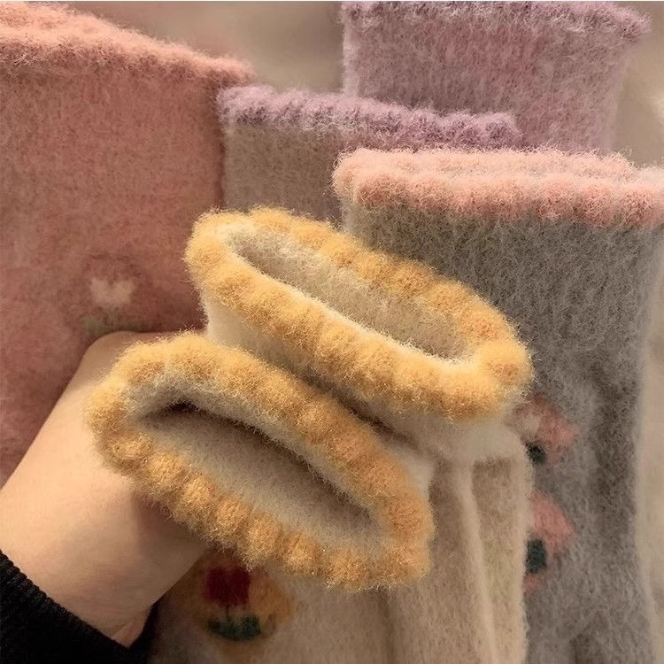 귀여운 터치 스크린 봉제 니트 5 손가락 장갑 여성의 겨울 따뜻한 기모 두꺼운 학생 자전거 냉기를 타고스토어 가기