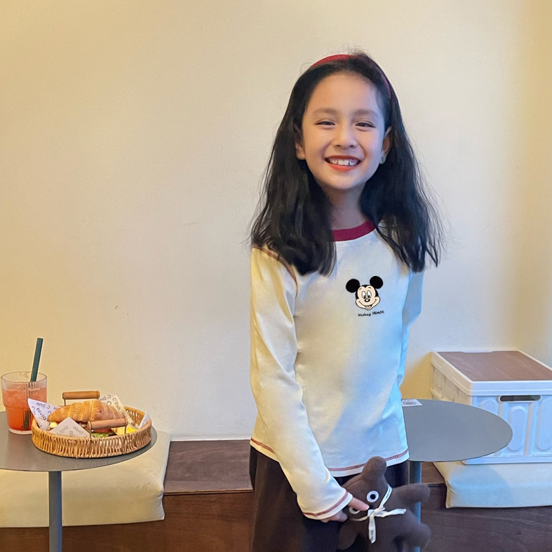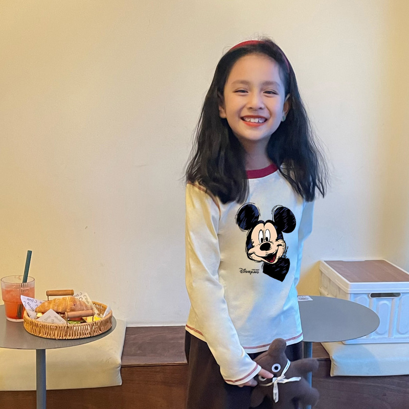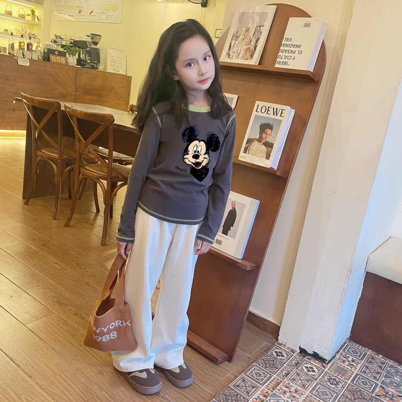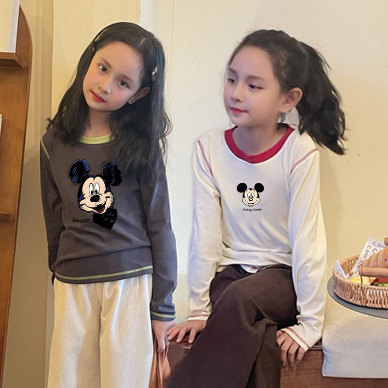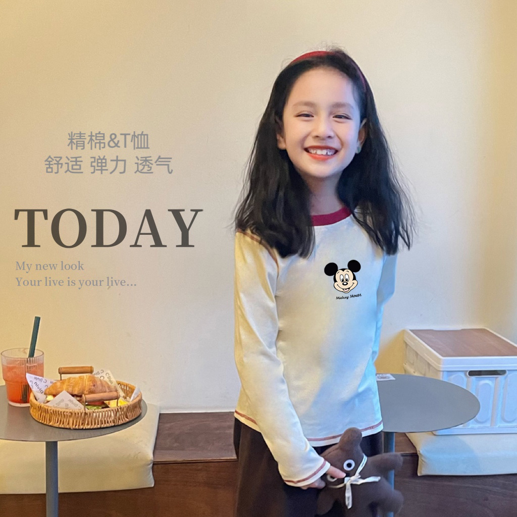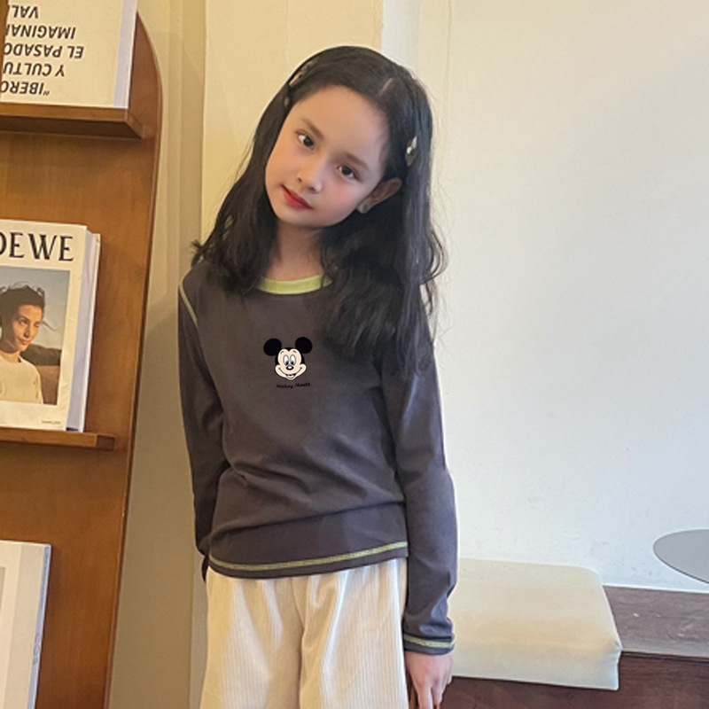 가을과 겨울 소녀의 만화 미키 퓨어 코튼 티셔츠베이스 셔츠 한국 스타일 소녀 긴 소매 티셔츠 어린이 라운드 넥 탑스토어 가기