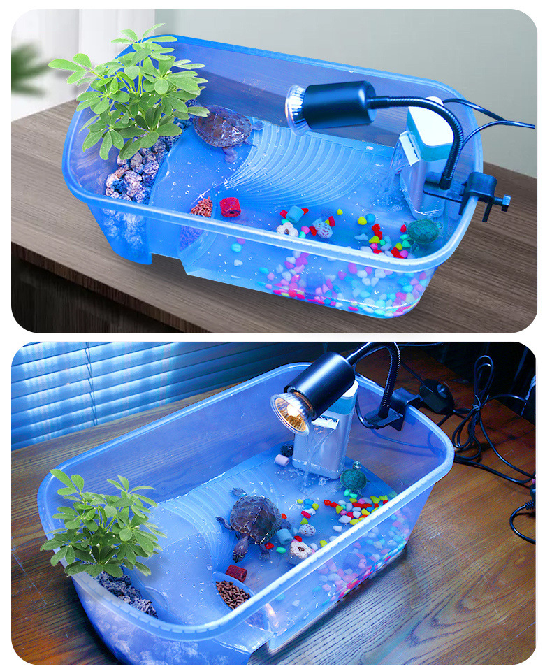 거북이 가정용 두꺼운 플라스틱 키우기 용 보관 상자 등반 테이블 바구니 탱크 거북이 분지로 키우기위한 애완 동물 거북이 용기스토어 가기