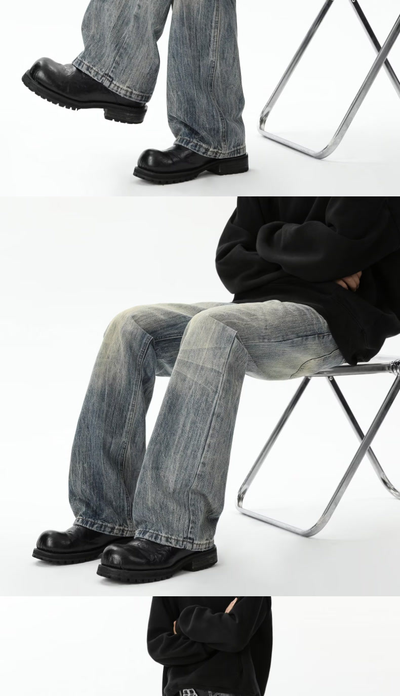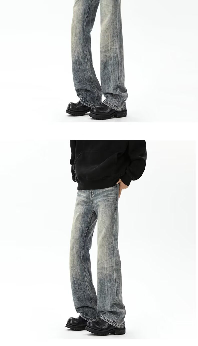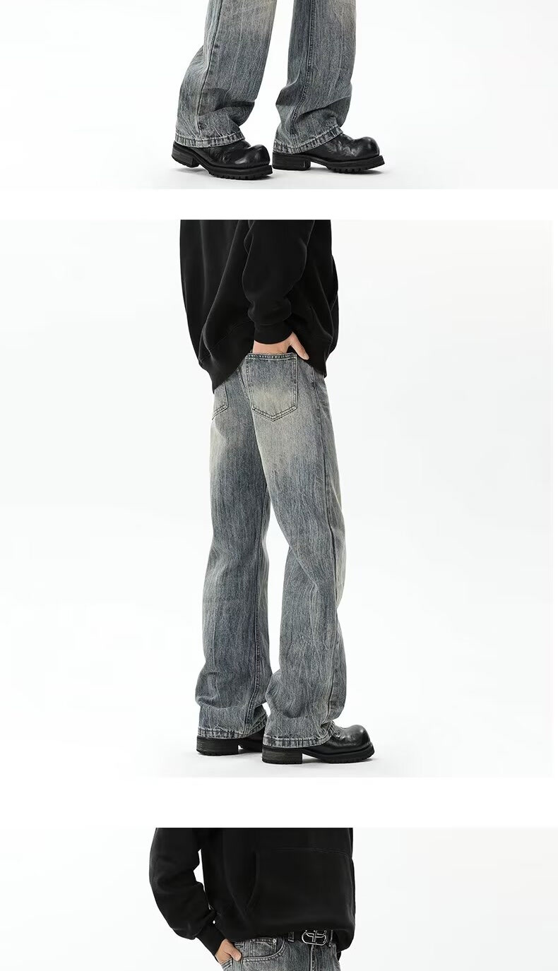 아메리칸 스타일 복고풍 세탁 슬럽 패턴 청바지 남성 하이 스트리트 강아지 잘 생긴 구식 디자인 감각 느슨한 스트레이트 바지스토어 가기
