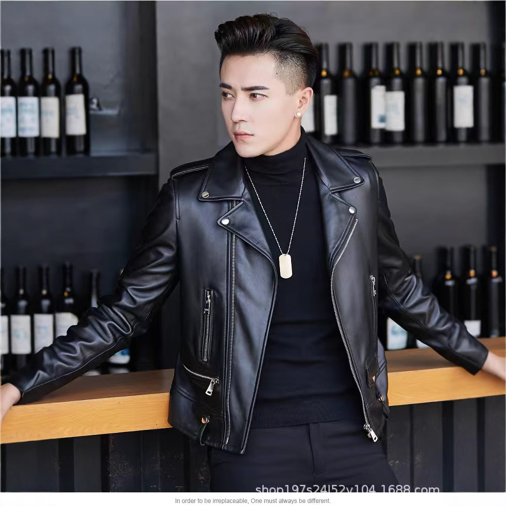 스틸 씰 인쇄 가죽 자켓 남자의 봄과 가을 옷깃 지퍼 오토바이 승마 트렌드 유행 느슨한 캐주얼 pu 가죽 자켓스토어 가기