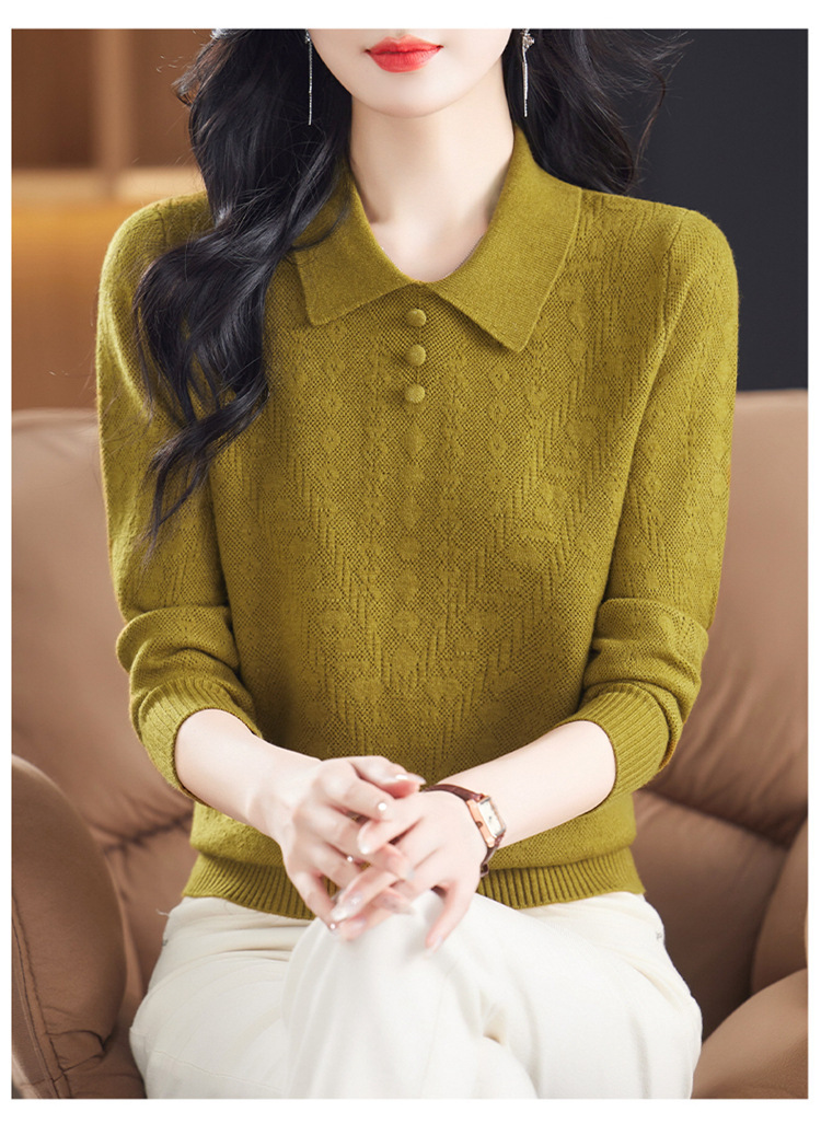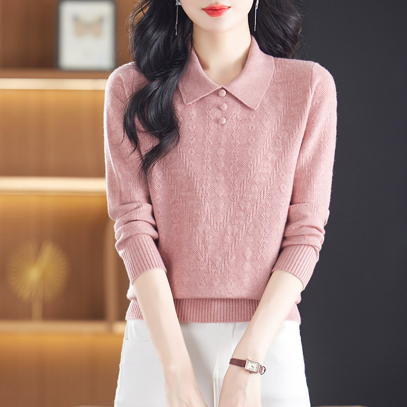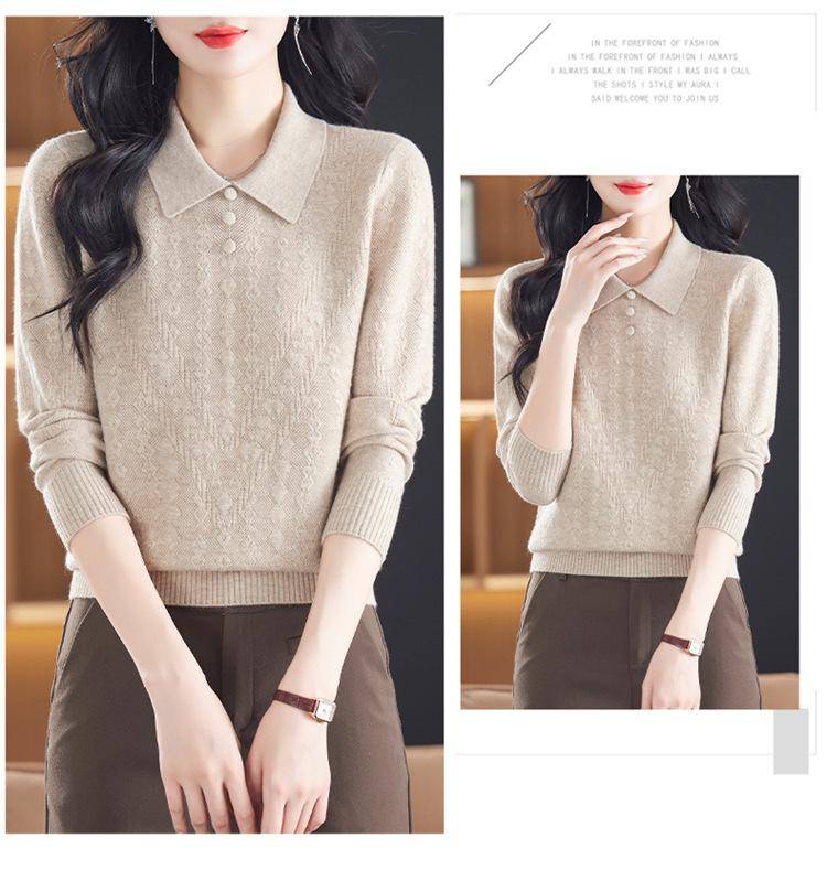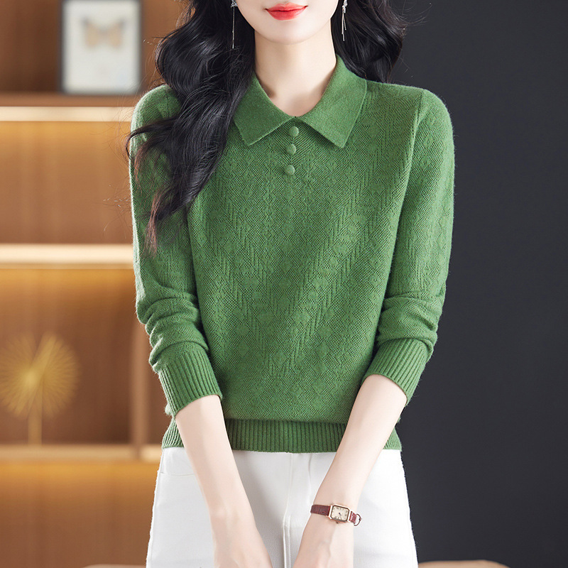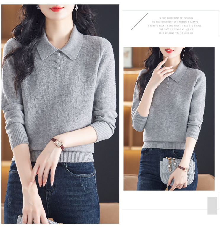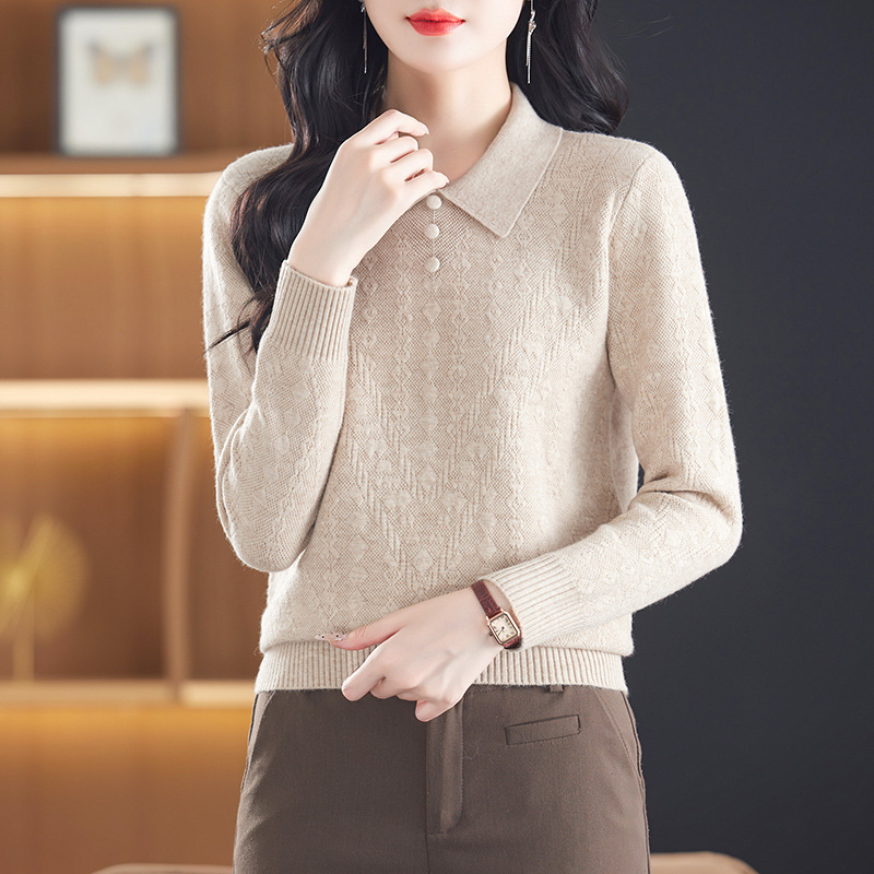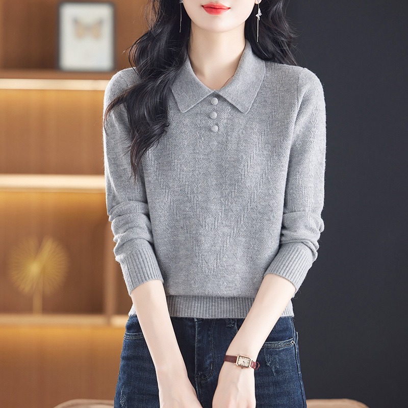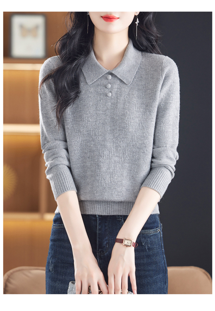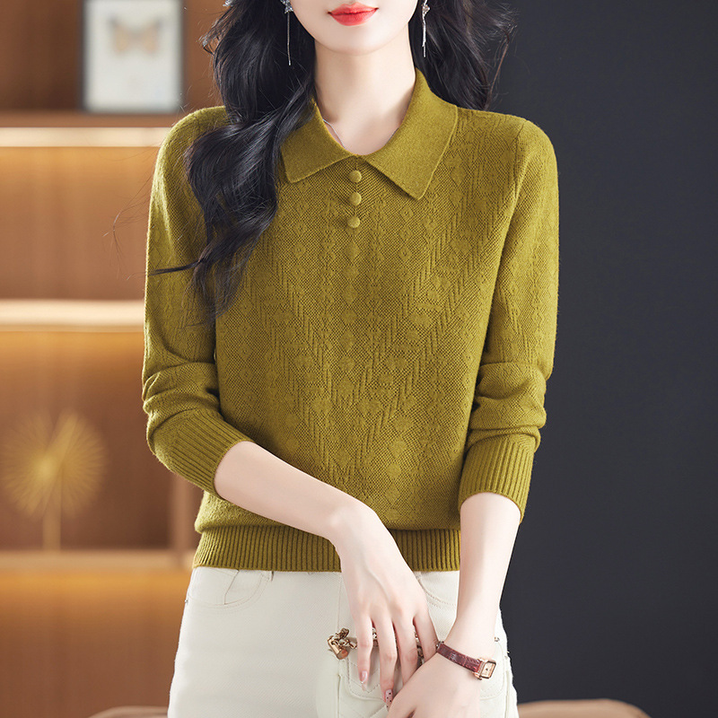 빅 브랜드 하이 엔드 울 스웨터 여성용 옷깃 니트 베이스 셔츠 가을 뉴 스타일 웨스턴 스타일 올 매치 스웨터 봄과 가을 탑