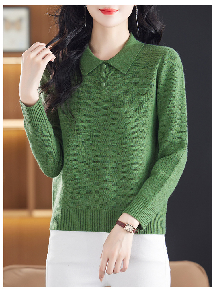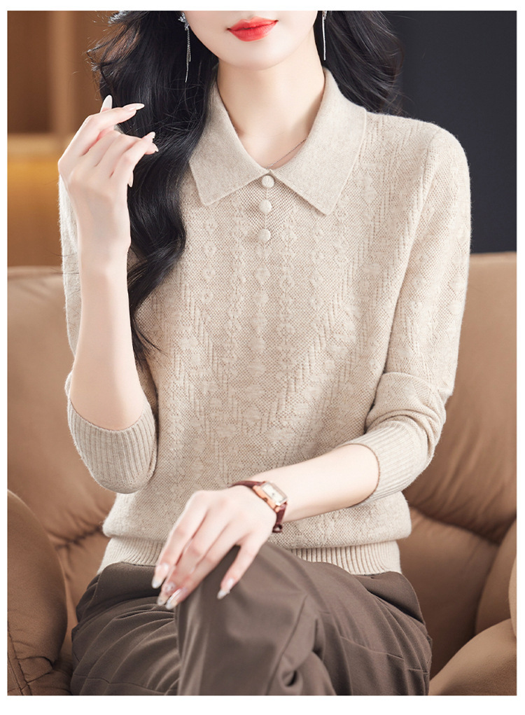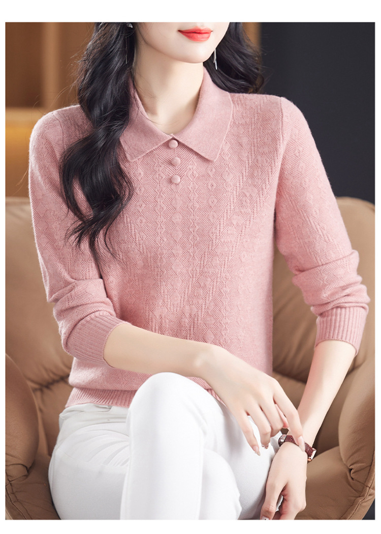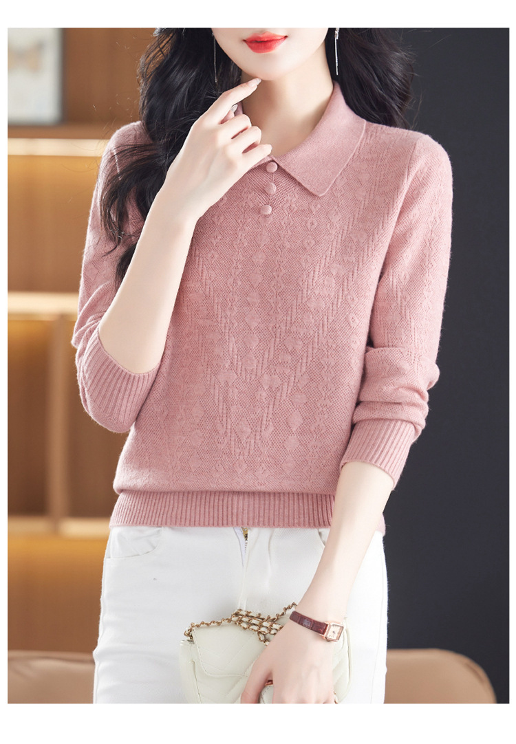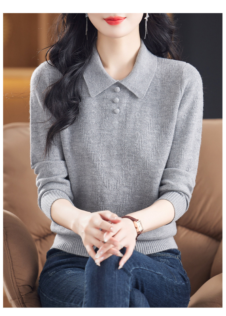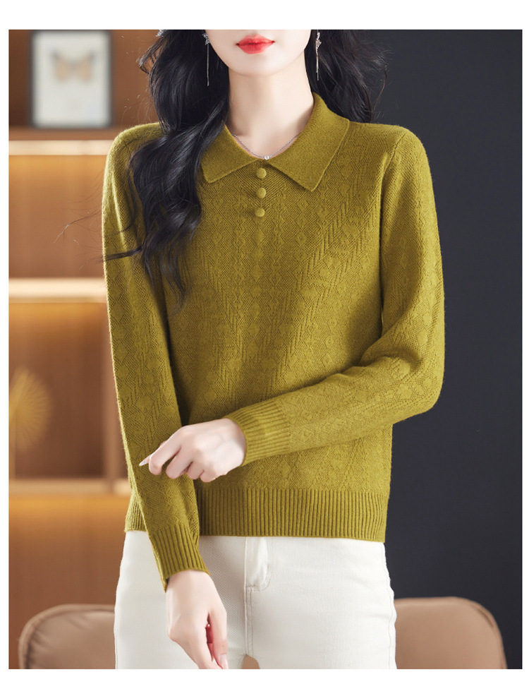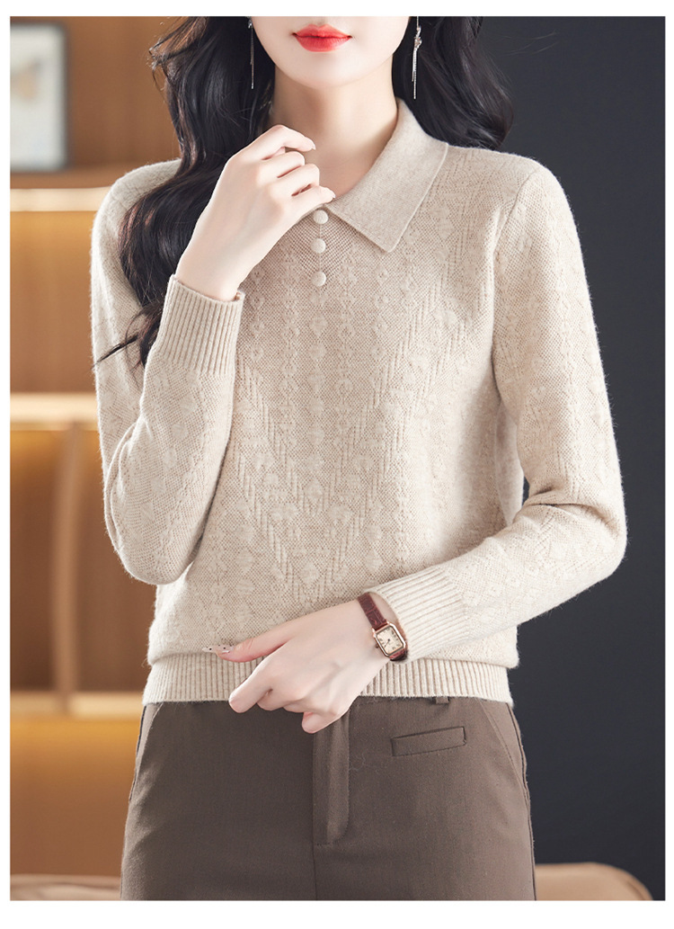 빅 브랜드 하이 엔드 울 스웨터 여성용 옷깃 니트 베이스 셔츠 가을 뉴 스타일 웨스턴 스타일 올 매치 스웨터 봄과 가을 탑
