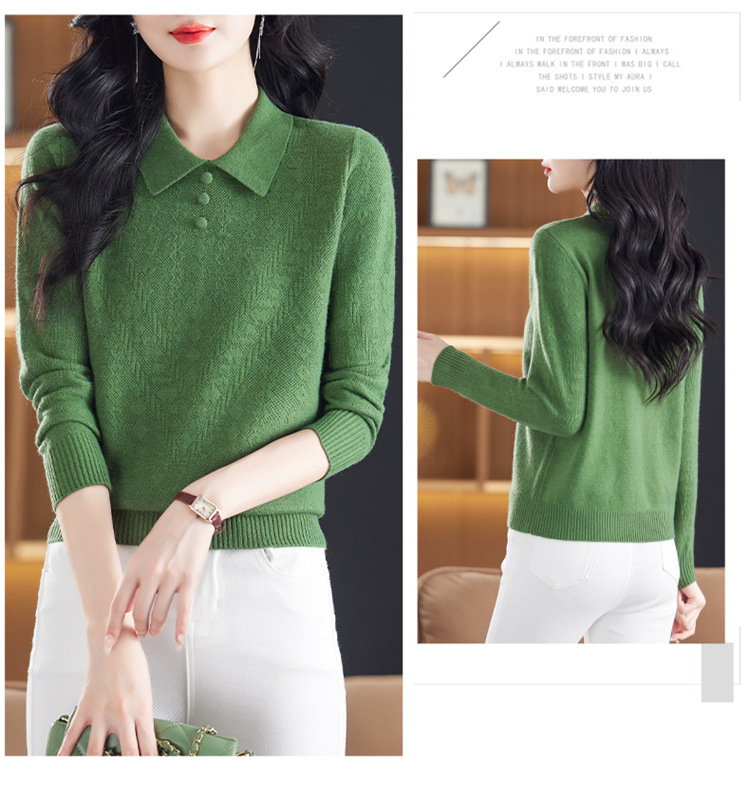 빅 브랜드 하이 엔드 울 스웨터 여성용 옷깃 니트 베이스 셔츠 가을 뉴 스타일 웨스턴 스타일 올 매치 스웨터 봄과 가을 탑스토어 가기