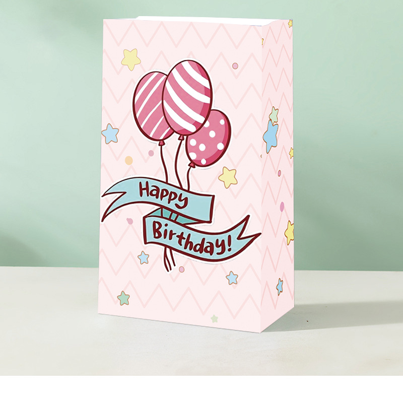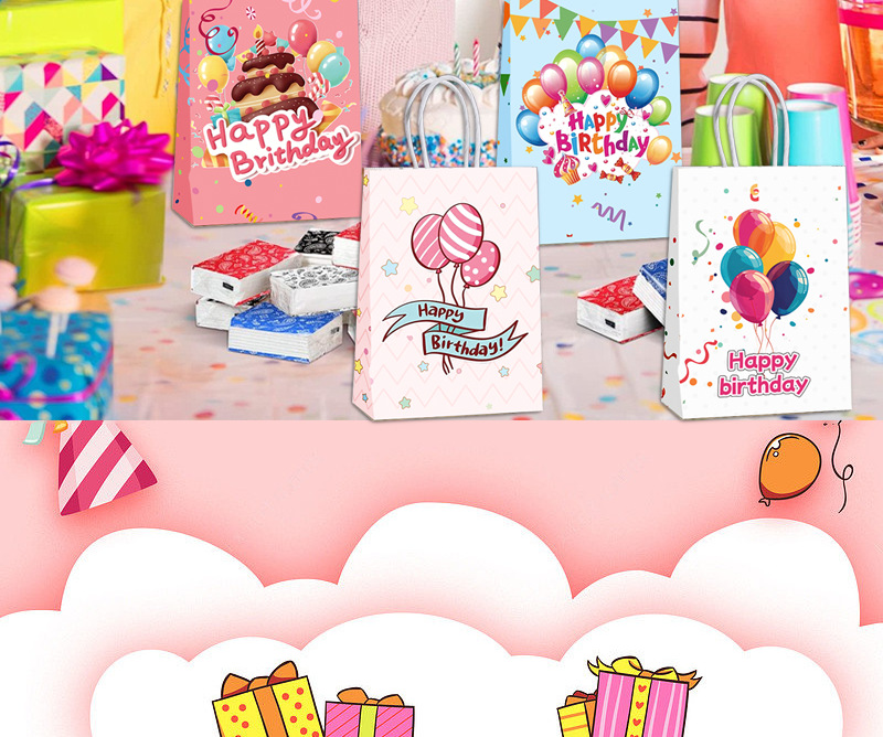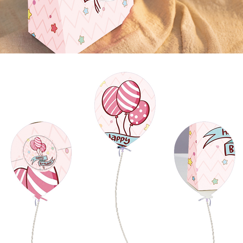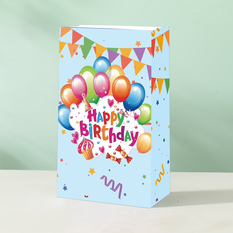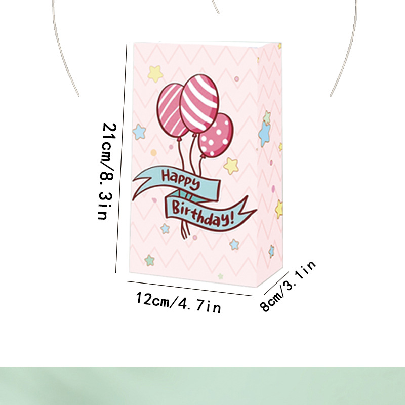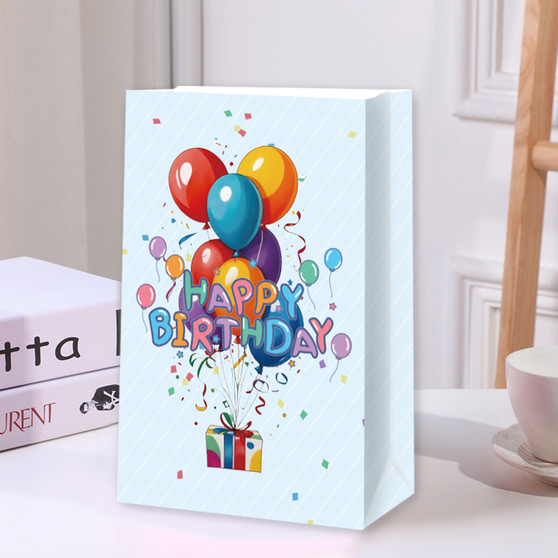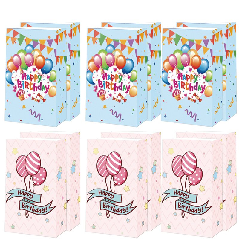 국경을 넘는 생일 파티 선물 가방, 만화 풍선 케이크, 스티커가 있는 크래프트 종이 핸드백, 휴대용 포장지 가방스토어 가기