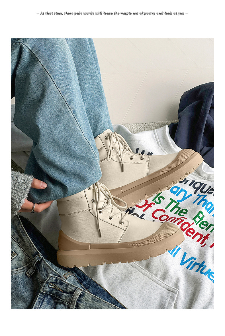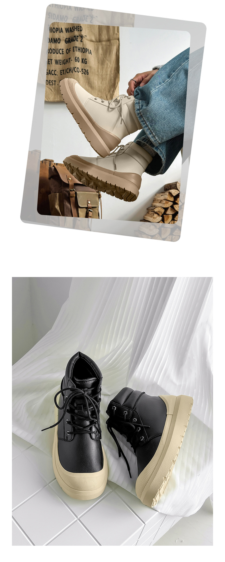 가을/겨울 2024 애호가 머핀 두꺼운 밑창 캐주얼 스노우 부츠 플랫 밑창 둥근 머리 증가 기모 따뜻한 빵 신발