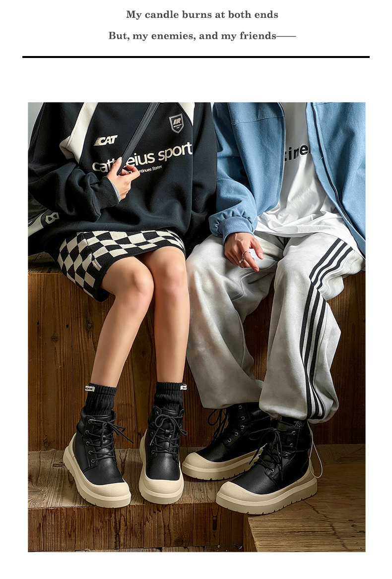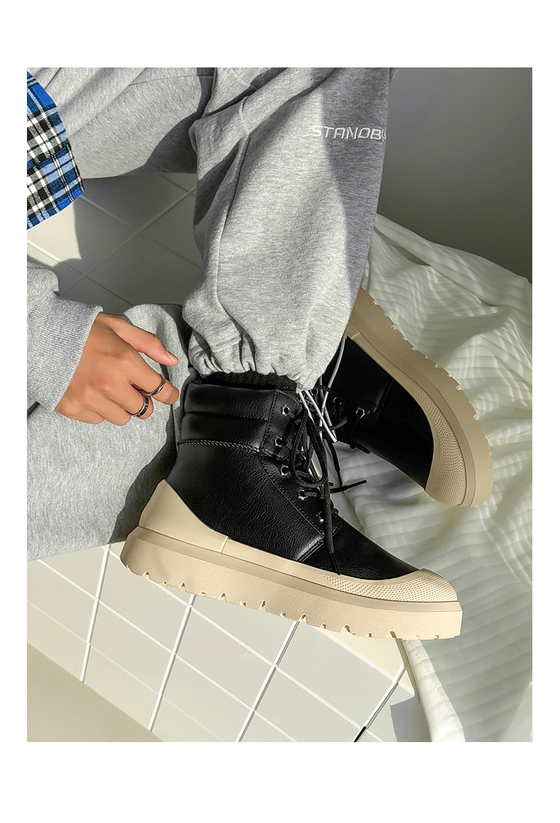가을/겨울 2024 애호가 머핀 두꺼운 밑창 캐주얼 스노우 부츠 플랫 밑창 둥근 머리 증가 기모 따뜻한 빵 신발스토어 가기