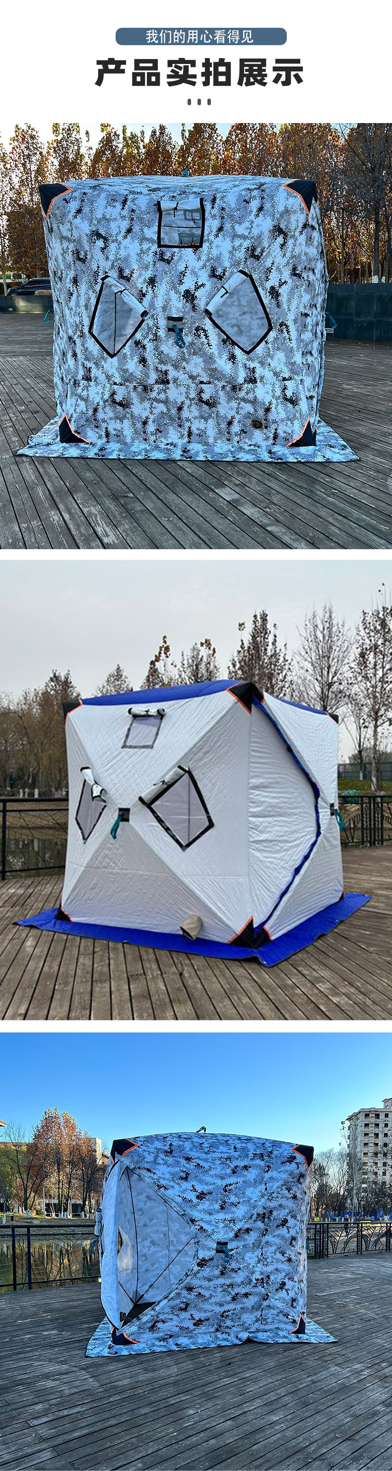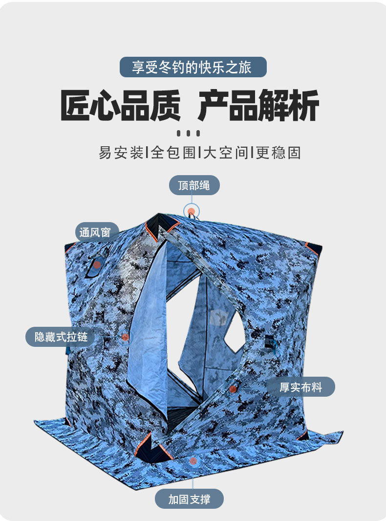 야외 겨울 낚시 텐트 공장 도매 파란색과 흰색 위장 얼음 낚시 텐트 따뜻한 두꺼운 멀티 사람 겨울 낚시 텐트스토어 가기