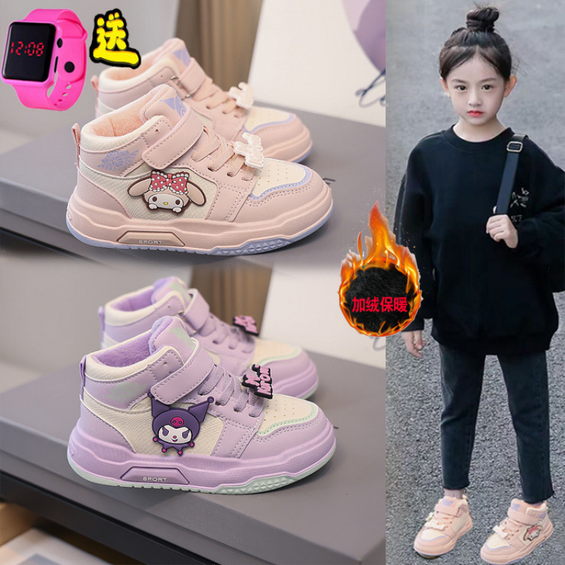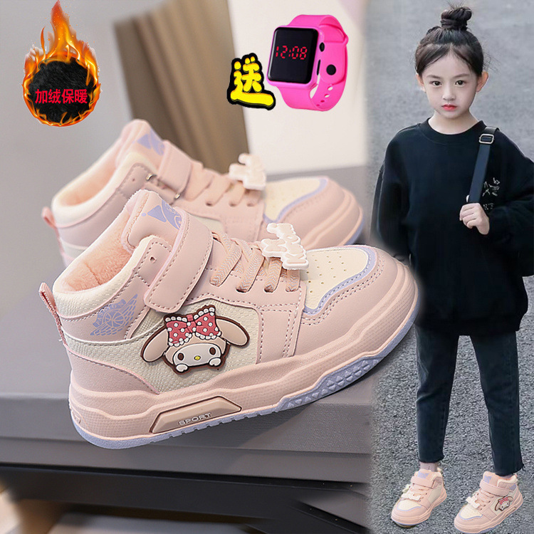 여자 보드 신발 기모 겨울 초등학생 면화 따뜻한 새로운 어린이 스포츠 캐주얼 신발 패션 큐크 어린이 신발