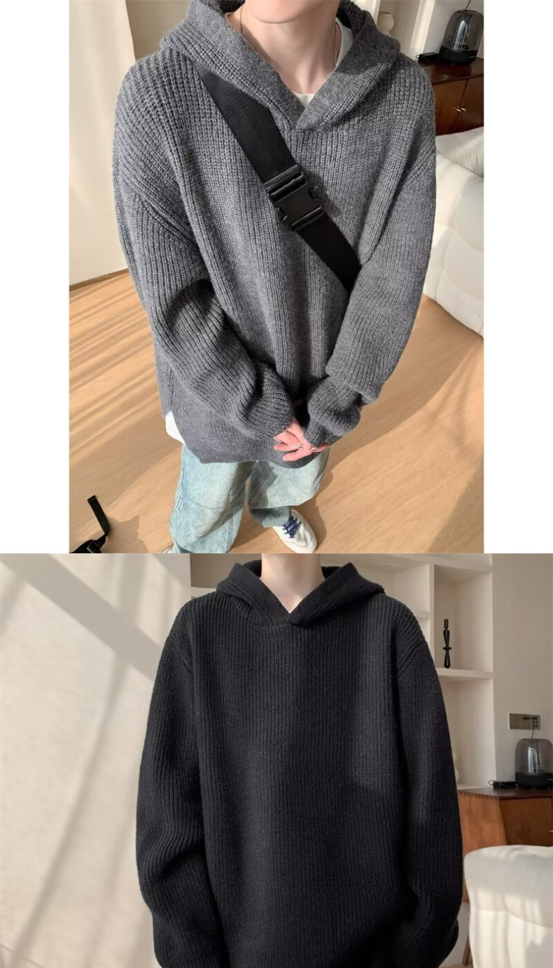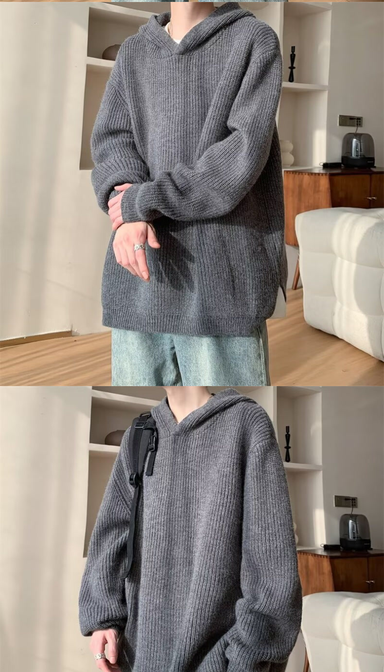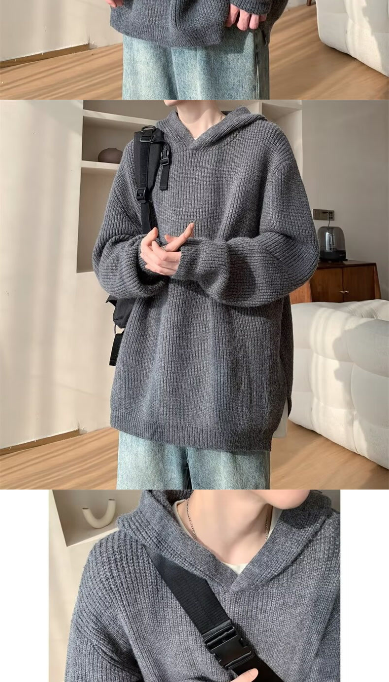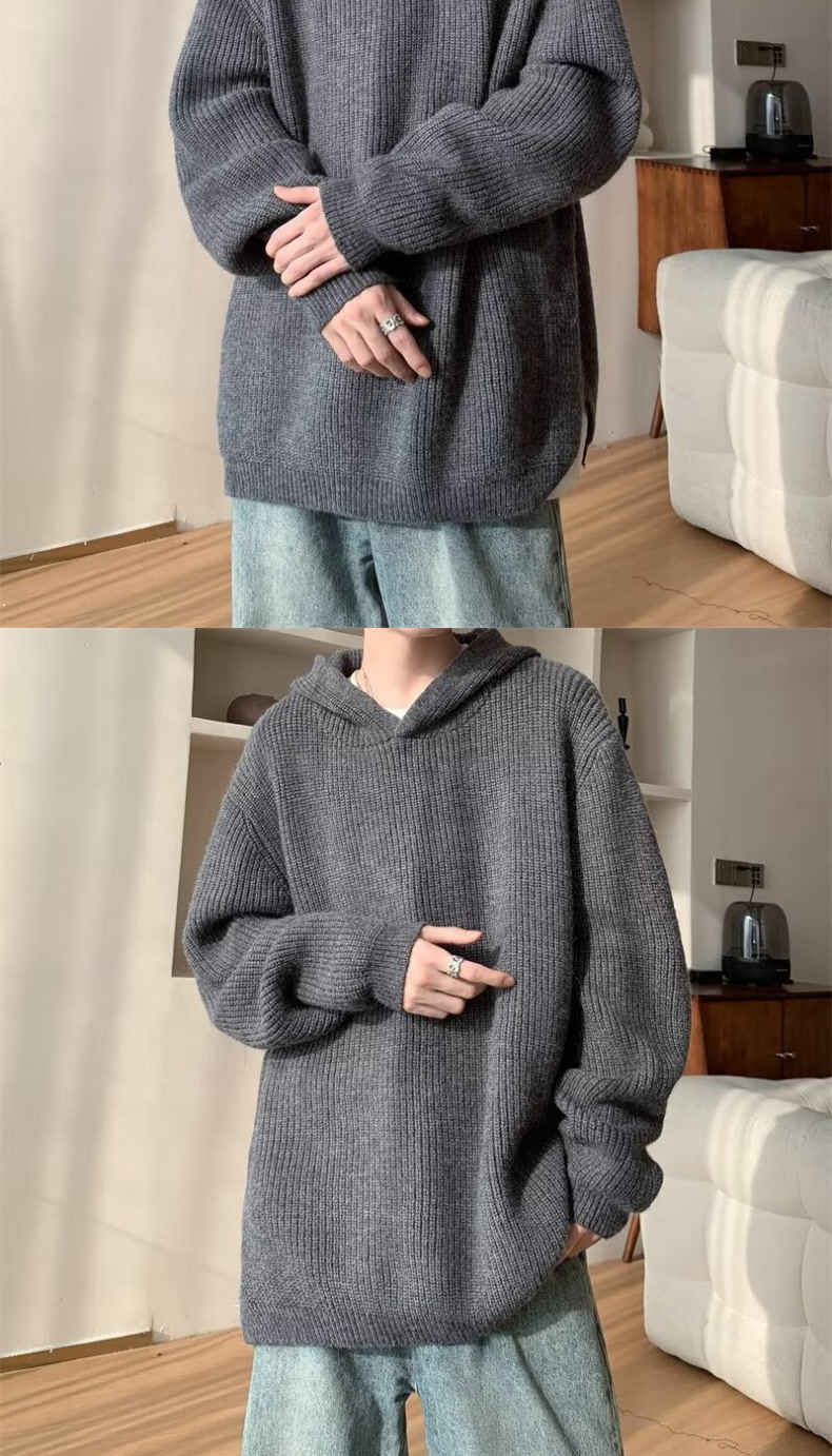 그레이 스웨터 남자 겨울 아메리칸 스타일 레트로 후드 니트 스웨터 하이 엔드 센스 강아지 잘 생긴 스웨터 재킷스토어 가기