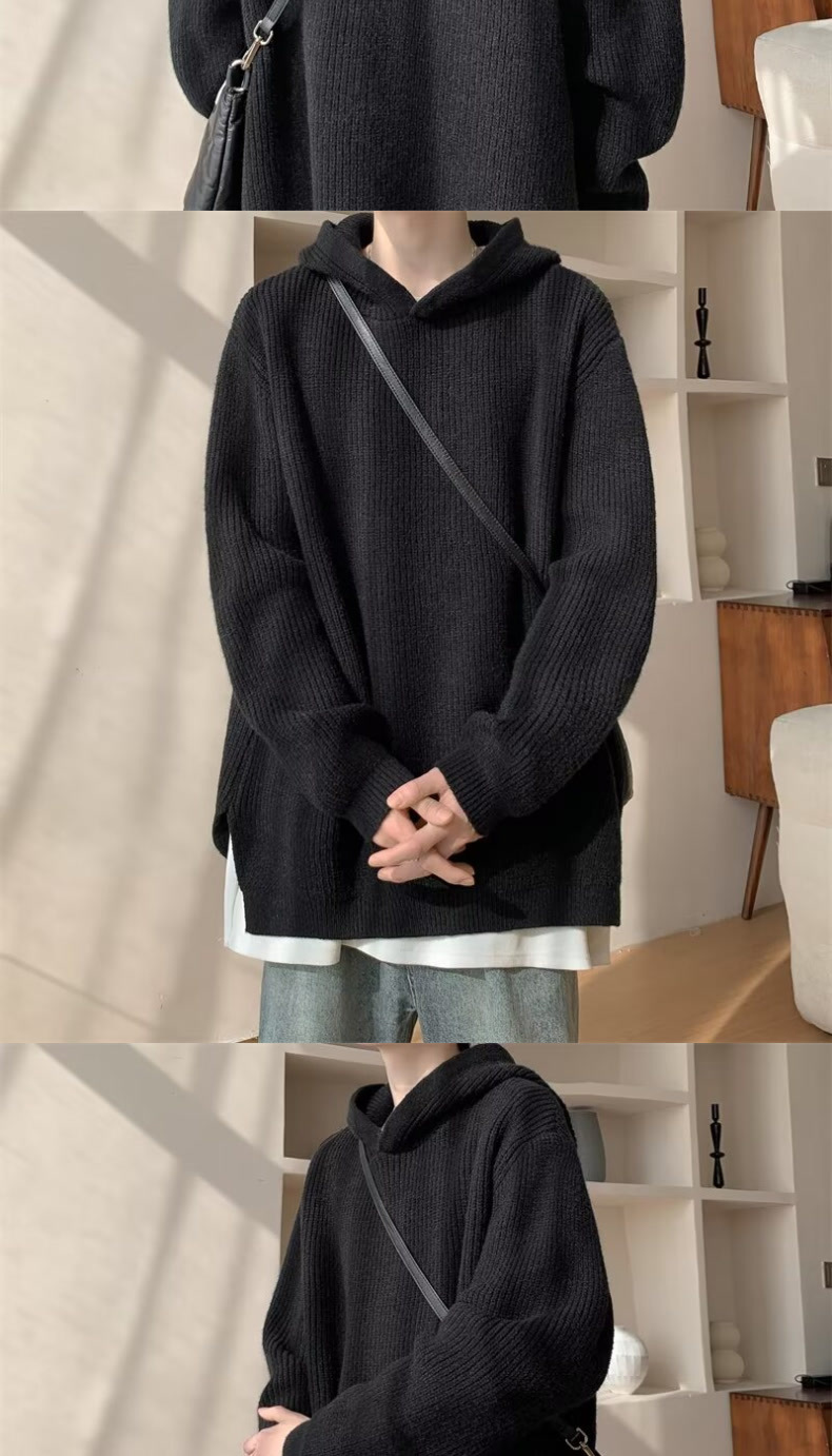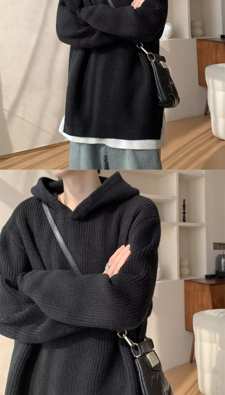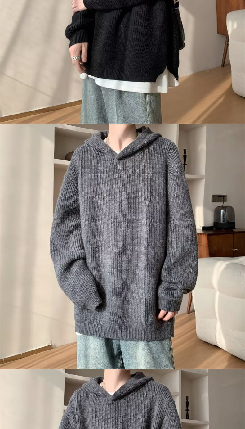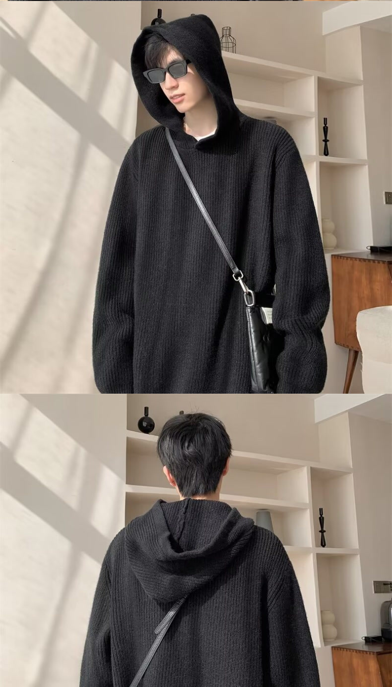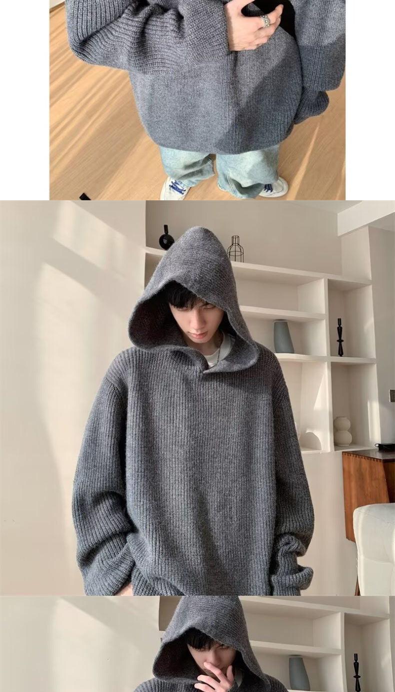그레이 스웨터 남자 겨울 아메리칸 스타일 레트로 후드 니트 스웨터 하이 엔드 센스 강아지 잘 생긴 스웨터 재킷스토어 가기