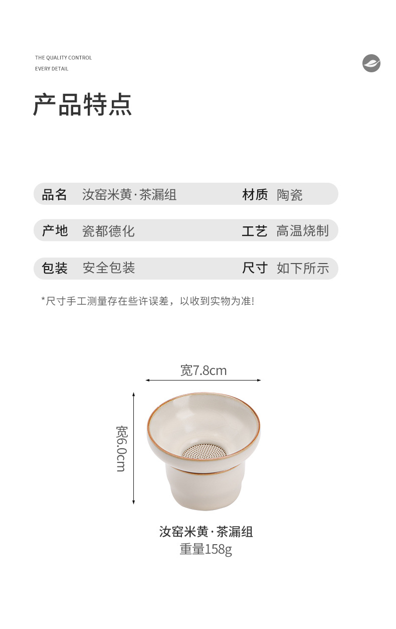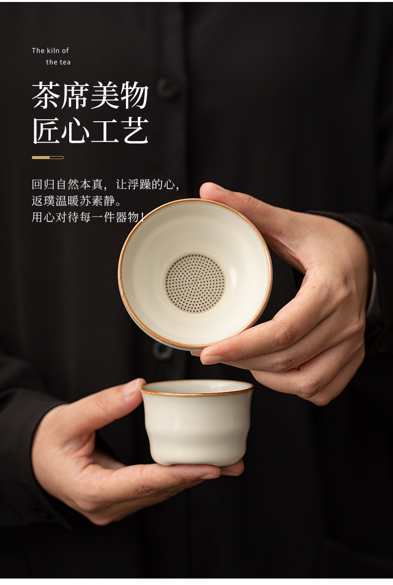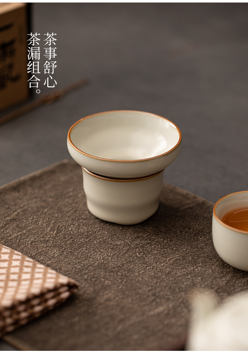 Chenxiang 베이지 Ru 가마 차 누출 차 필터 세트 세라믹 차 필터 스크린 차 물 분리 차 구획 차 만들기 유물스토어 가기