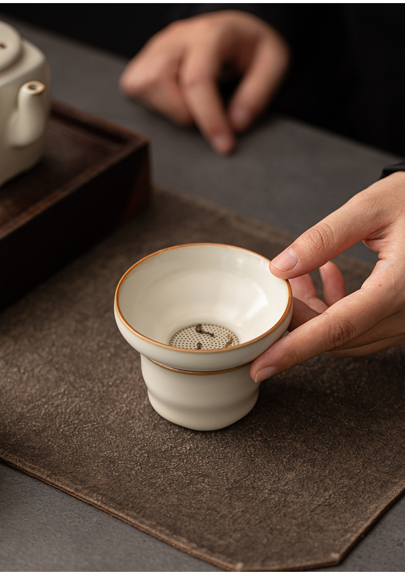 Chenxiang 베이지 Ru 가마 차 누출 차 필터 세트 세라믹 차 필터 스크린 차 물 분리 차 구획 차 만들기 유물