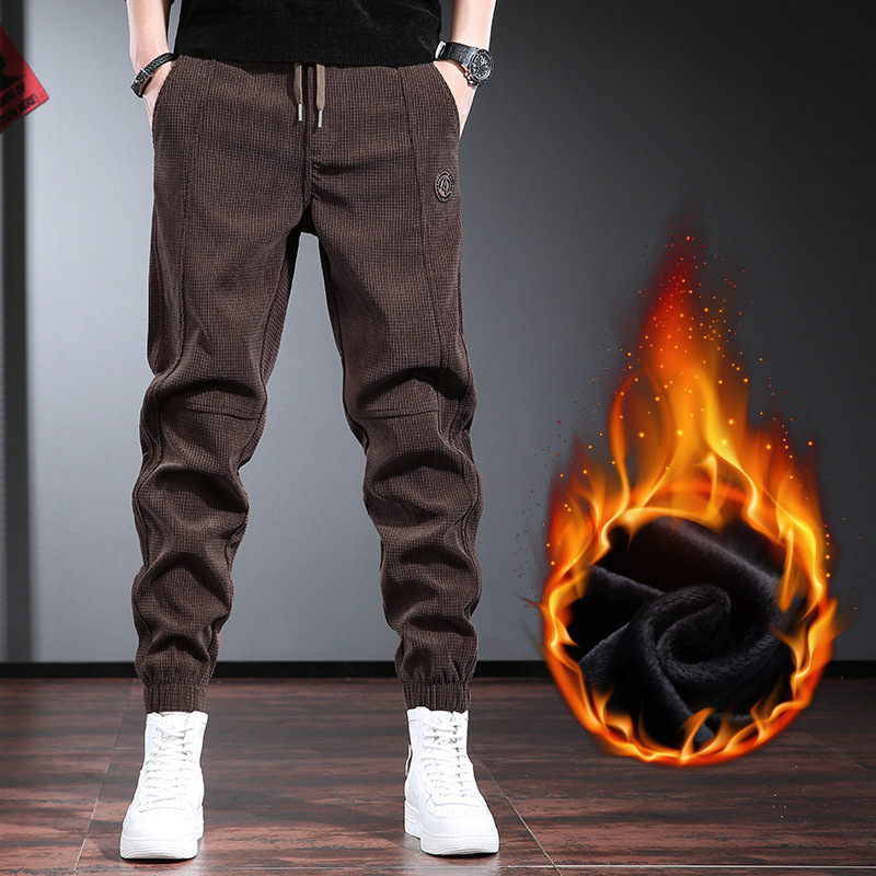 헤비 코듀로이 바지 남자 2024 봄 가을과 겨울 새로운 느슨한 발가락 패딩 기모 캐주얼 바지 바지