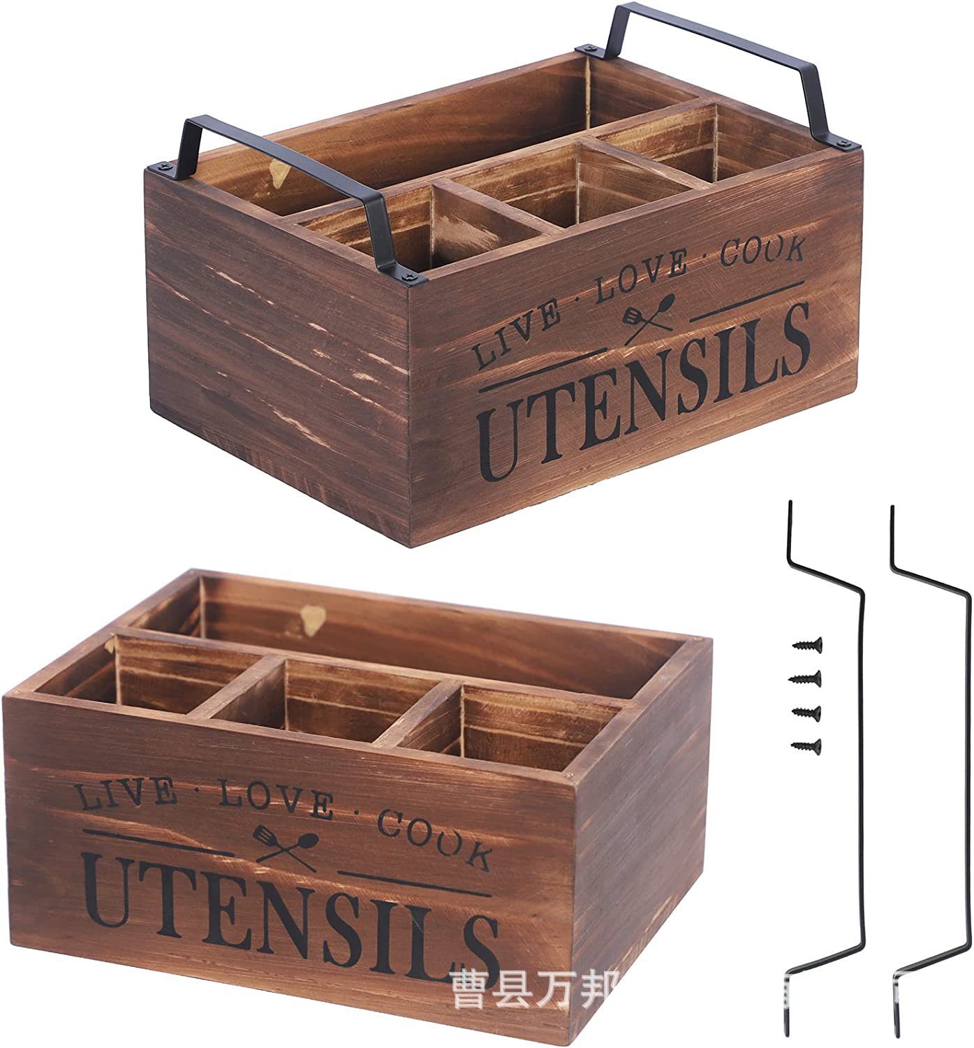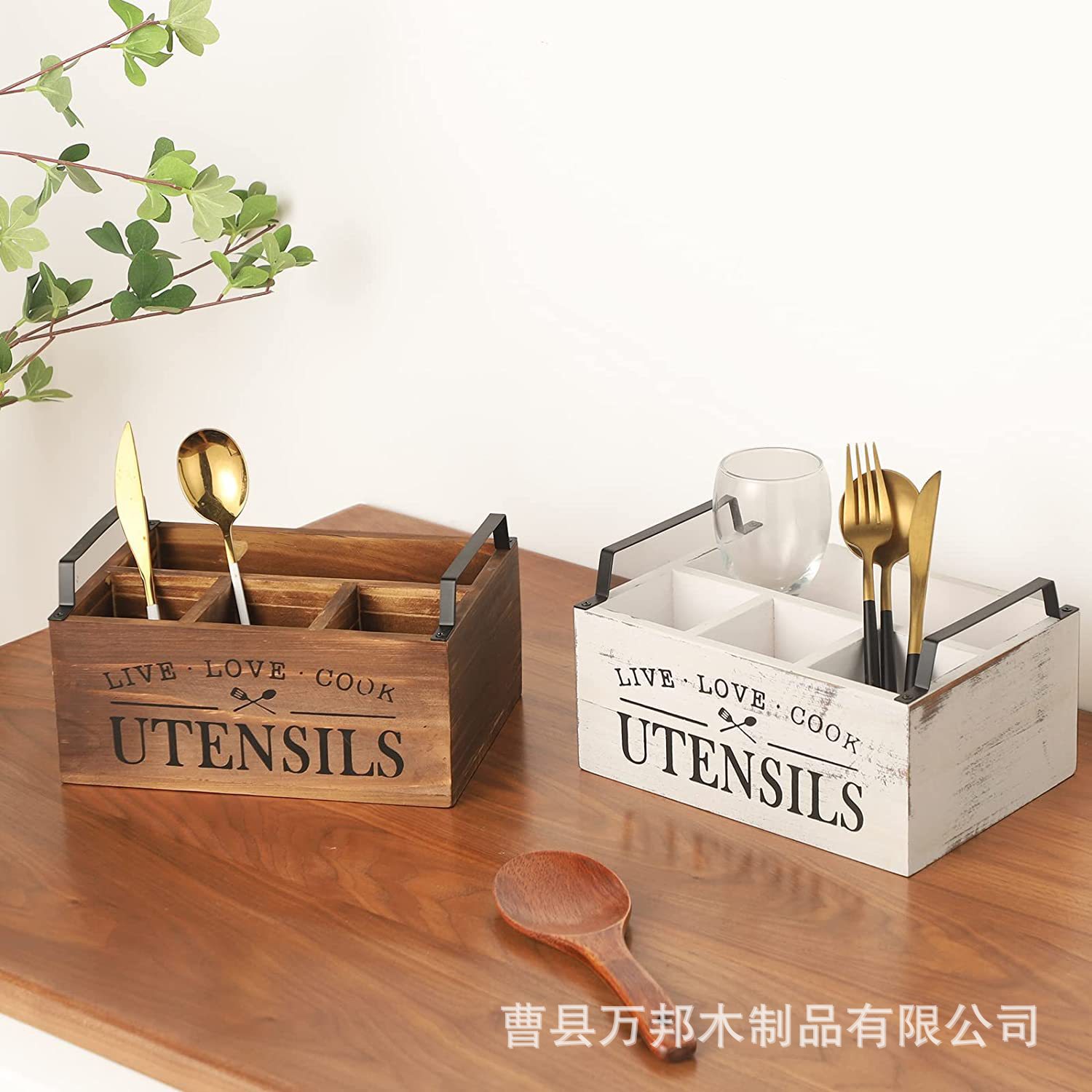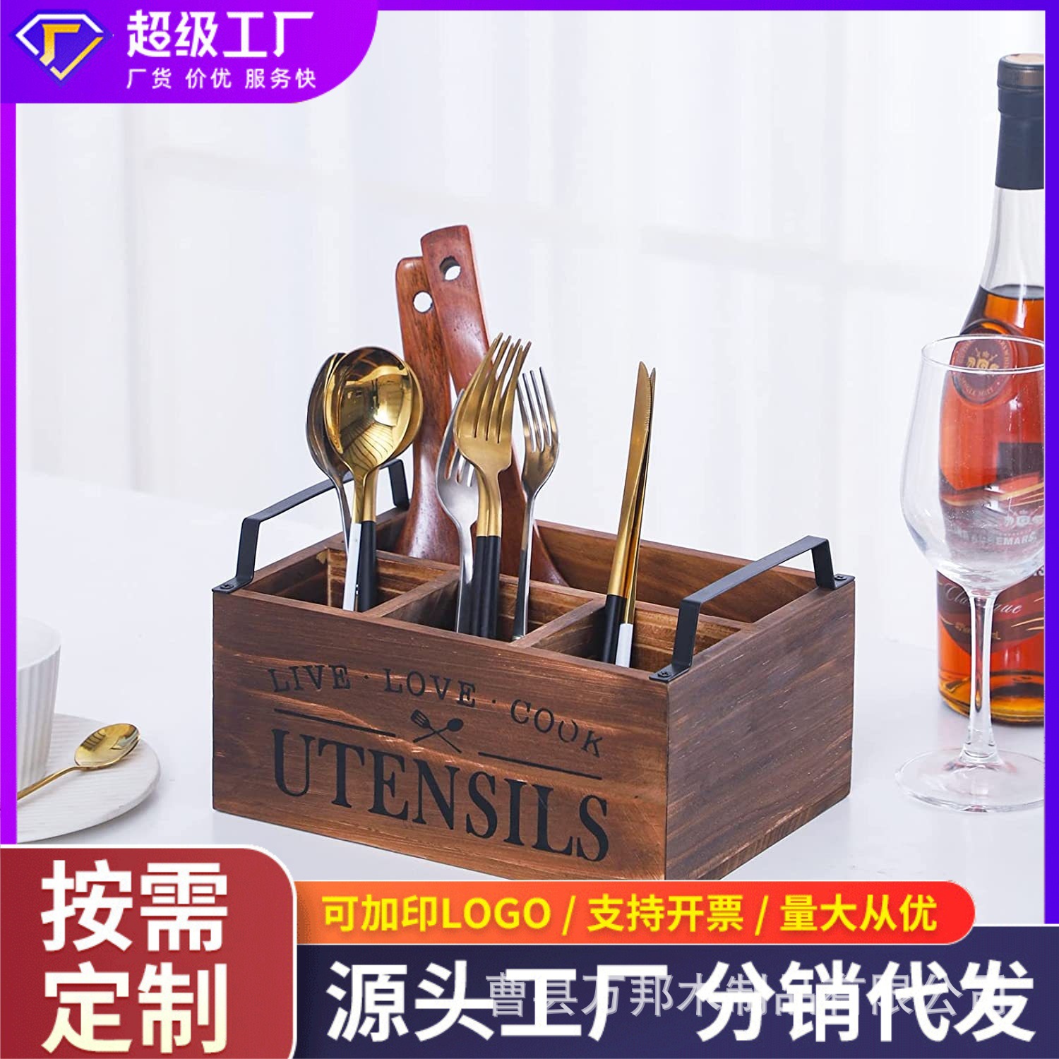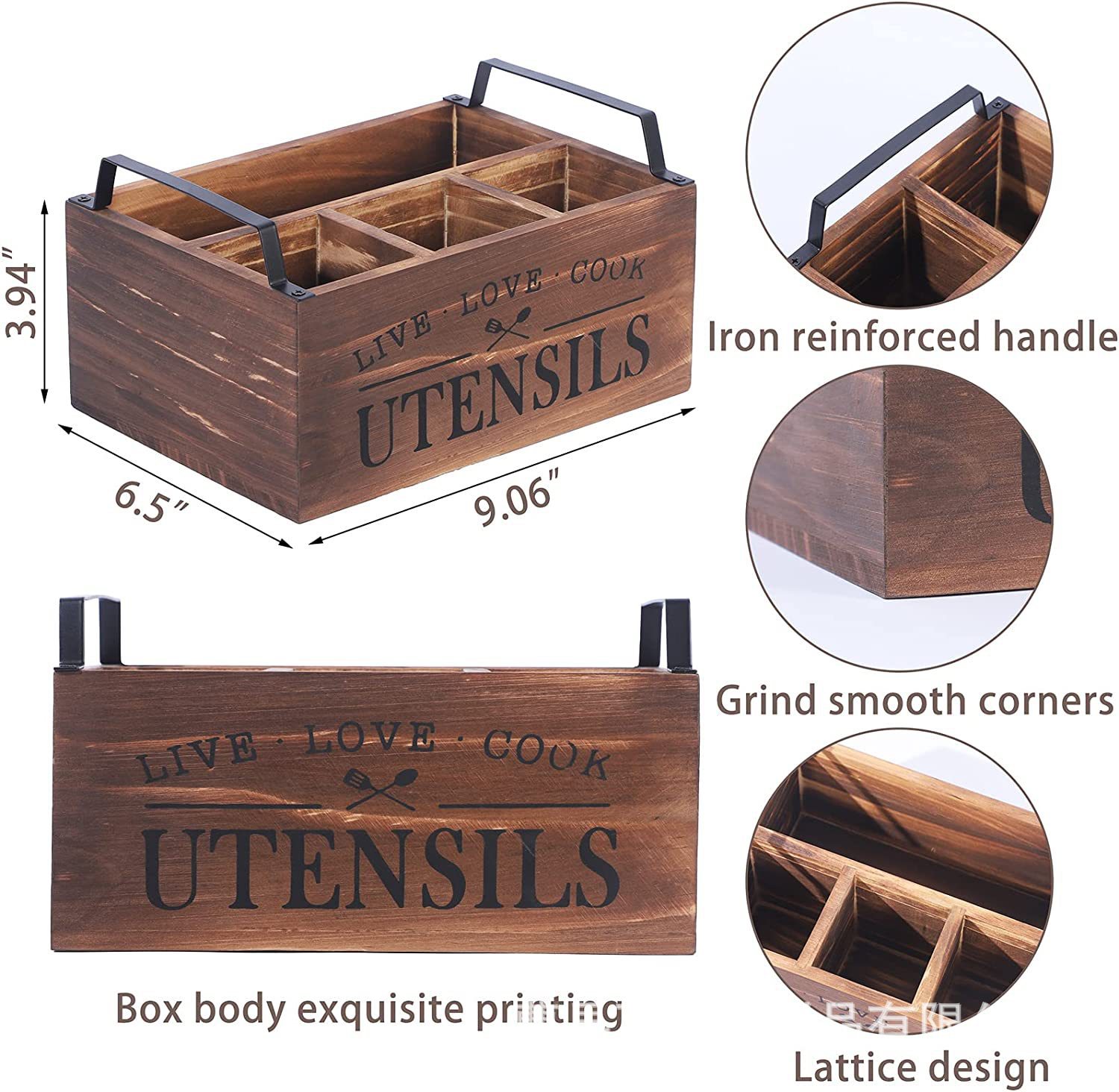 국경 간 주방 나무 식기 보관 상자 칼, 포크 및 냅킨 홀더 홈 데스크탑 구획형 보관 나무 상자 사용자 정의스토어 가기