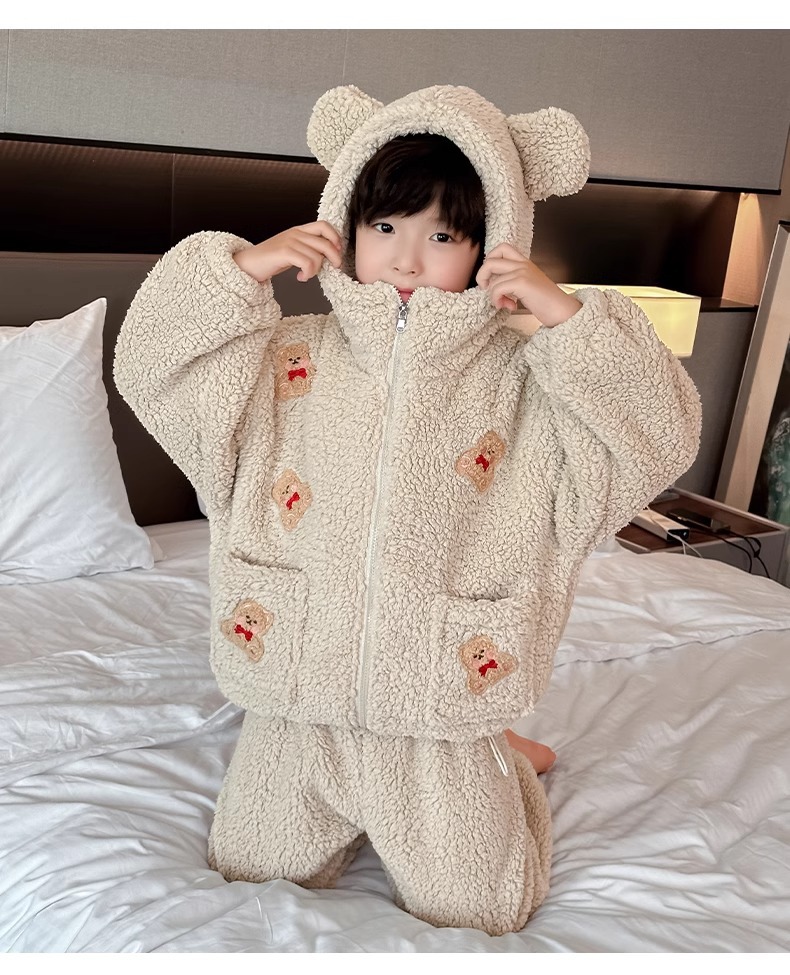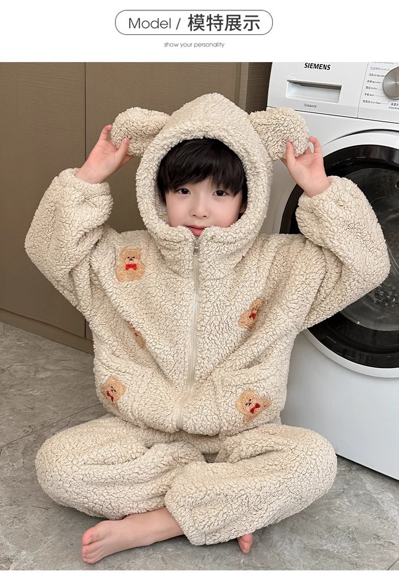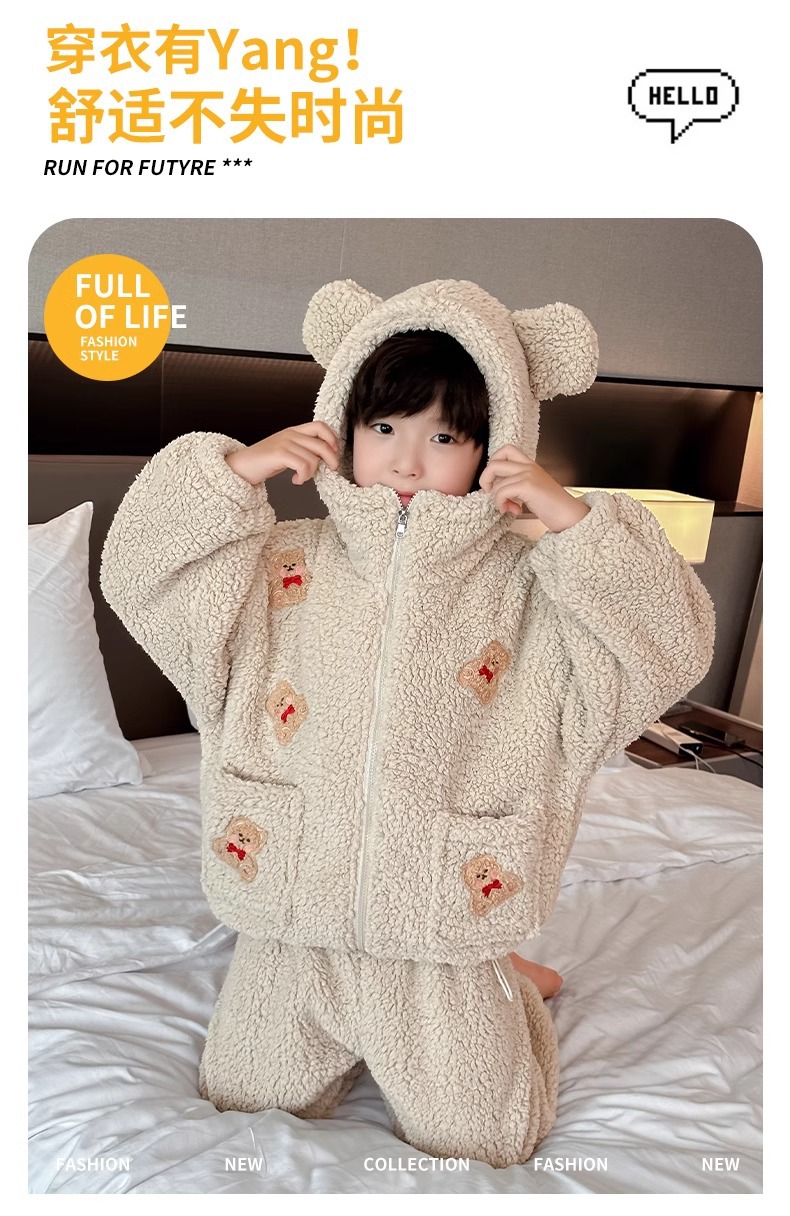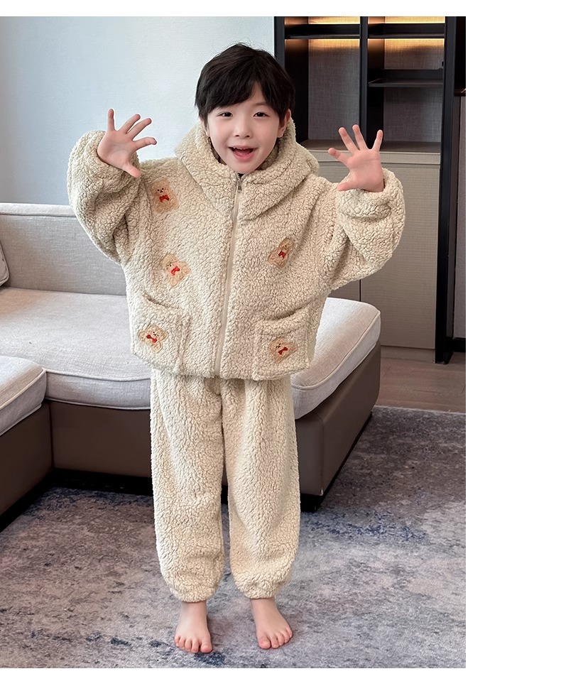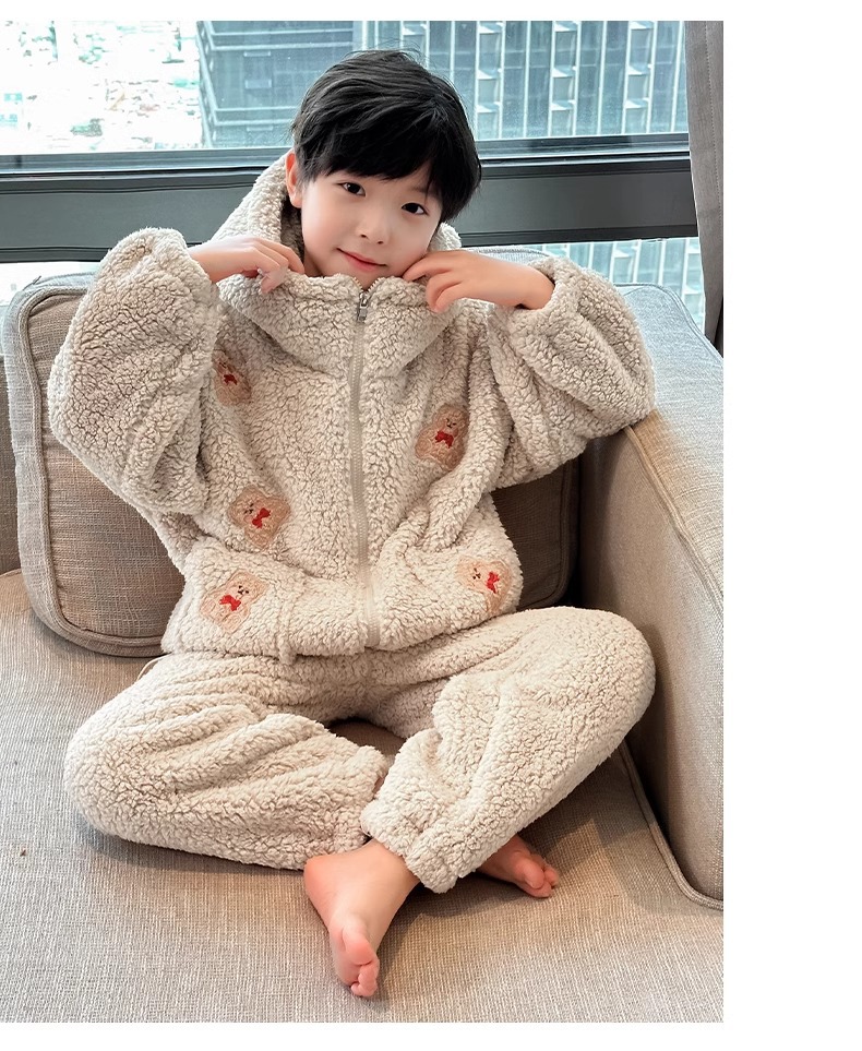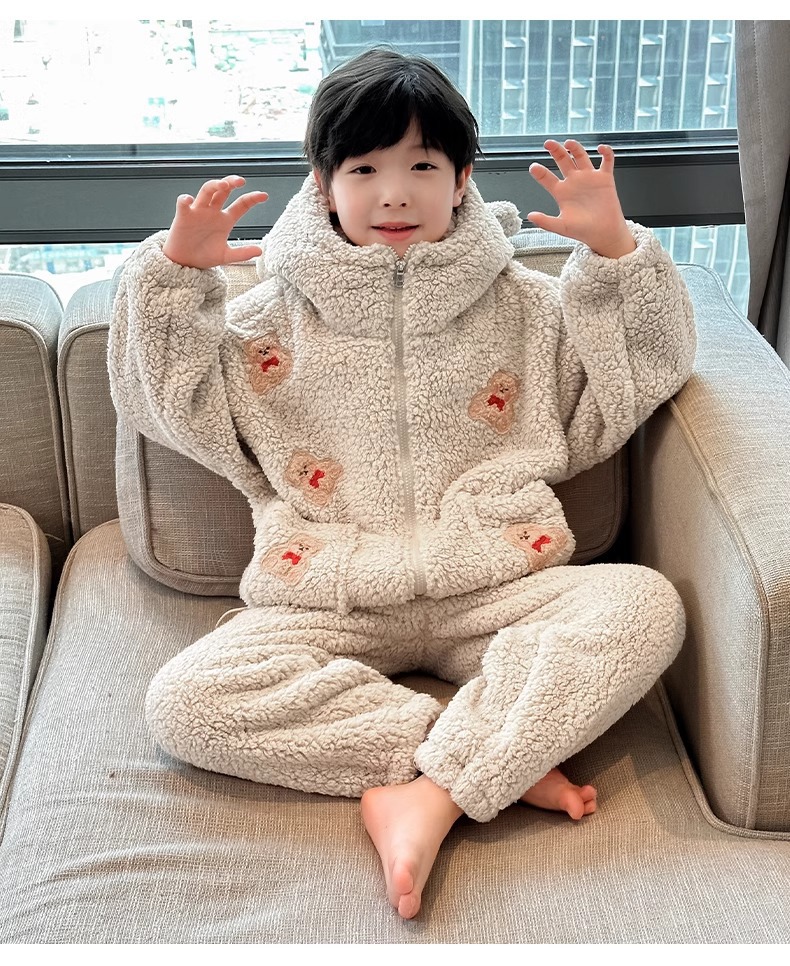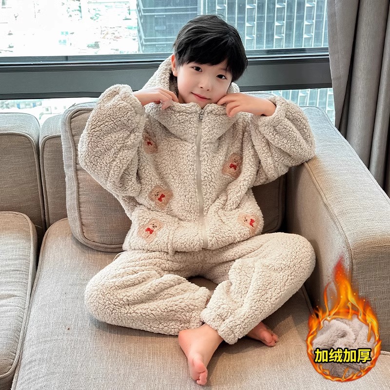 어린이 의류 소년 잠옷 홈 의류 산호 양털 세트 가을과 겨울 기모 두꺼운 소년 속옷 큰 어린이를위한 따뜻한스토어 가기