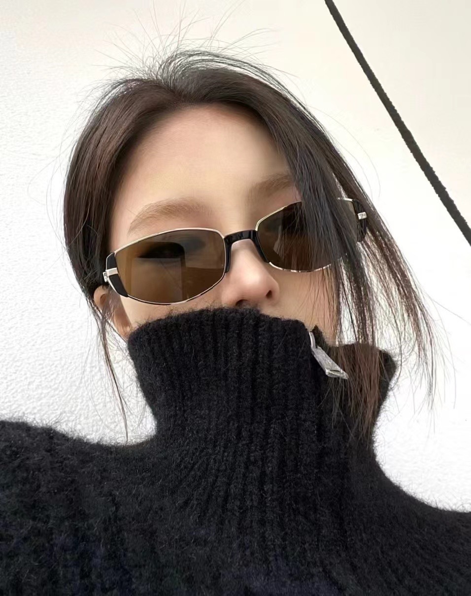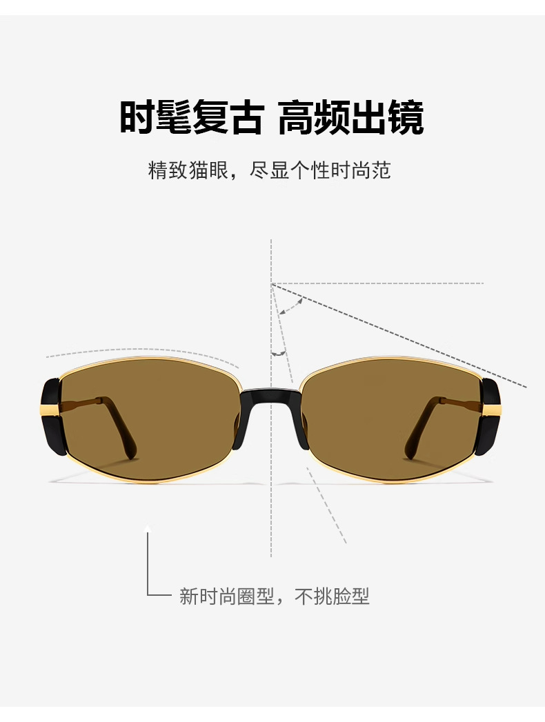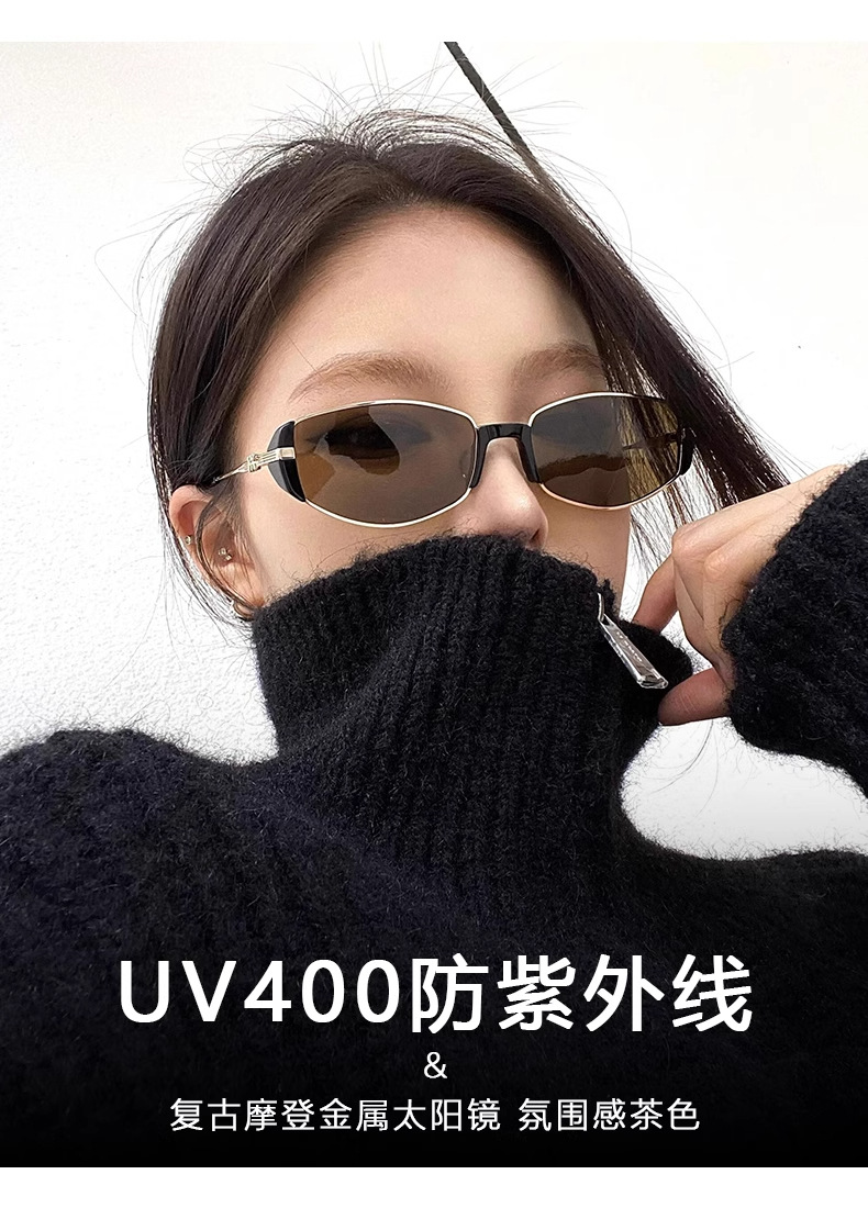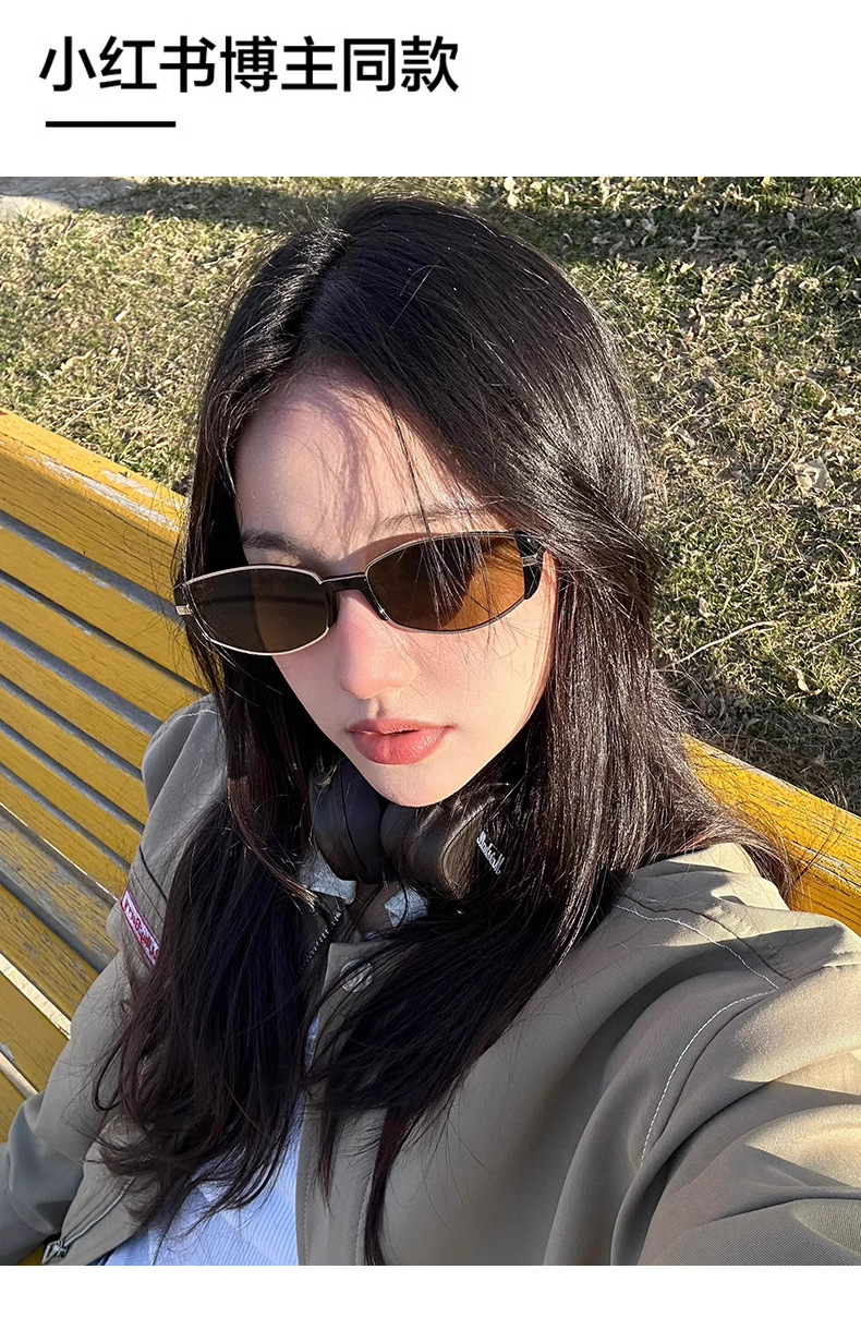 미국 스타일 트렌디 쿨 여성의 여름 패션 센스 선글라스 좁은 얼굴 자외선 방지 현대 거리 그늘 독특한 작은 다크 브라운 거울