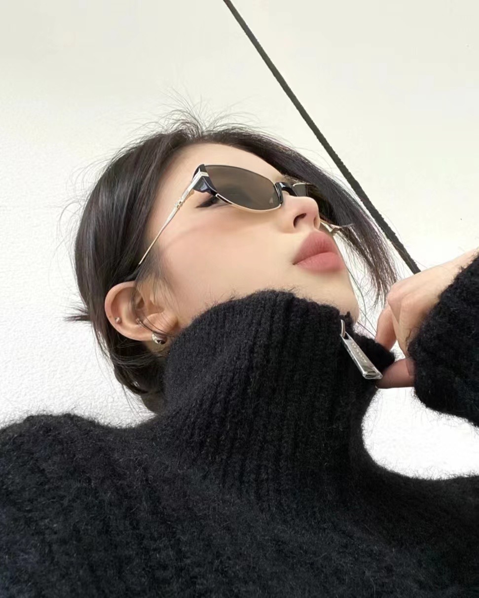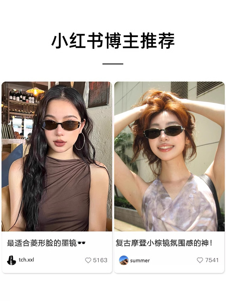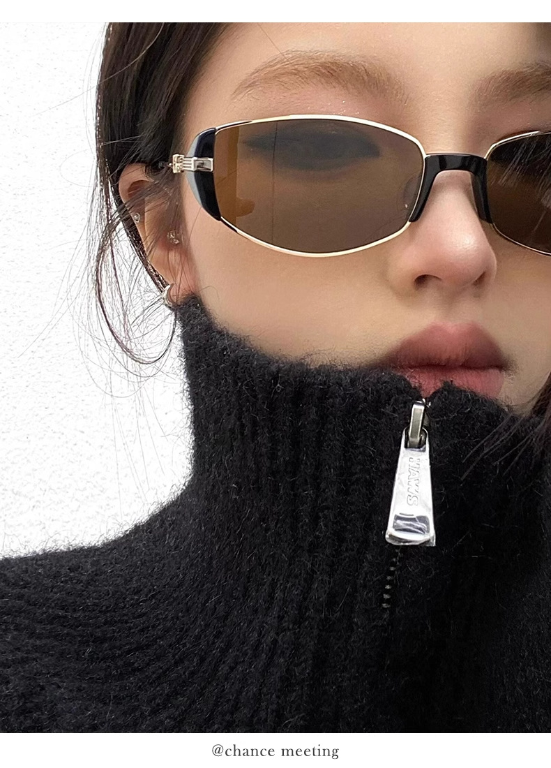 미국 스타일 트렌디 쿨 여성의 여름 패션 센스 선글라스 좁은 얼굴 자외선 방지 현대 거리 그늘 독특한 작은 다크 브라운 거울