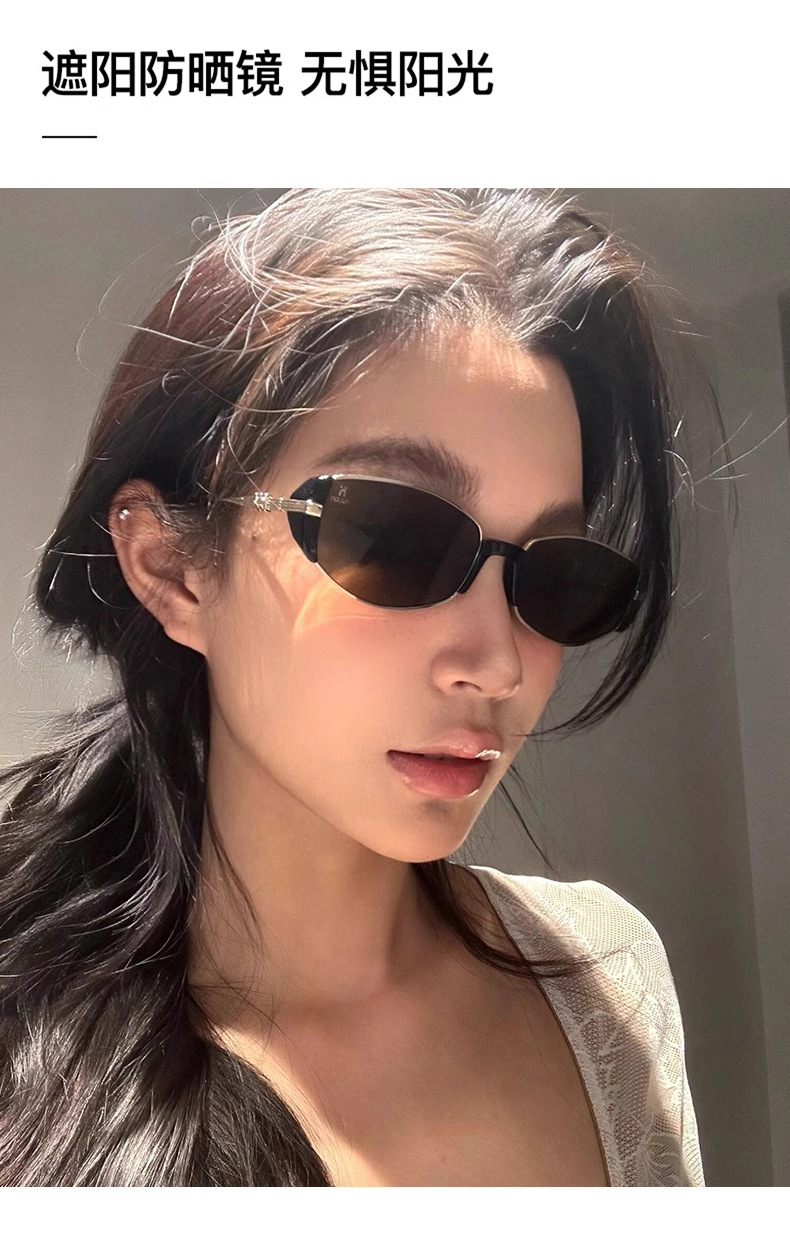 미국 스타일 트렌디 쿨 여성의 여름 패션 센스 선글라스 좁은 얼굴 자외선 방지 현대 거리 그늘 독특한 작은 다크 브라운 거울스토어 가기