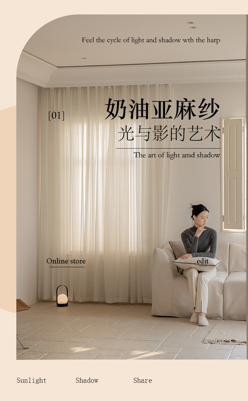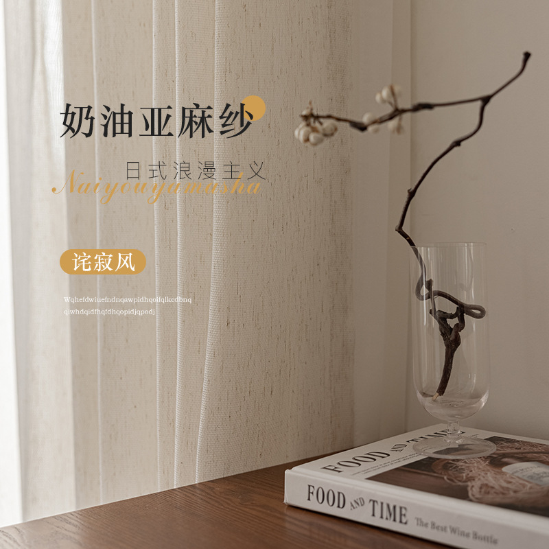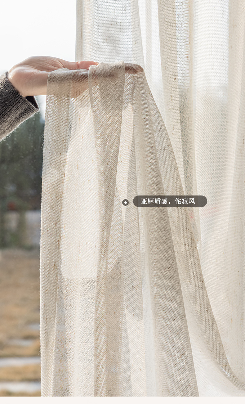 새로운 블랙 에지 린넨 커튼 거즈 커튼 크림 로그 바람 발코니 베이 창 거실 프랑스 투명 반투명 거즈스토어 가기