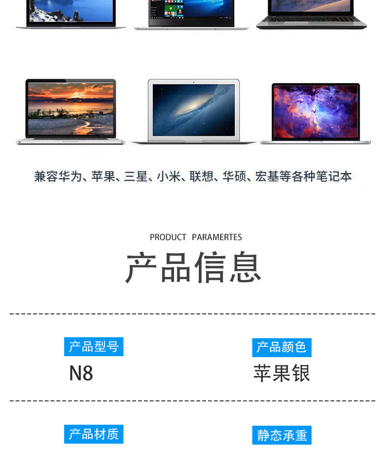 N8 이중층 알루미늄 합금 노트북 스탠드, 높이 조절 다단계, 휴대용 베이스 모니터
