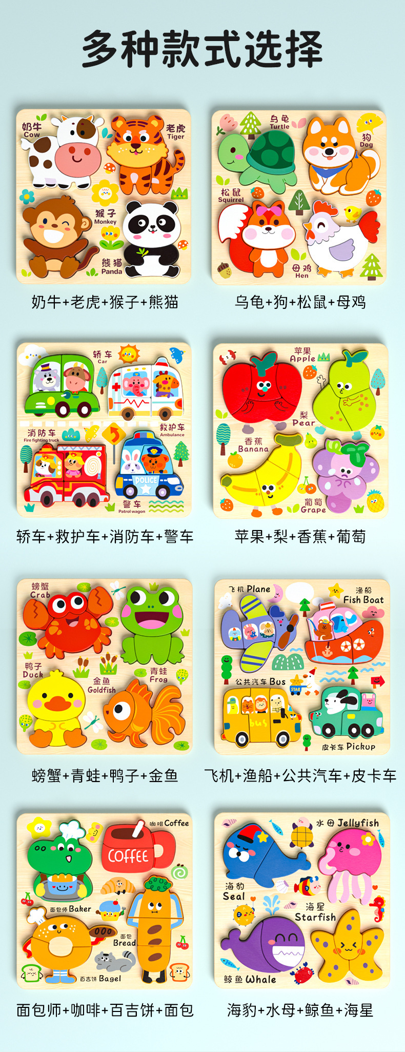 몬테소리 유아 교육 나무 퍼즐 아기 어린이 수제 동물 퍼즐 0-3 년 된 모양 선물 장난감스토어 가기