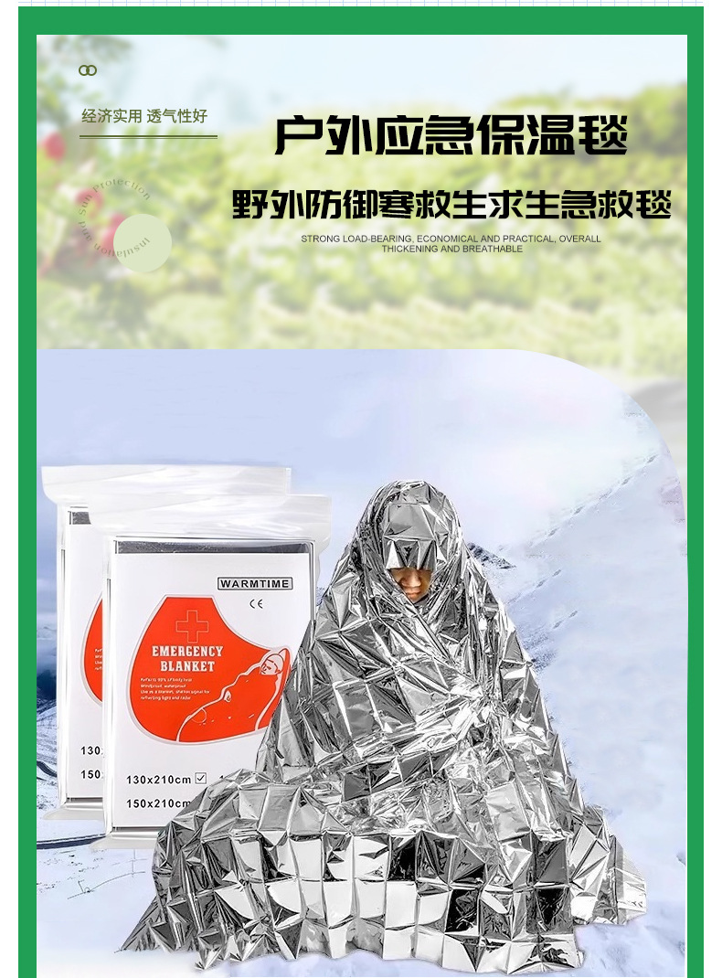 야외 비상 단열 담요 160*210cm 야외 생존 패딩 비상 담요 휴대용 실버 캠핑 방습 매트