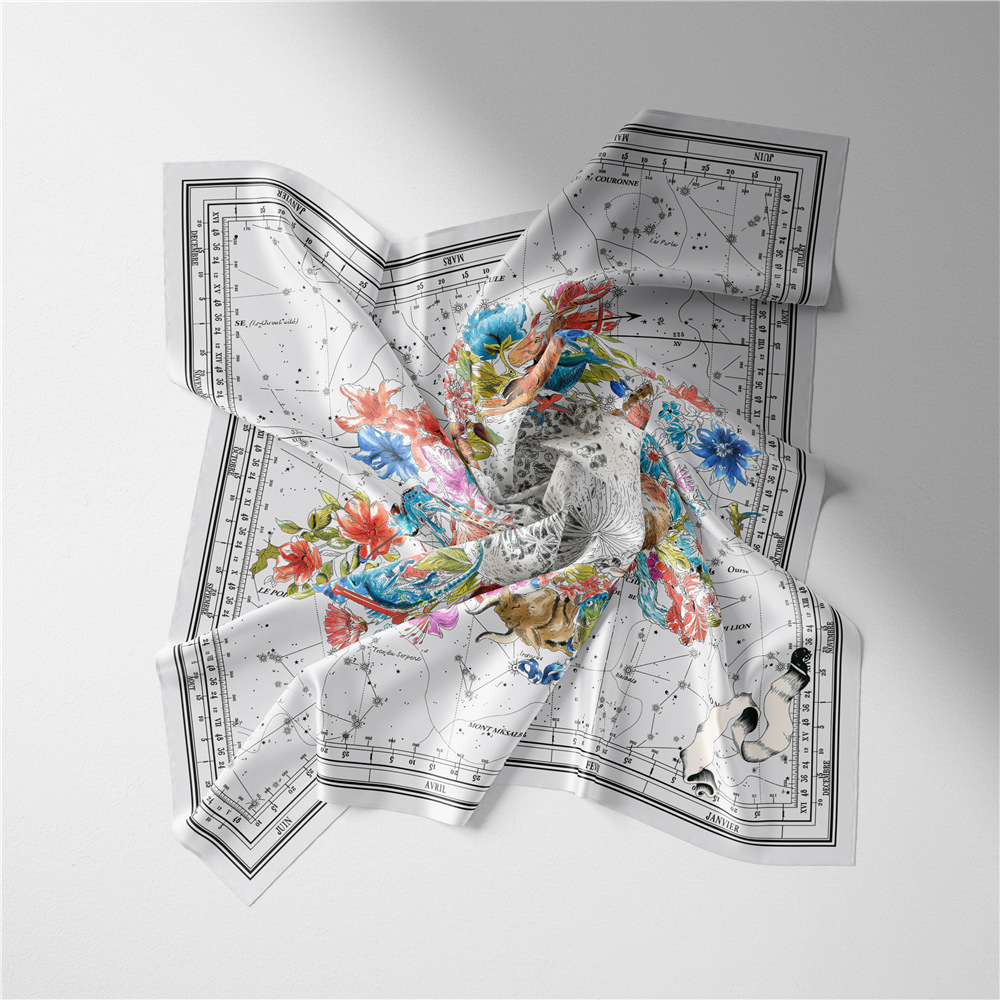한국 버전 53cm 새로운 컬러 손으로 그린 동물 패턴 여성 장식 작은 사각형 스카프 재고 실크 스카프 작은 스카프 도매스토어 가기