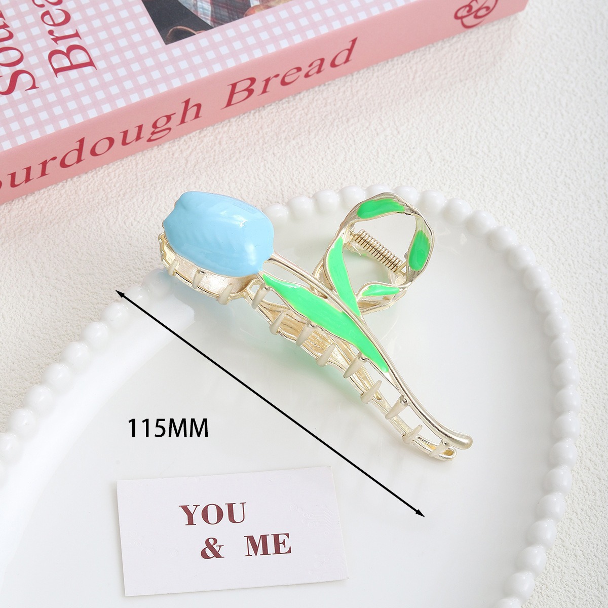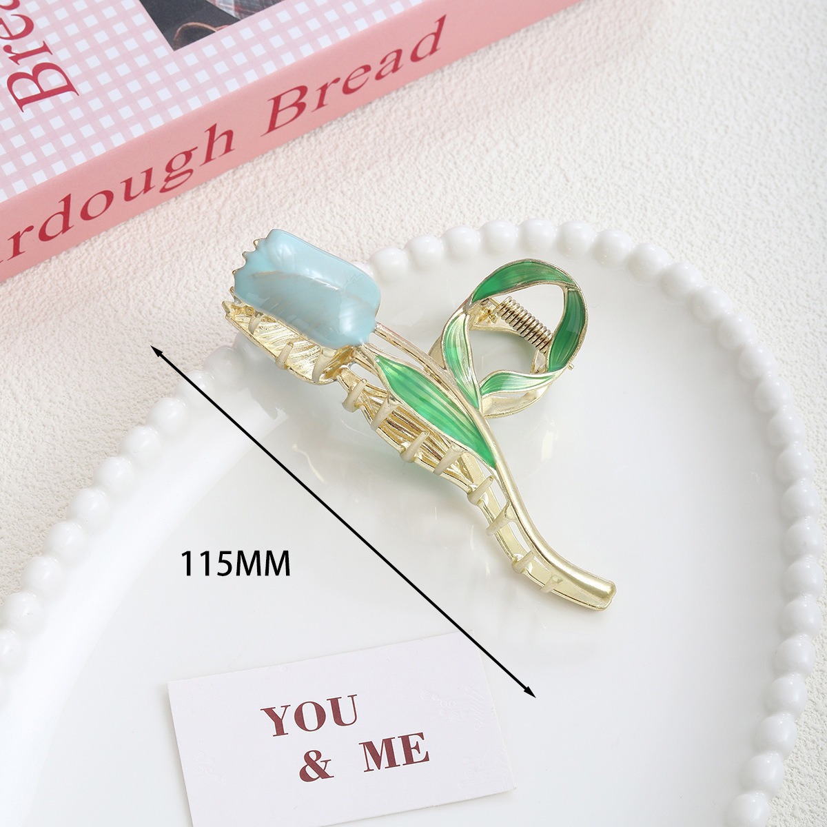 • 스카이블루 합금 로즈 머리핀 [11cm]
