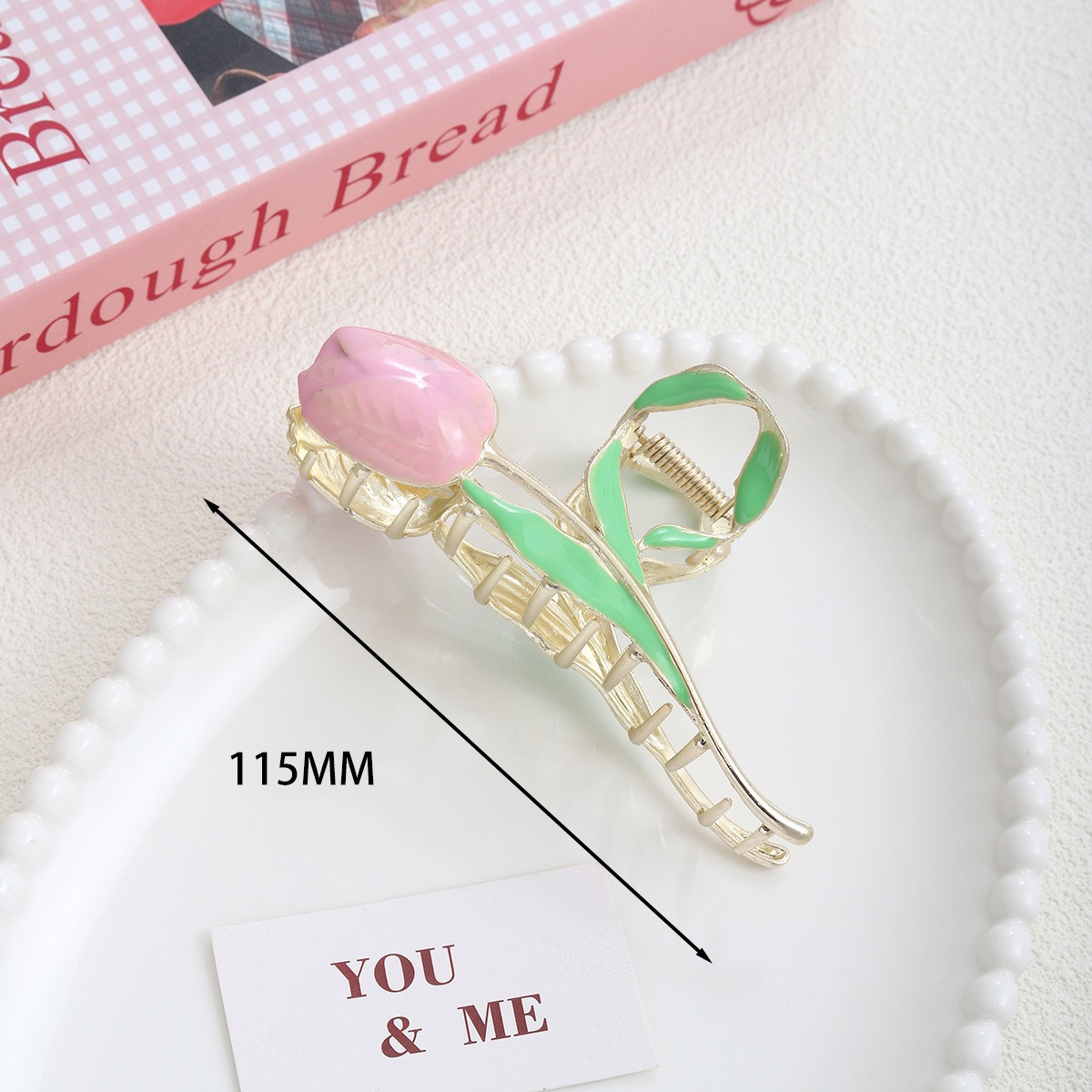 • 라이트핑크 합금 장미 머리핀 [11cm]