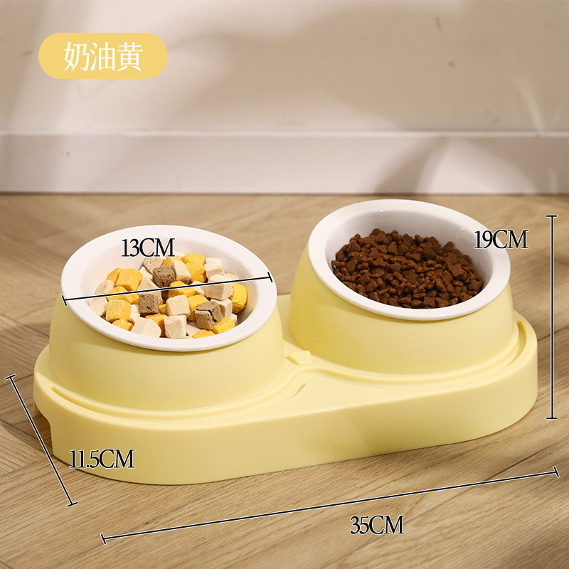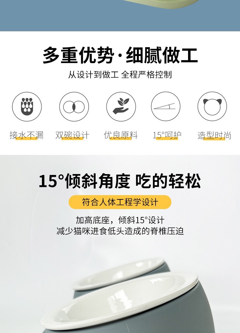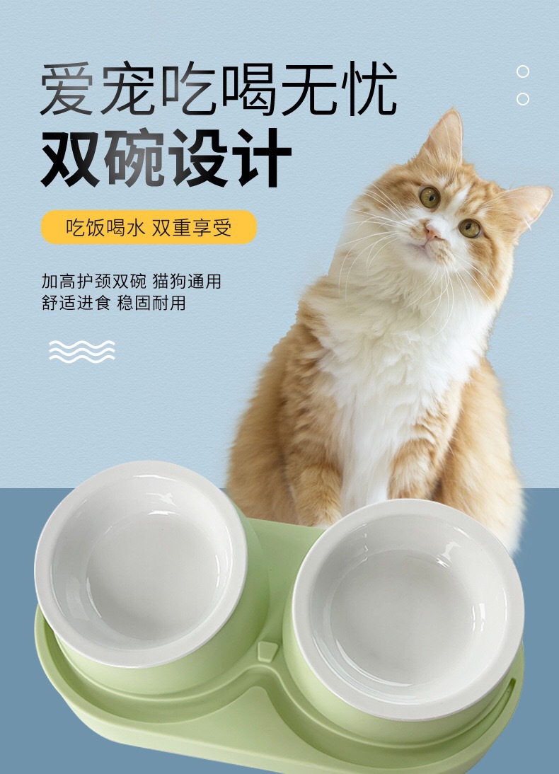 국경을 넘는 세라믹 고양이 밥그릇, 고양이 그릇, 애완동물 그릇, 기울어진 입구로 넘어짐 방지, 물 마시기 및 먹이주기 겸용 이중 그릇스토어 가기
