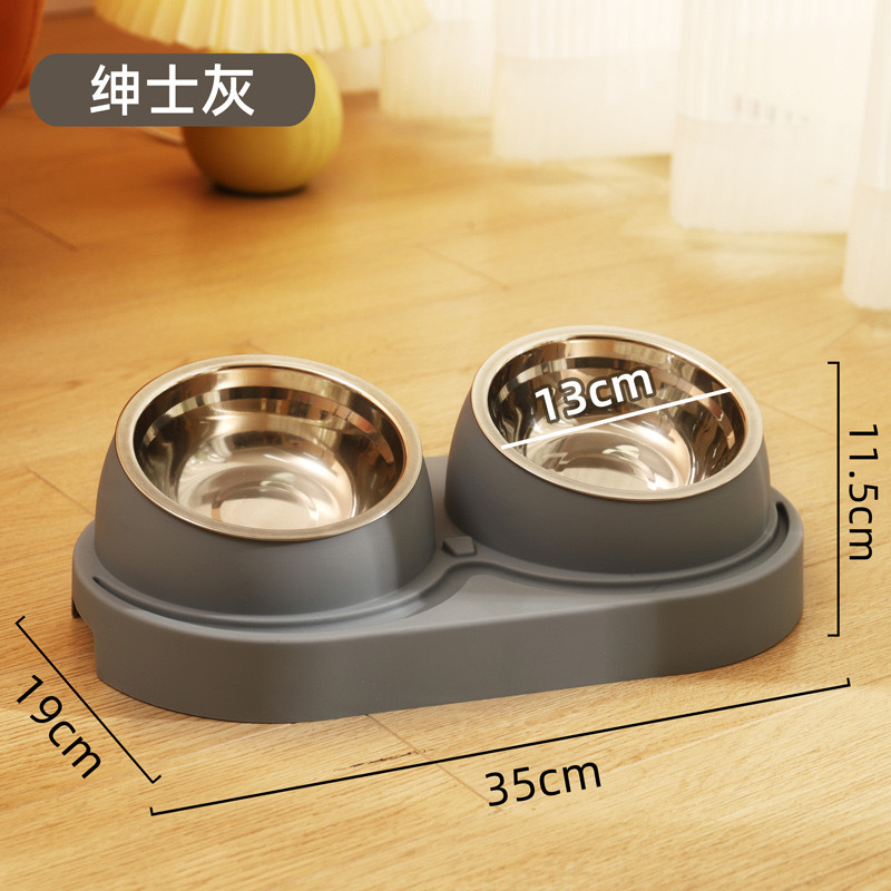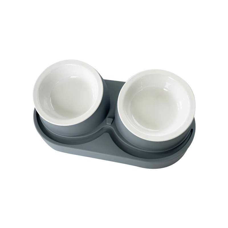국경을 넘는 세라믹 고양이 밥그릇, 고양이 그릇, 애완동물 그릇, 기울어진 입구로 넘어짐 방지, 물 마시기 및 먹이주기 겸용 이중 그릇